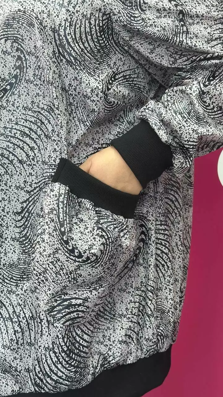 Бомбер із плащової тканини без підкладки, кишені накладні. Пояс. манжети та комір з трикотажної гумки. Силует вільний, рукав реглан. Дуже легкий. м'який, не пропускає воду та вітер. Застібка на змійці.