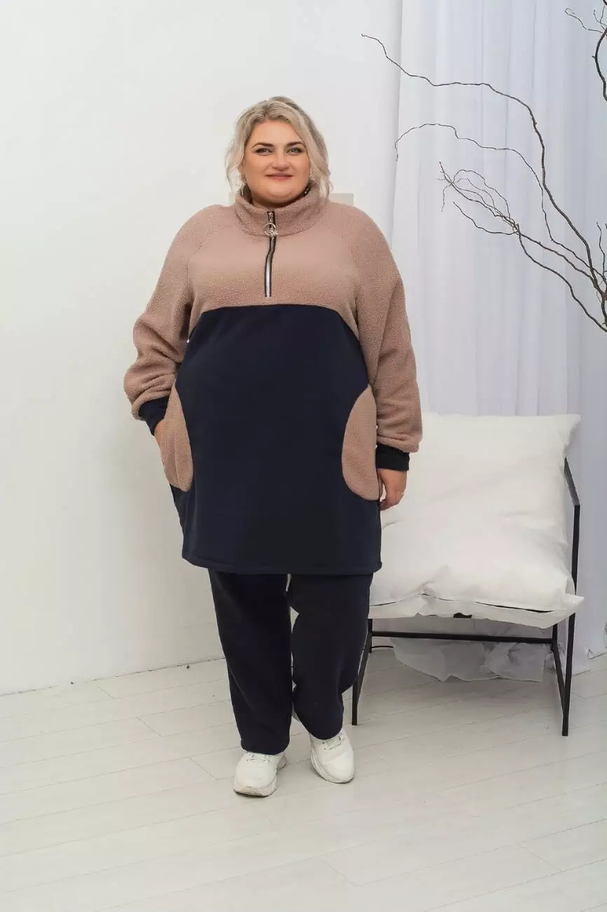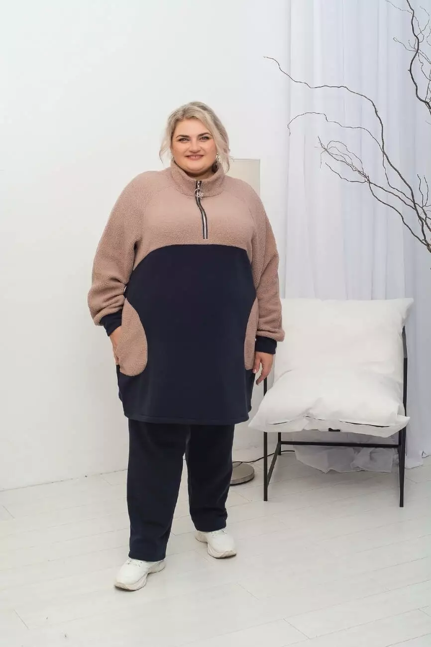 Дуже тепла подовжена туніка "Плюшка Худі" 62-64 66-68