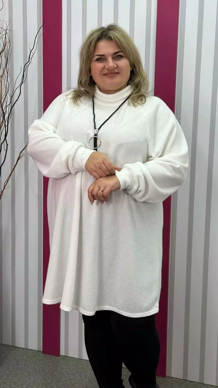Подовжена клешена туніка з ангори рубчик, рукав реглан. Підвіска 50