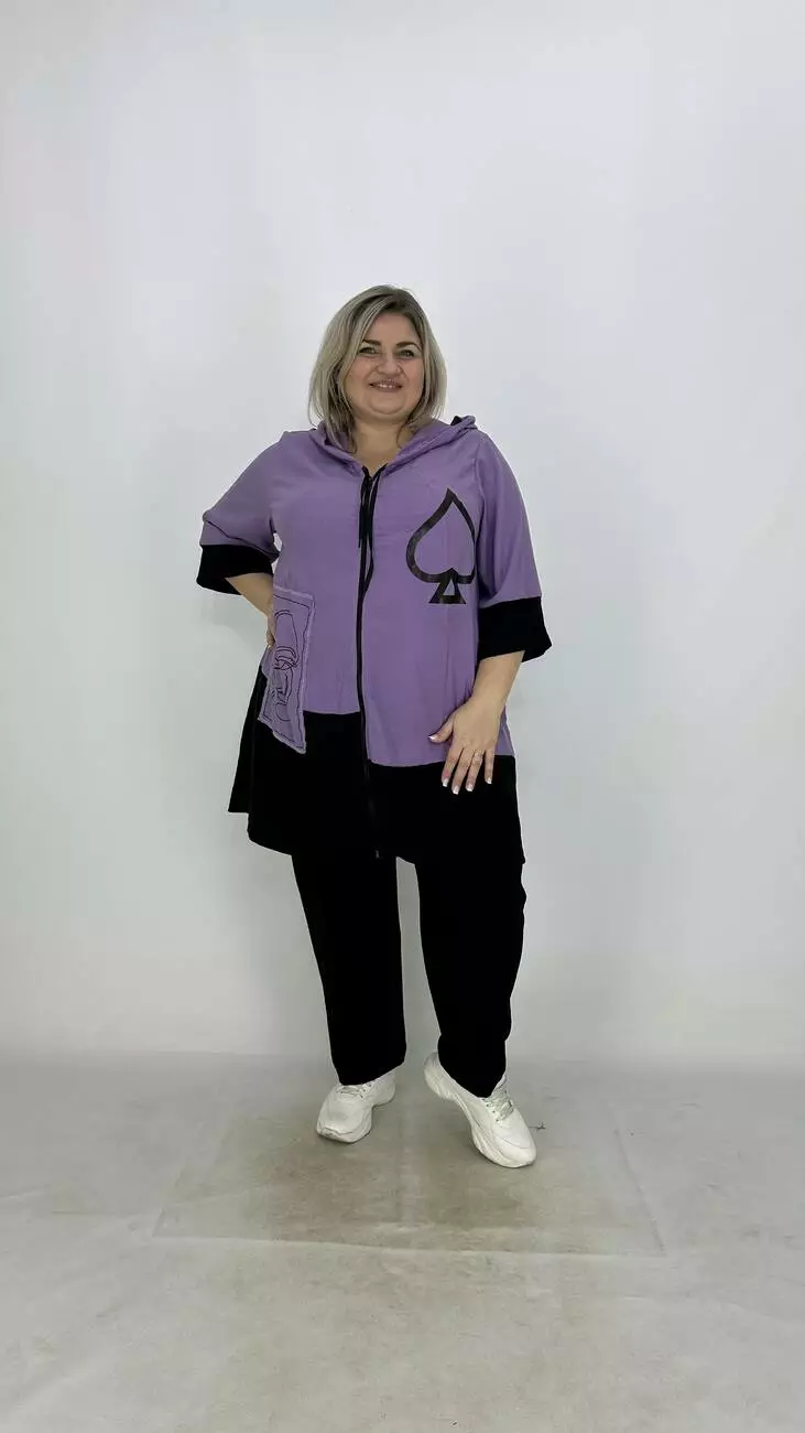 70-72 об'єм грудей 138-144; обсяг талії 140–150; об'єм стегон 150-160; довжина виробу 87; довжина рукава 44; ширина рукава 50-52