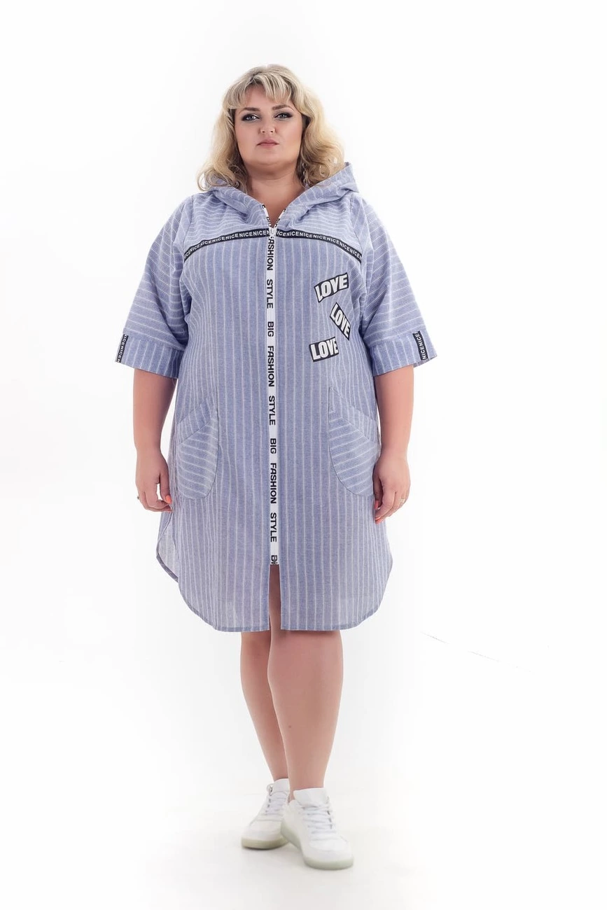 Тканина: льон-100% льон. Стильний кардиган напівприлеглого силуету на блискавці з невагомої тканини, що дихає. Рукав до ліктя. Виріб з капюшоном, має дві функціональні накладні кишені. Прикраси у вигляді нашивок. Розміри : 60-62 ог-124 от-128 об-140 дв-104 шр-66; 64-66 ог-132 от-136 об-148 дв-104 шр-66; 68-70 ог-140 от-144 об-156 дв-104 шр-66