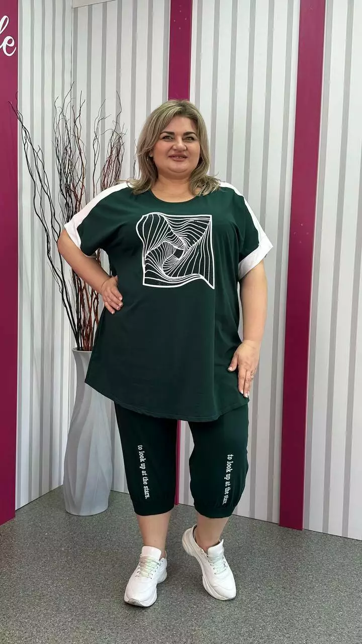 капрієвий костюм з вільною футболкою з турецького трикотажу кулір
