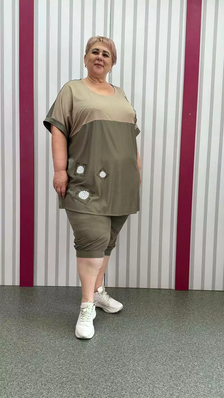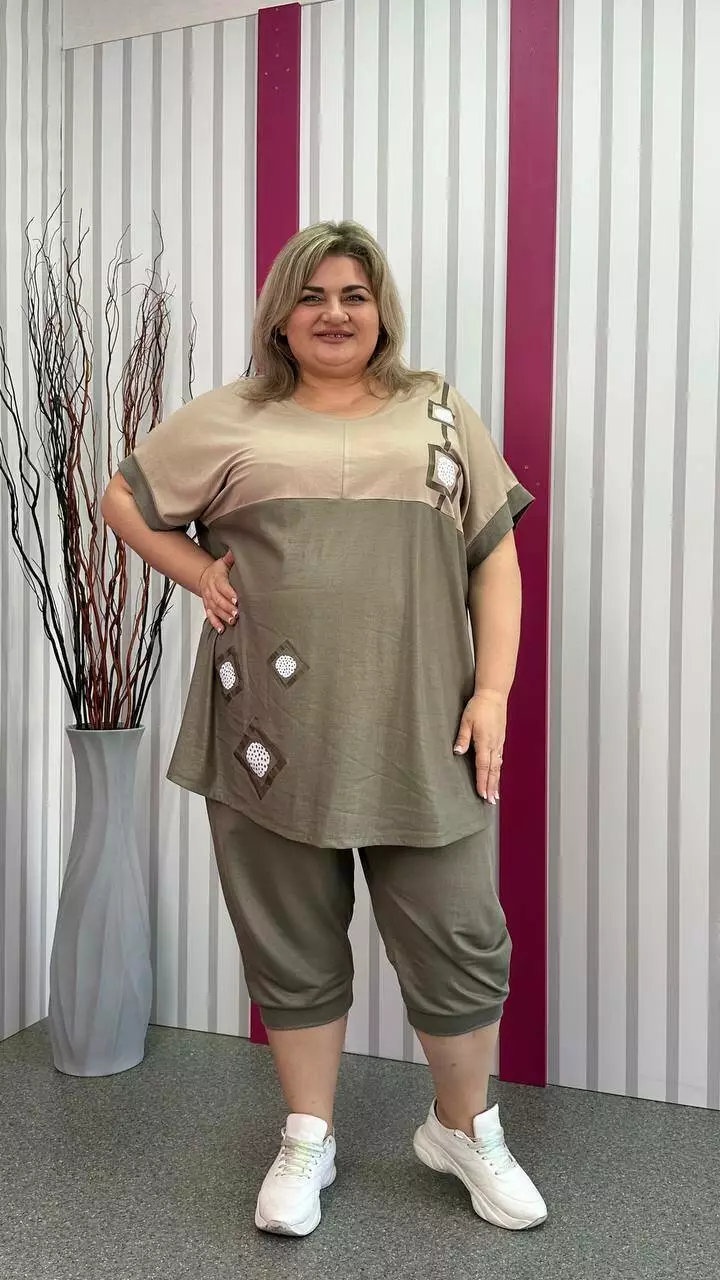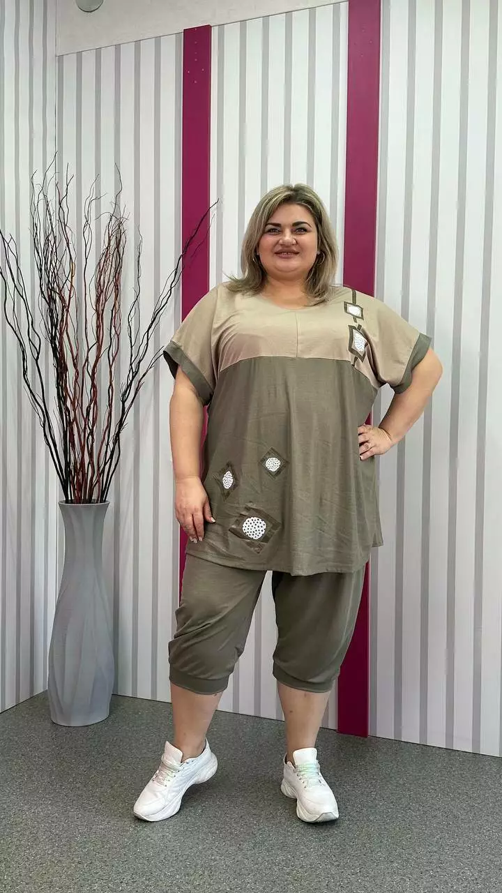 Капрієвий костюм з подовженою футболкою із натурального трикотажу з