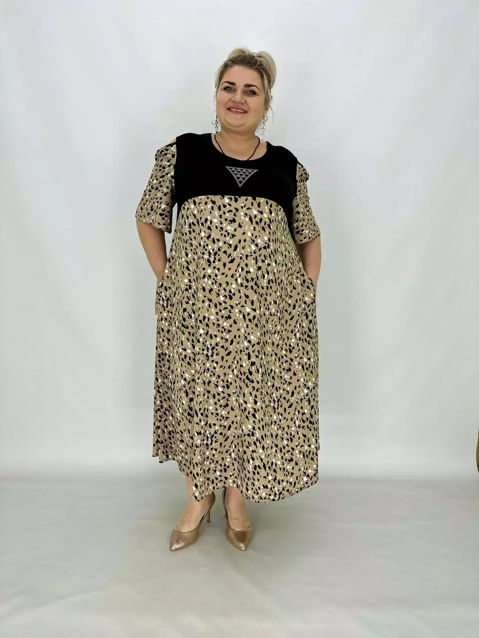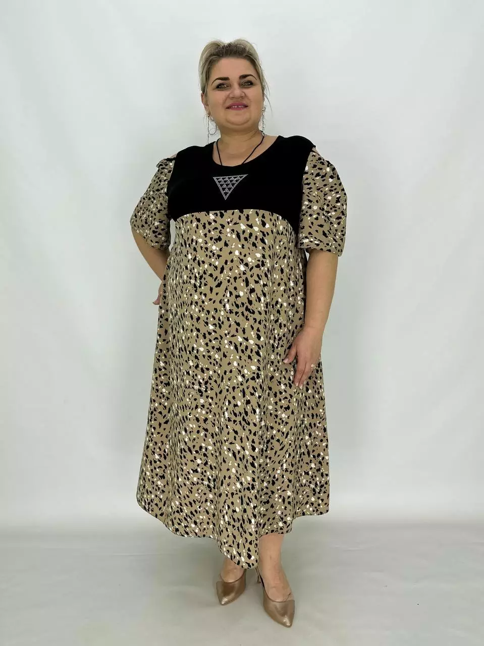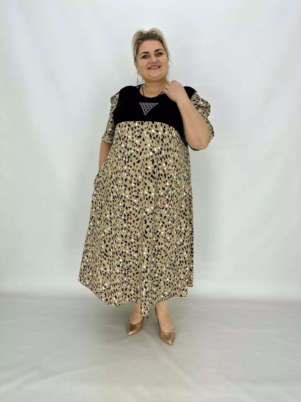 Легка літня сукня з супер софту, розтяжності немає, кишені в бічних швах, кокетки переда та спинки з трикотажу віскоза з гарною розтяжністю, оздоблено накаткою зі страз.