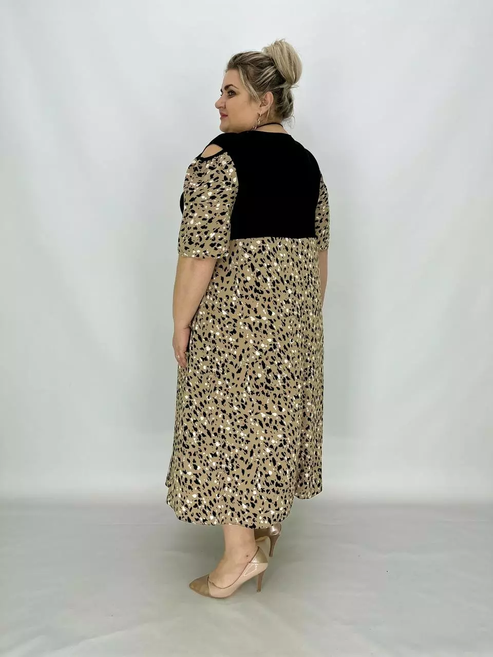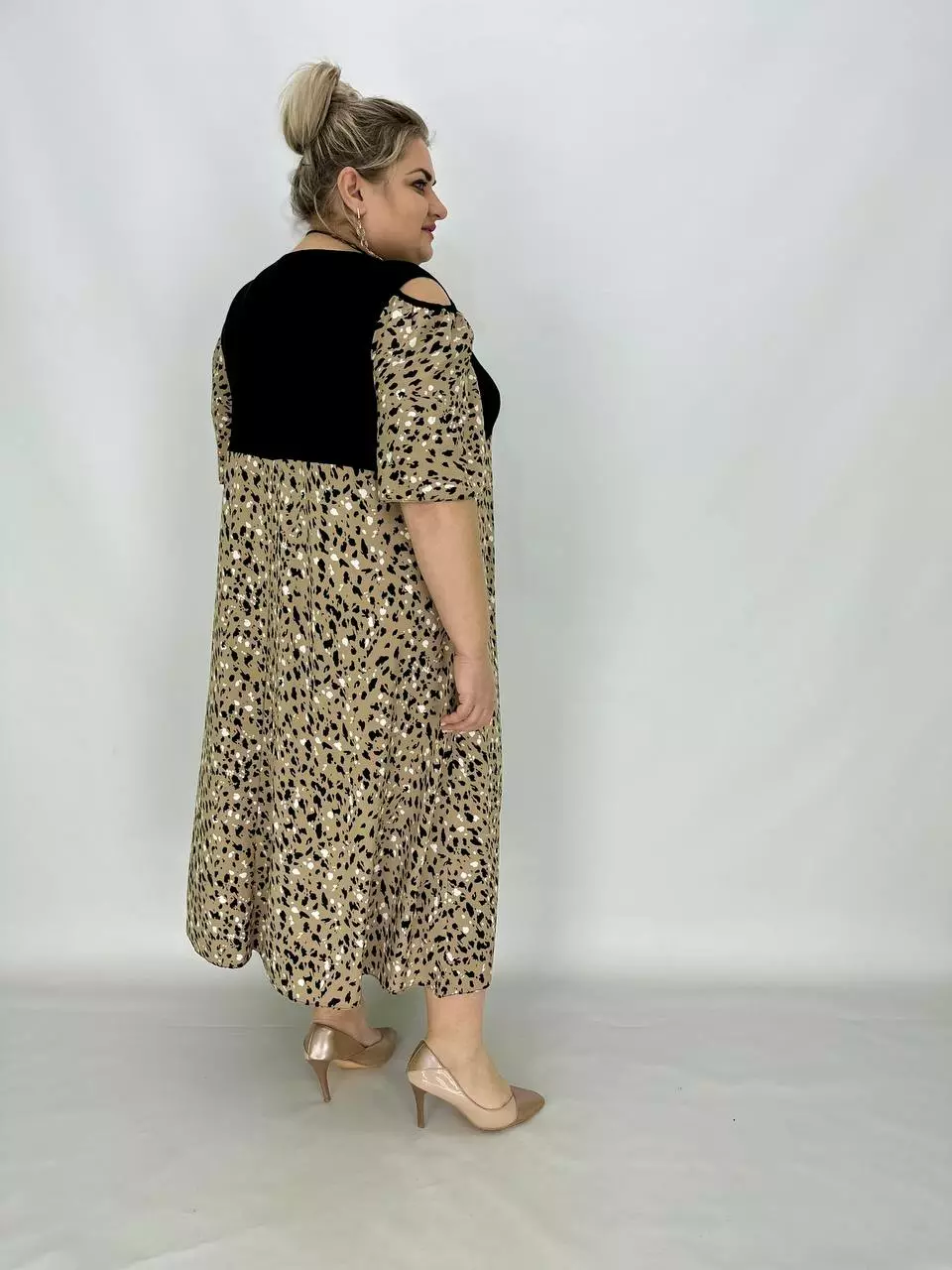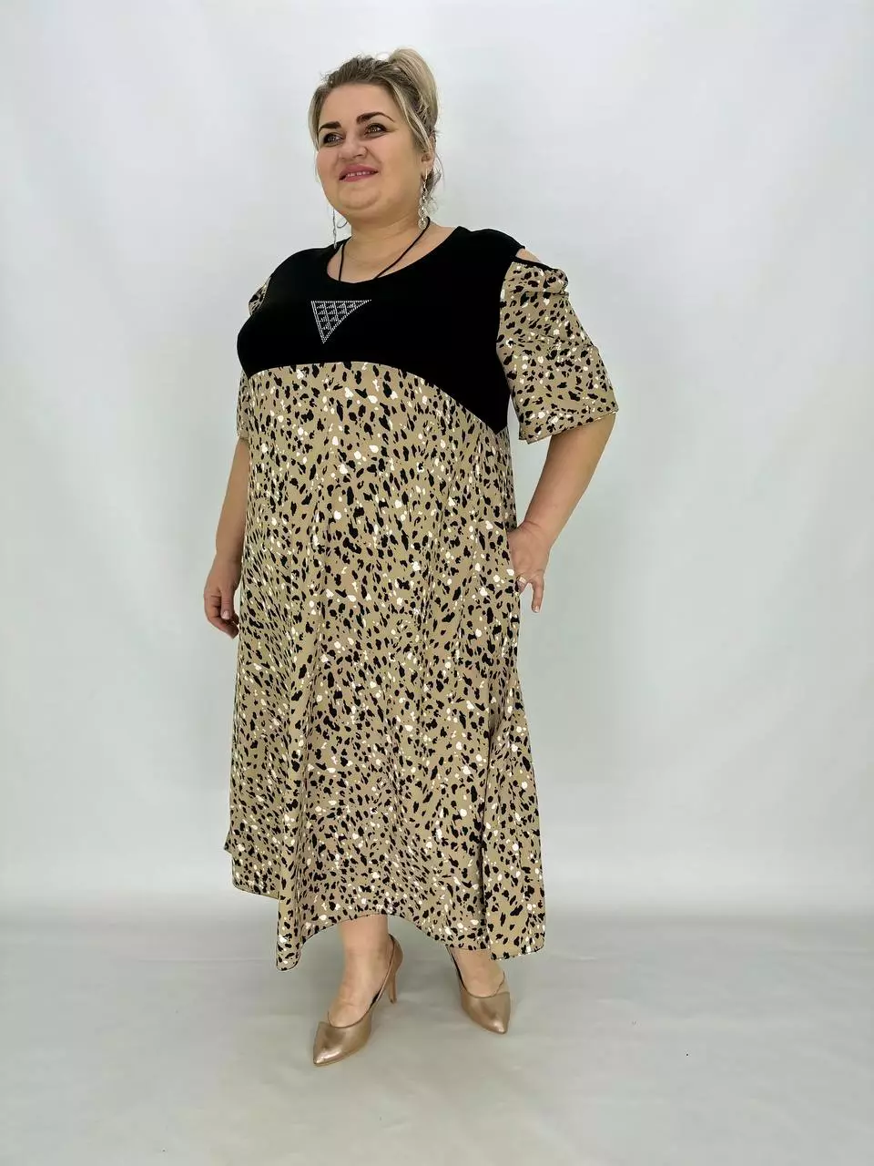 Легка літня сукня з супер софту, розтяжності немає, кишені в бічних швах, кокетки переда та спинки з трикотажу віскоза з гарною розтяжністю, оздоблено накаткою зі страз.