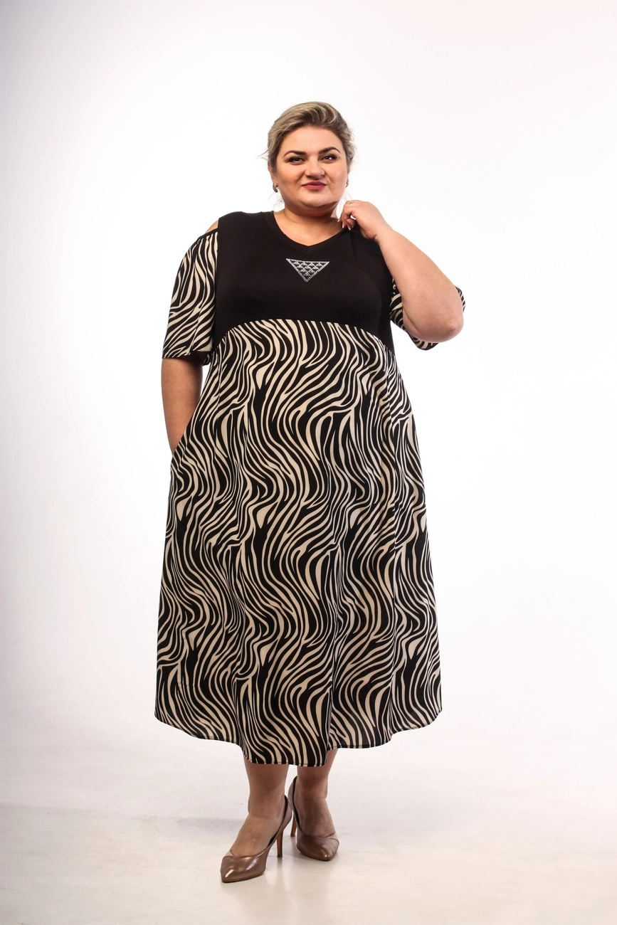 Легка літня сукня "Водевіль" з кишенями в бічних швах прикраса стразами 58-60 62-64 66-68 70-72 74-76