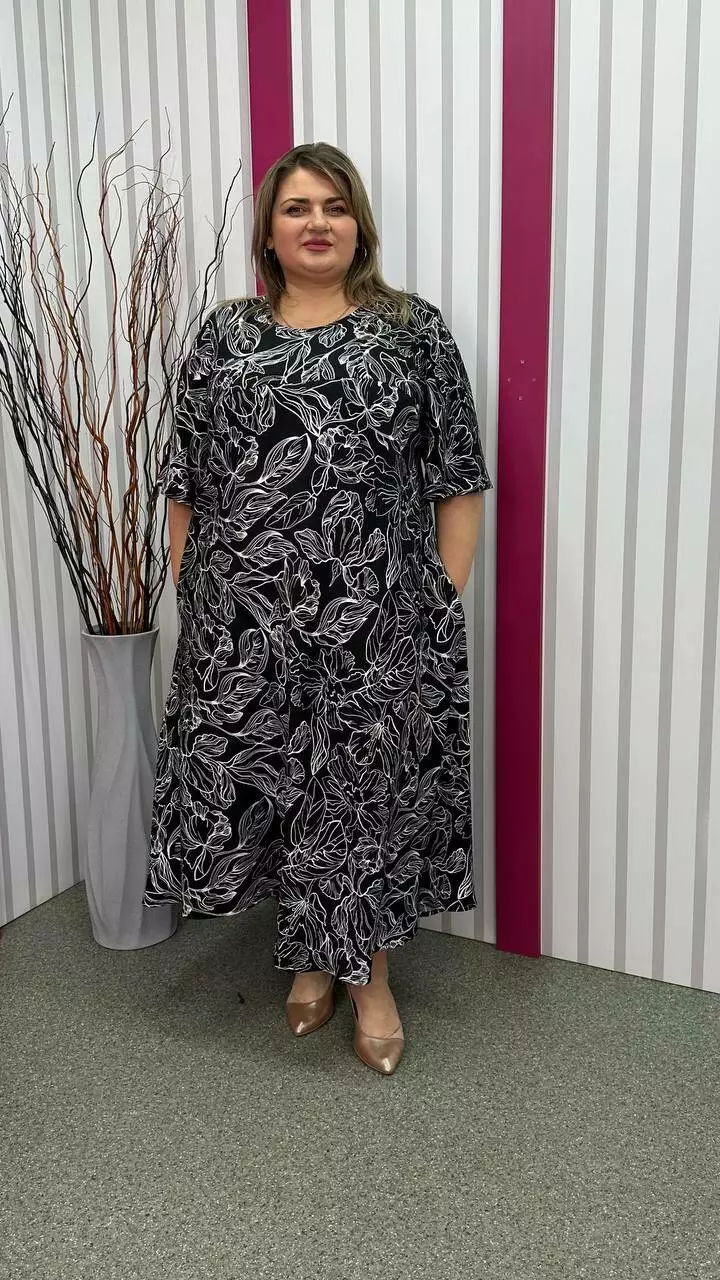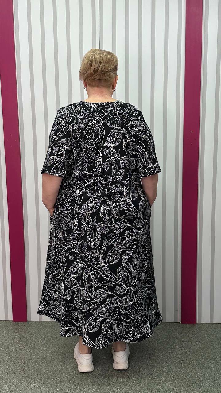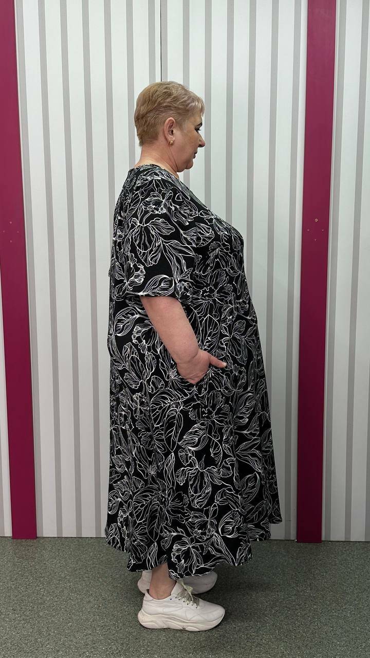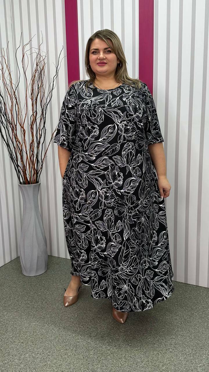 Легка сукня жатий льон "Юліана" чорна з білим великого розміру 58-60 62-64 66-68 70-72 74-76