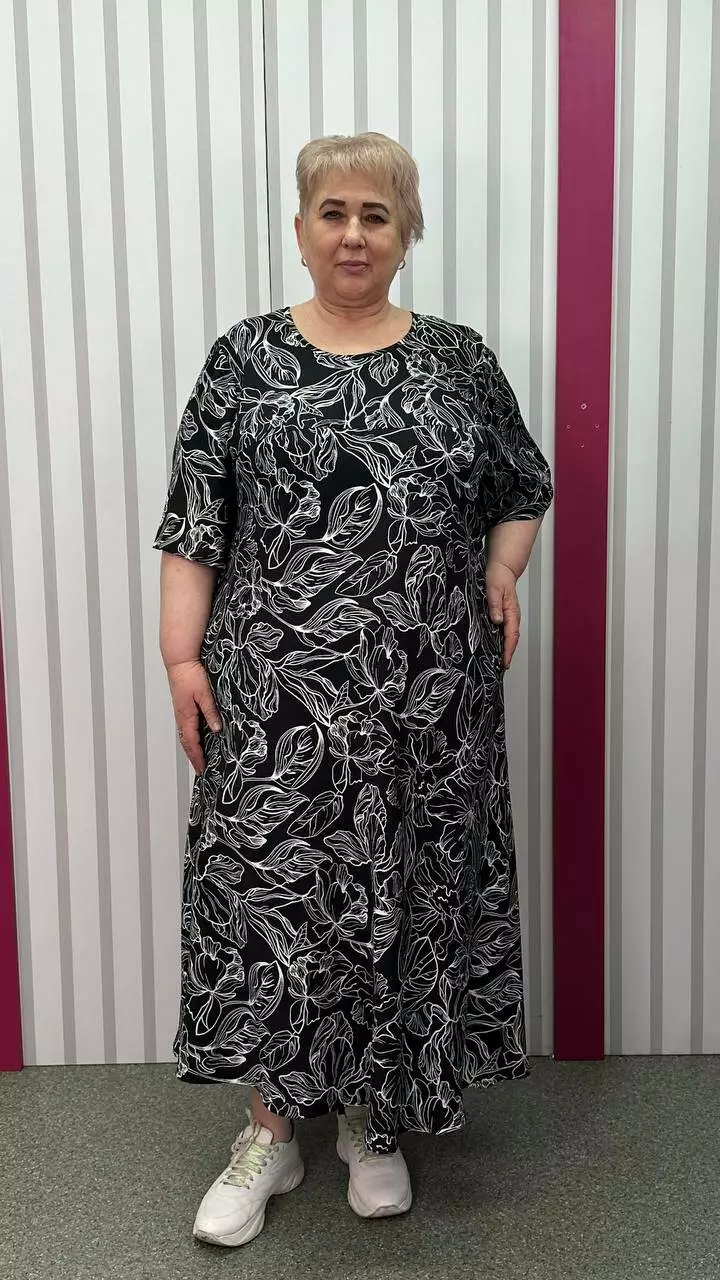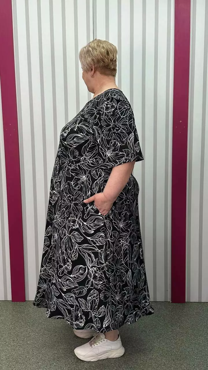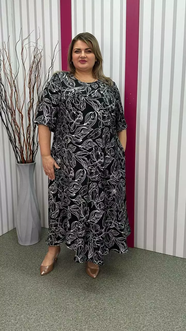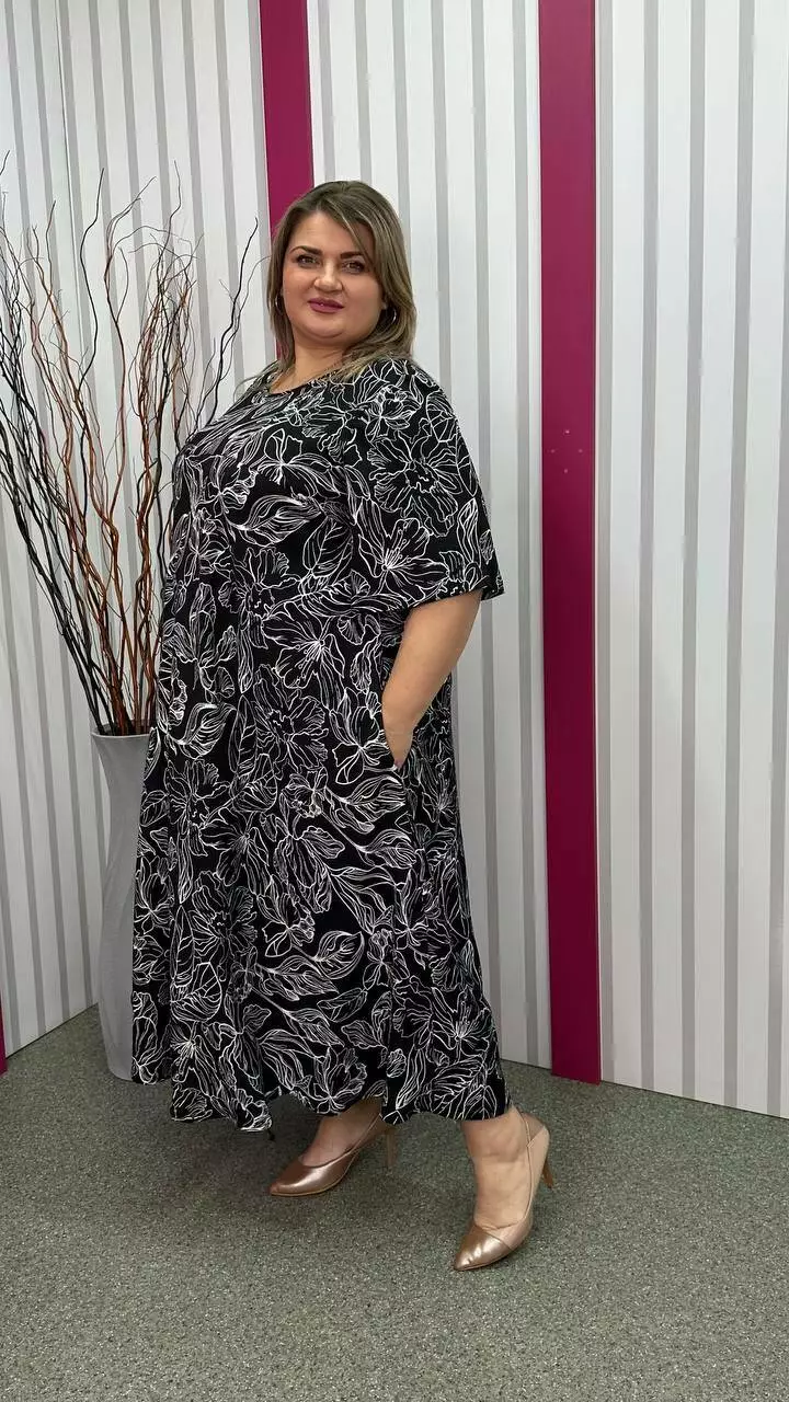Легка сукня жатий льон "Юліана" чорна з білим великого розміру 58-60 62-64 66-68 70-72 74-76