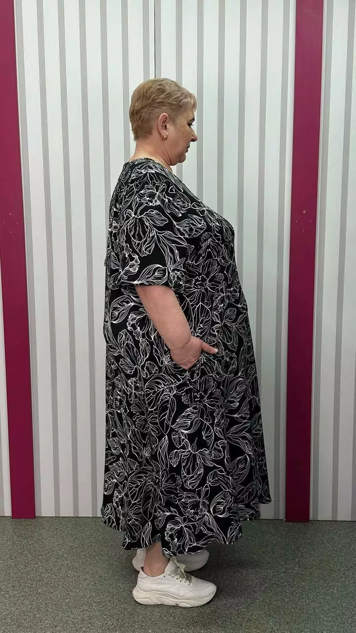 70-72 об'єм грудей 140 об'єм талії до 150 об'єм стегон до 170 довжина виробу 133 довжина рукава 37 ширина рукава 54