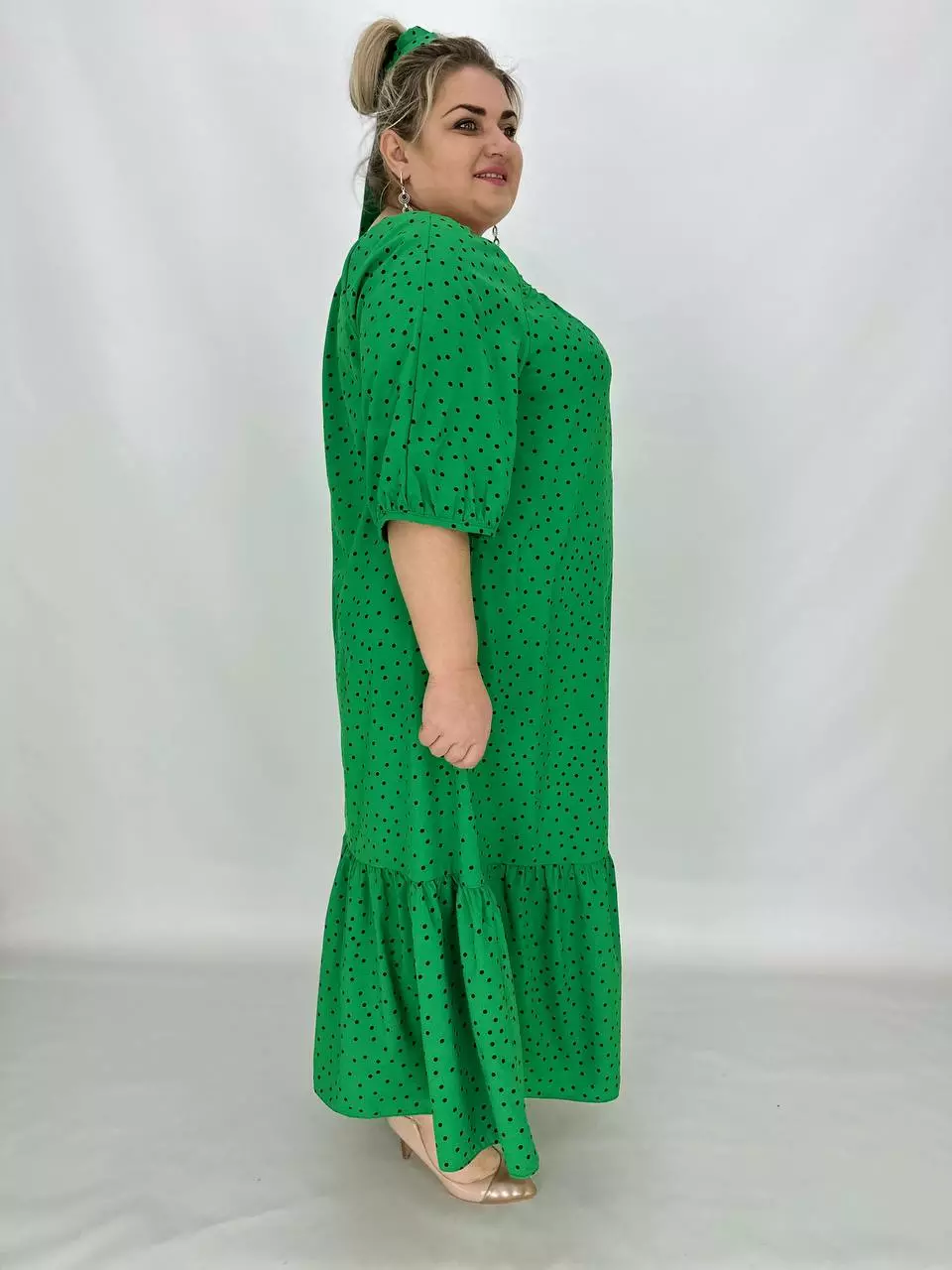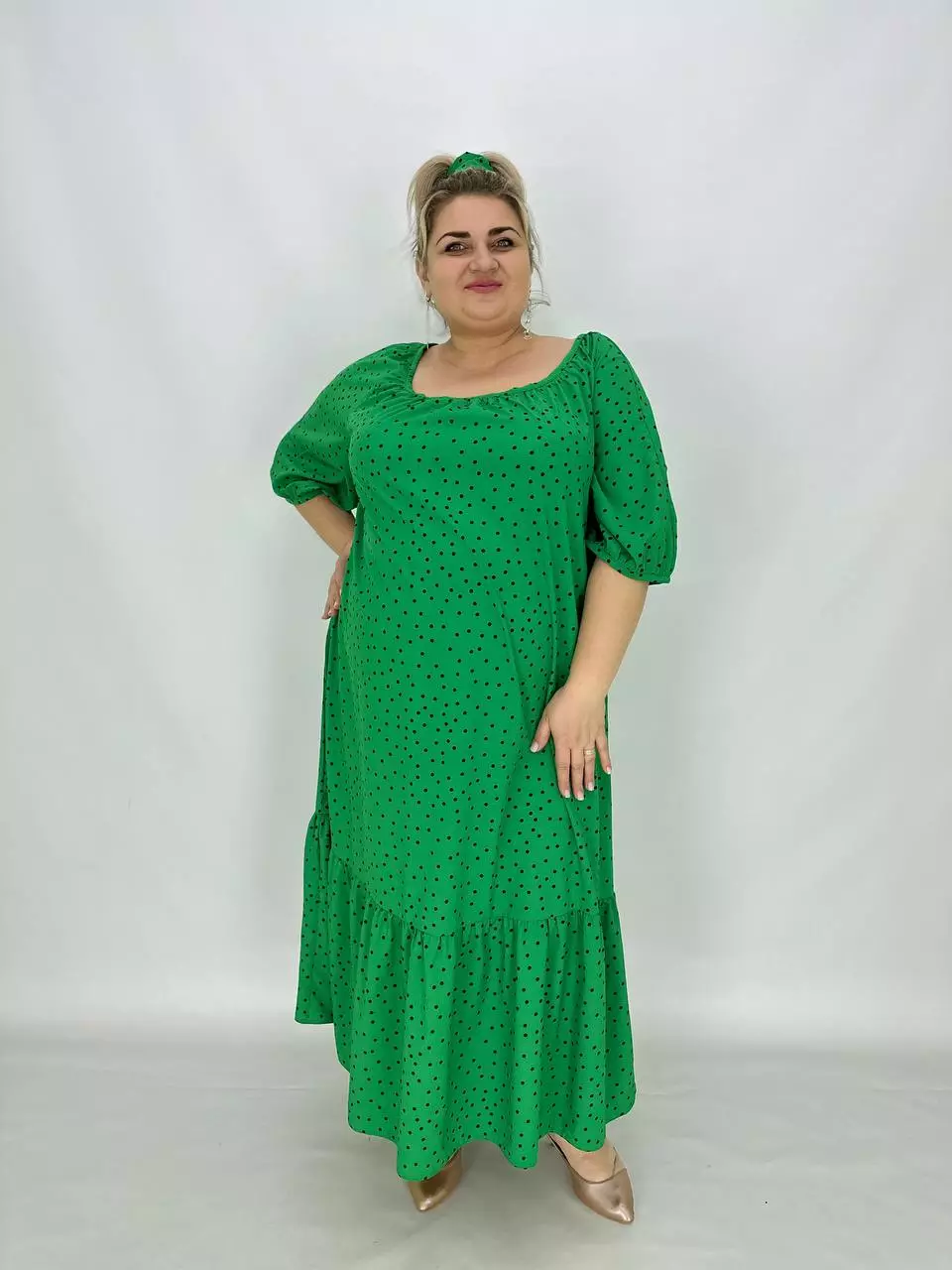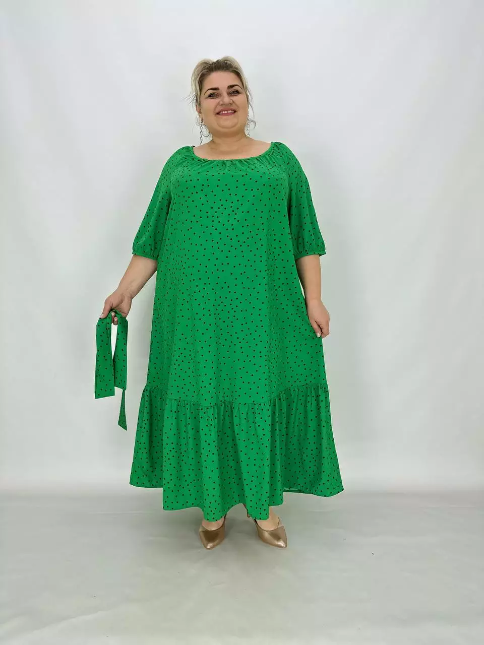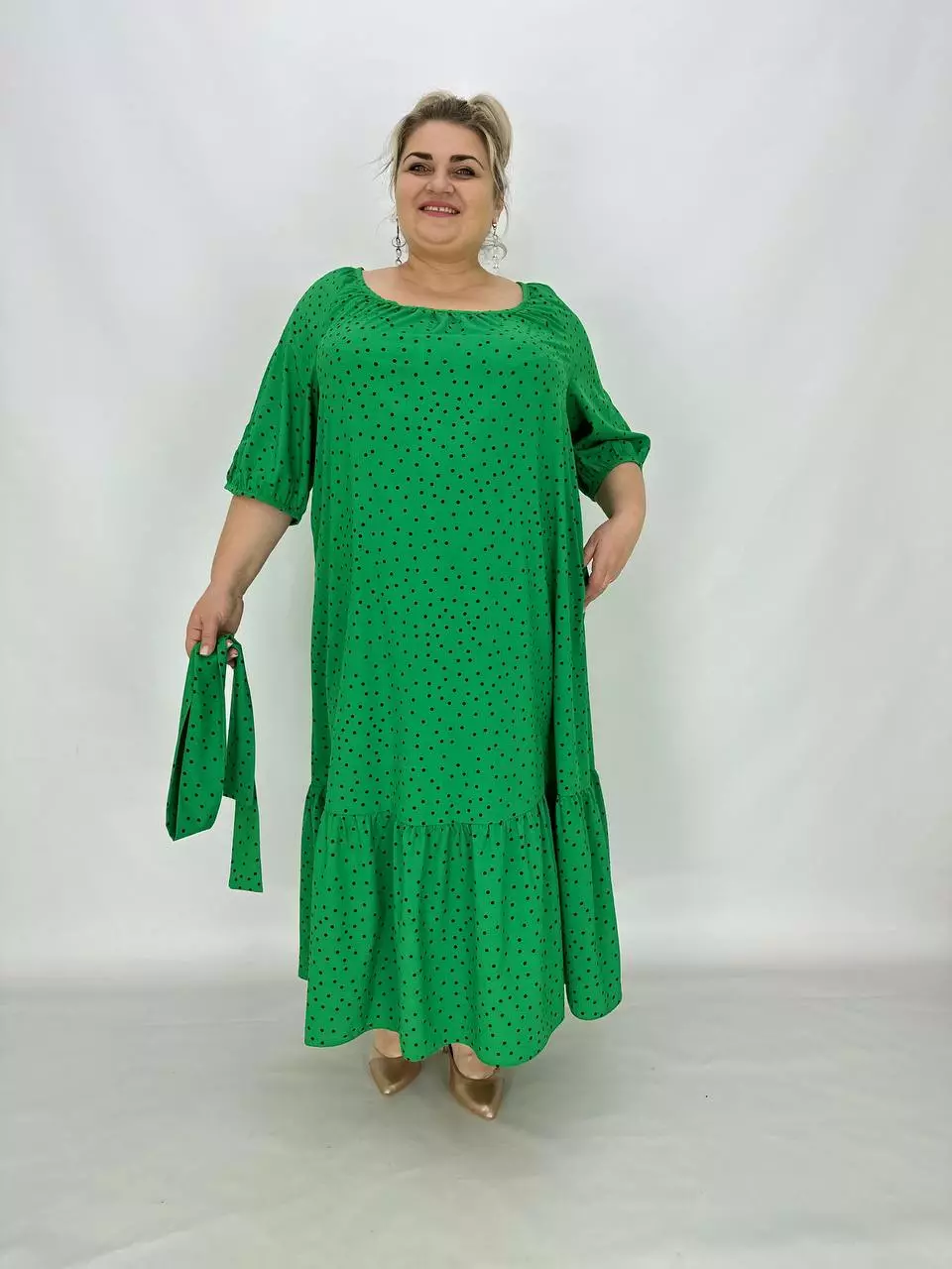 Вільна сукня з оборкою, кишені в бічних швах, дуже легка, не просвічується, в комплекті стрічка для капелюшка.