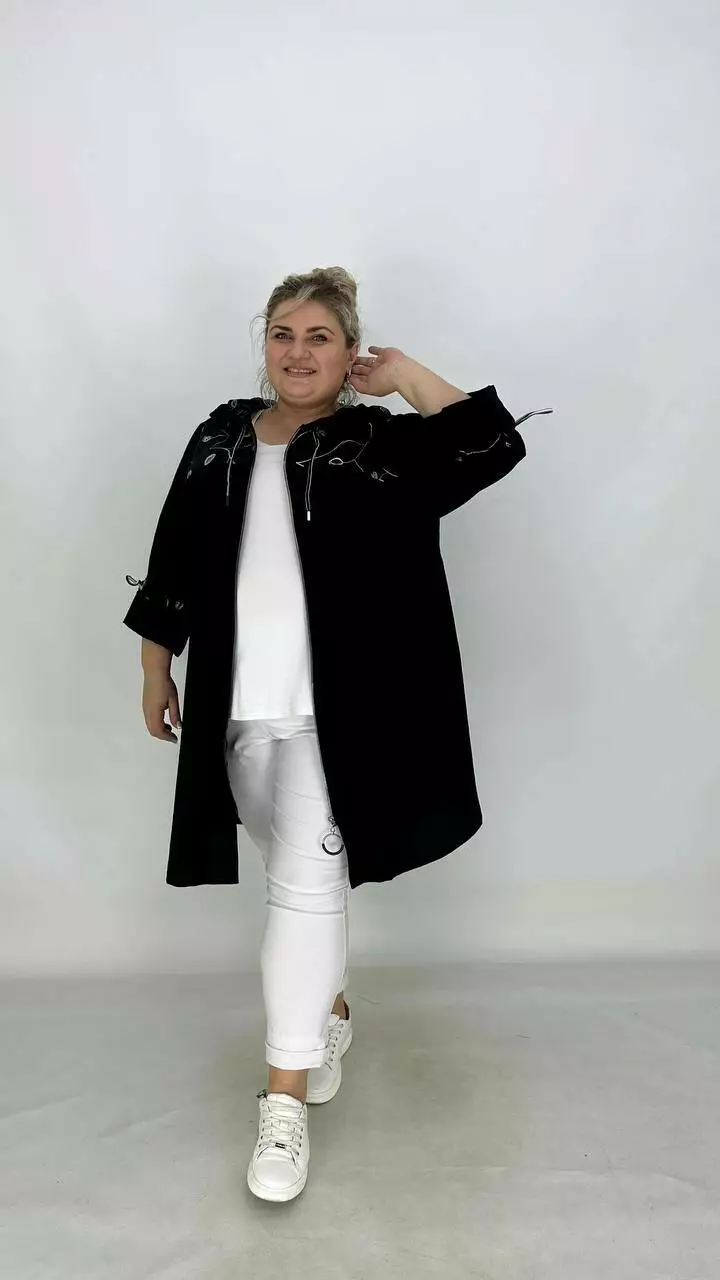 Легкий пильовик із жатого льону, комбіновано з льоном вишивка.