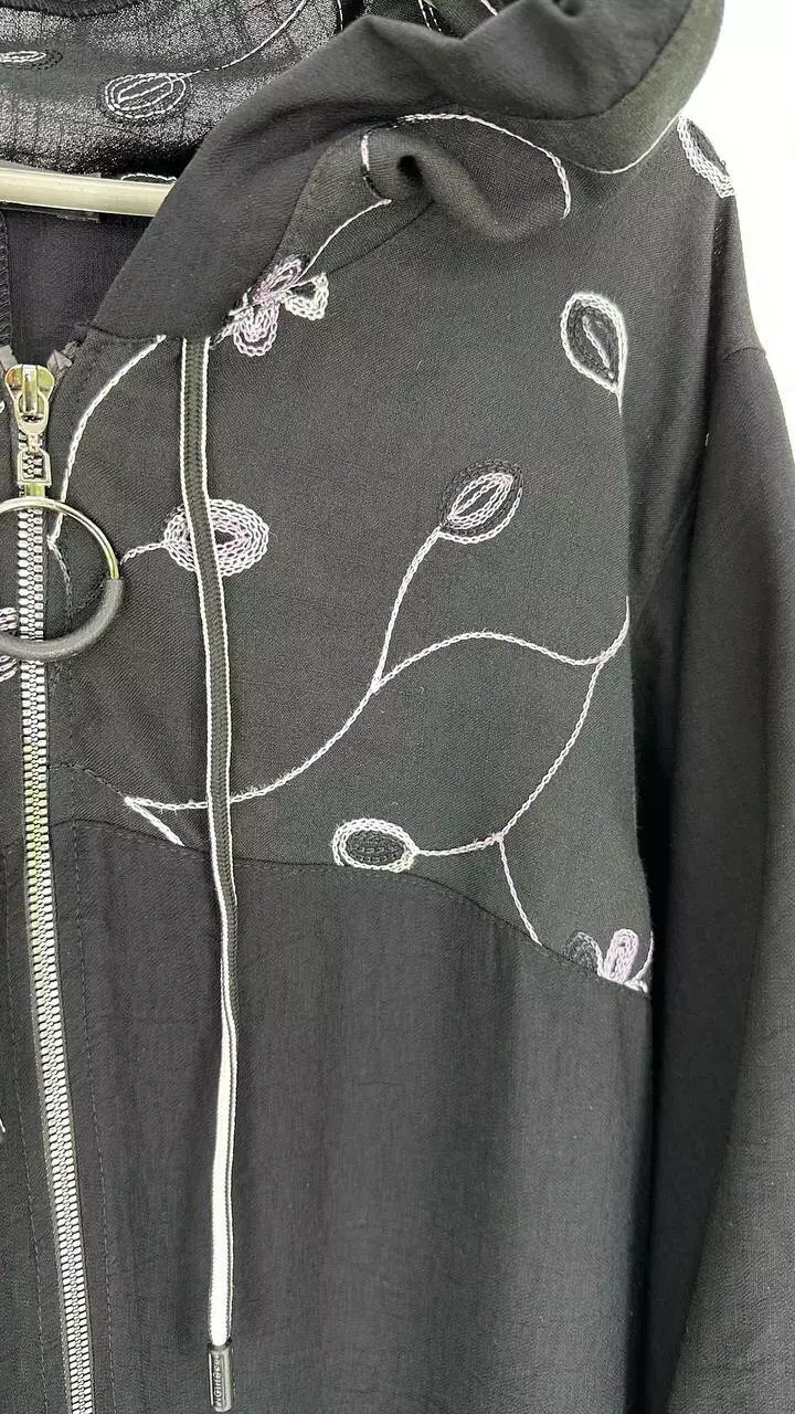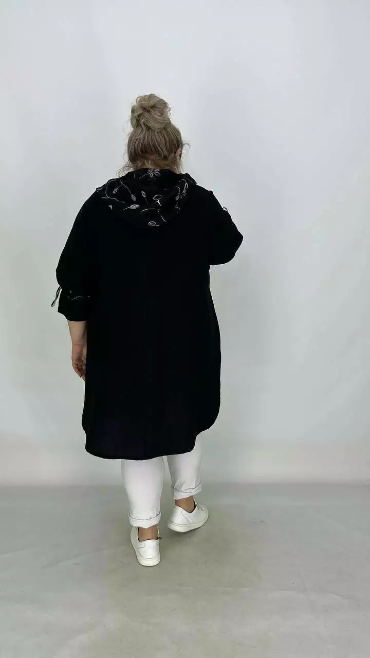 Легкий кардиган чорний жатий льон "Загадка" з вишивкою 62-64 66-68