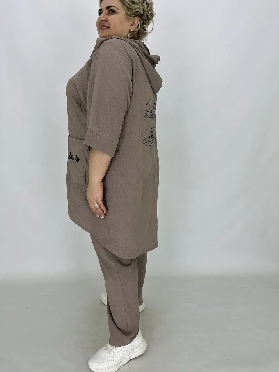 Літній кардиган "Зоряна" вільний силует з кишенями та капюшоном 62-64 66-68