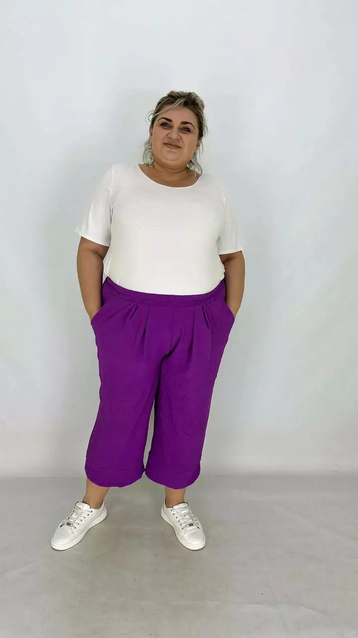 підрізами з боків. Капрі з високою посадкою, пояс на гумці, з