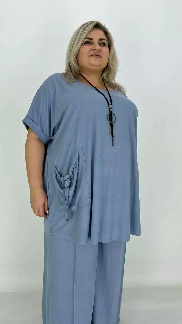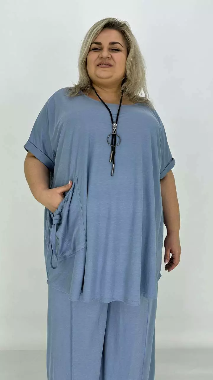 Туніка вільного силуету зі спущеним плечем-оверсайсом. Тканина