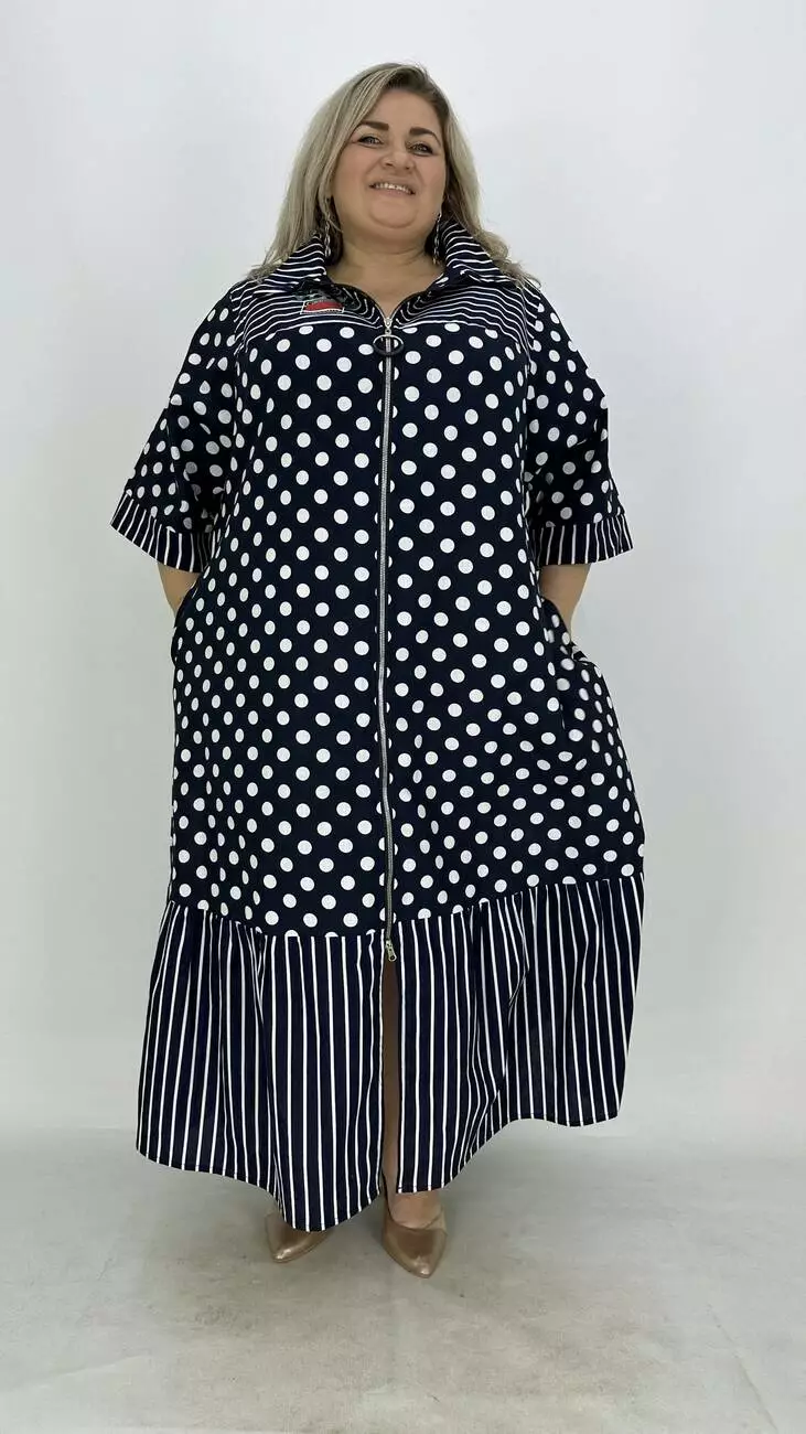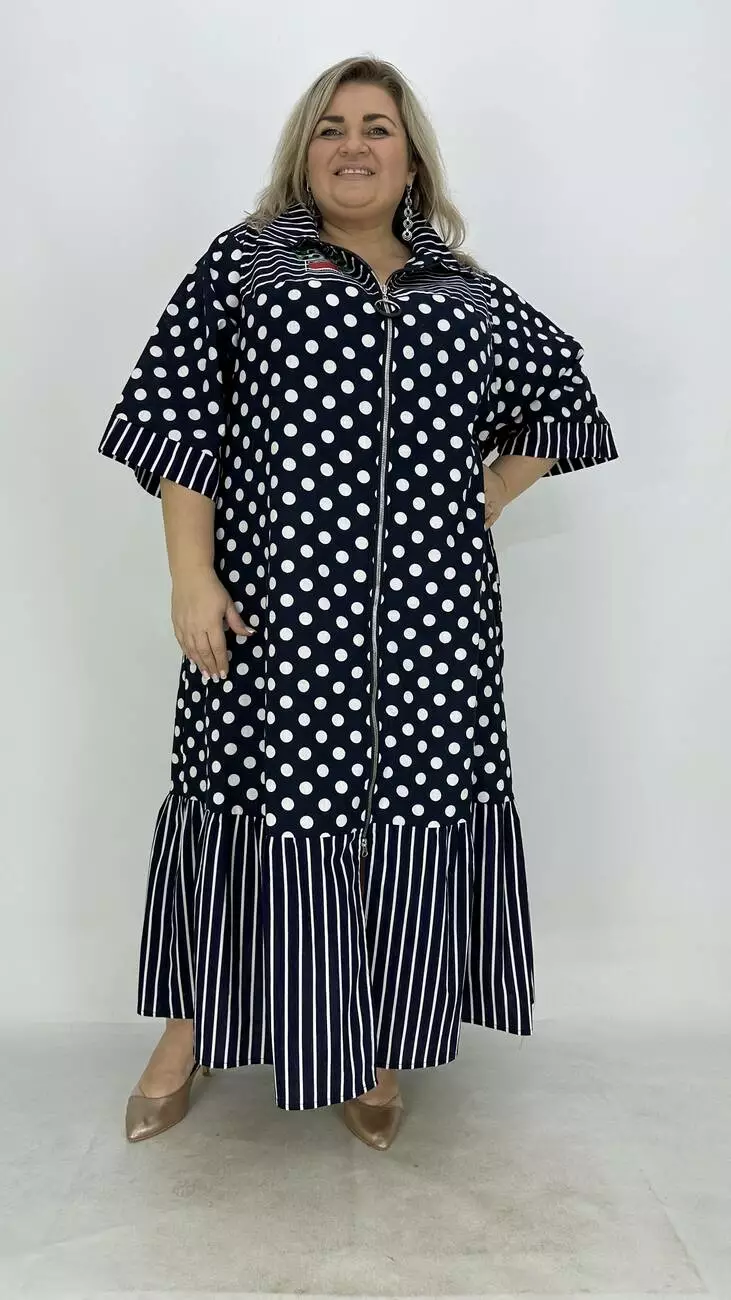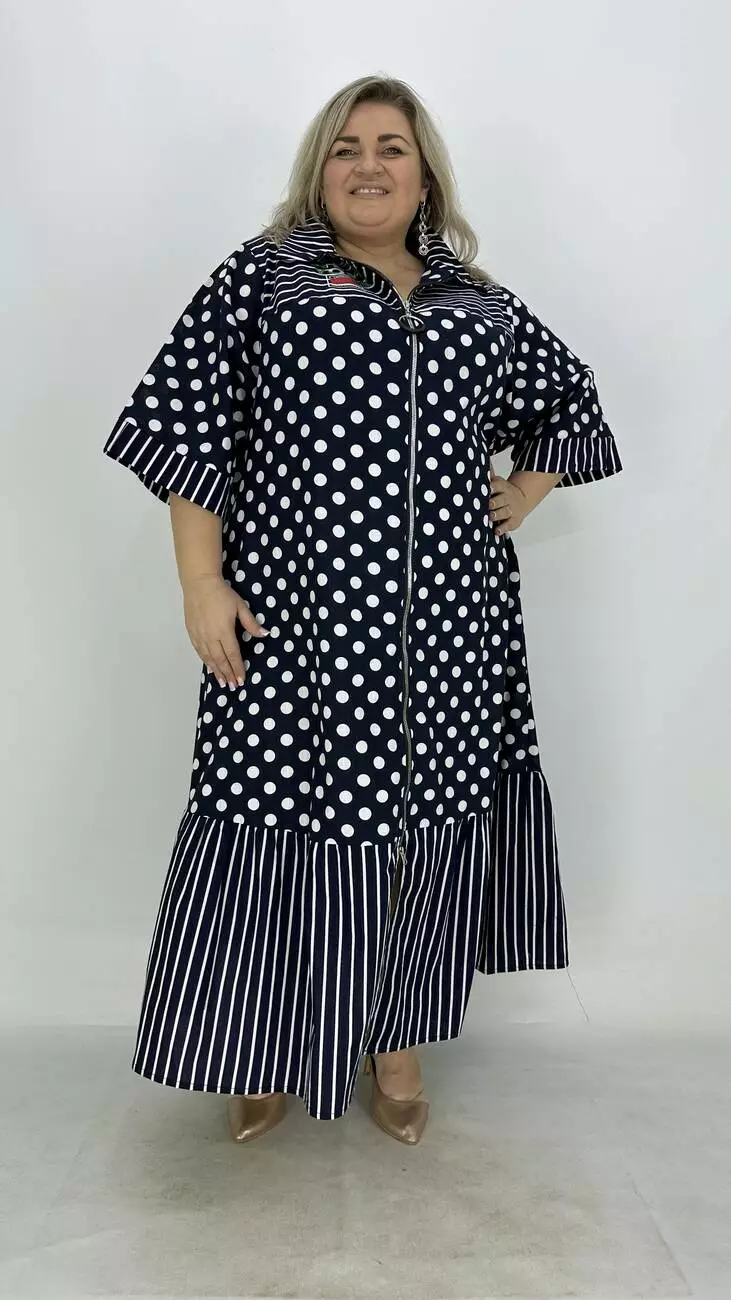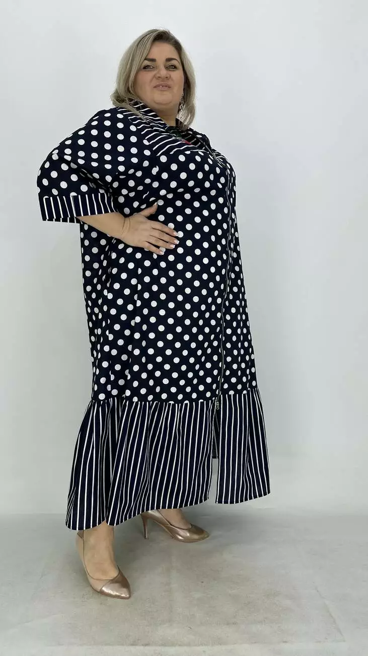 Льняна сукня-сорочка на блискавці великого розміру "Кетті" в горох 66-68 70-72 74-76