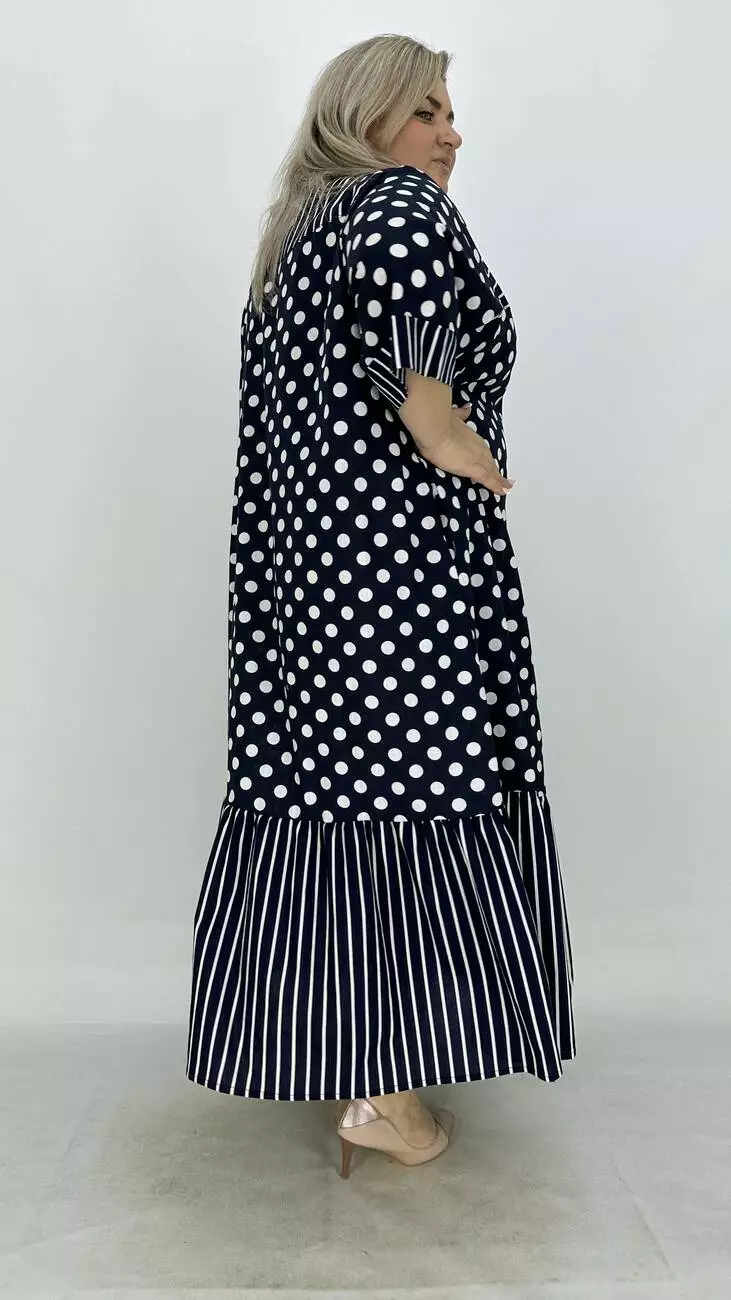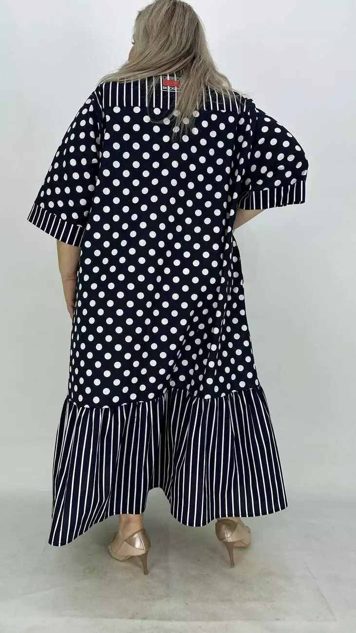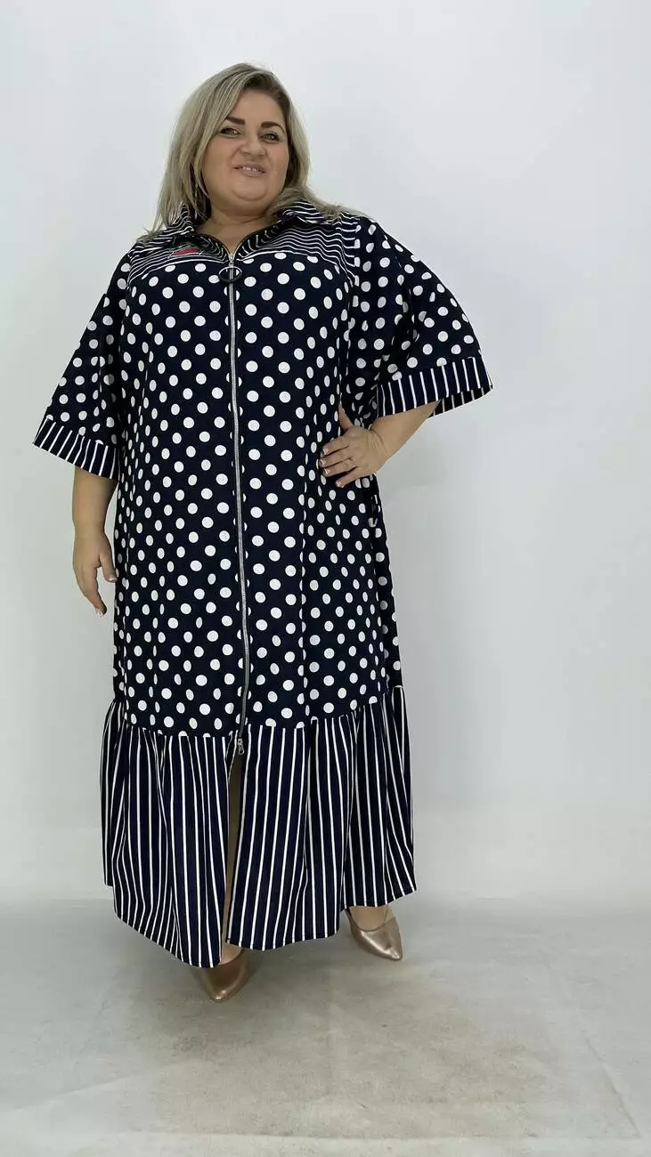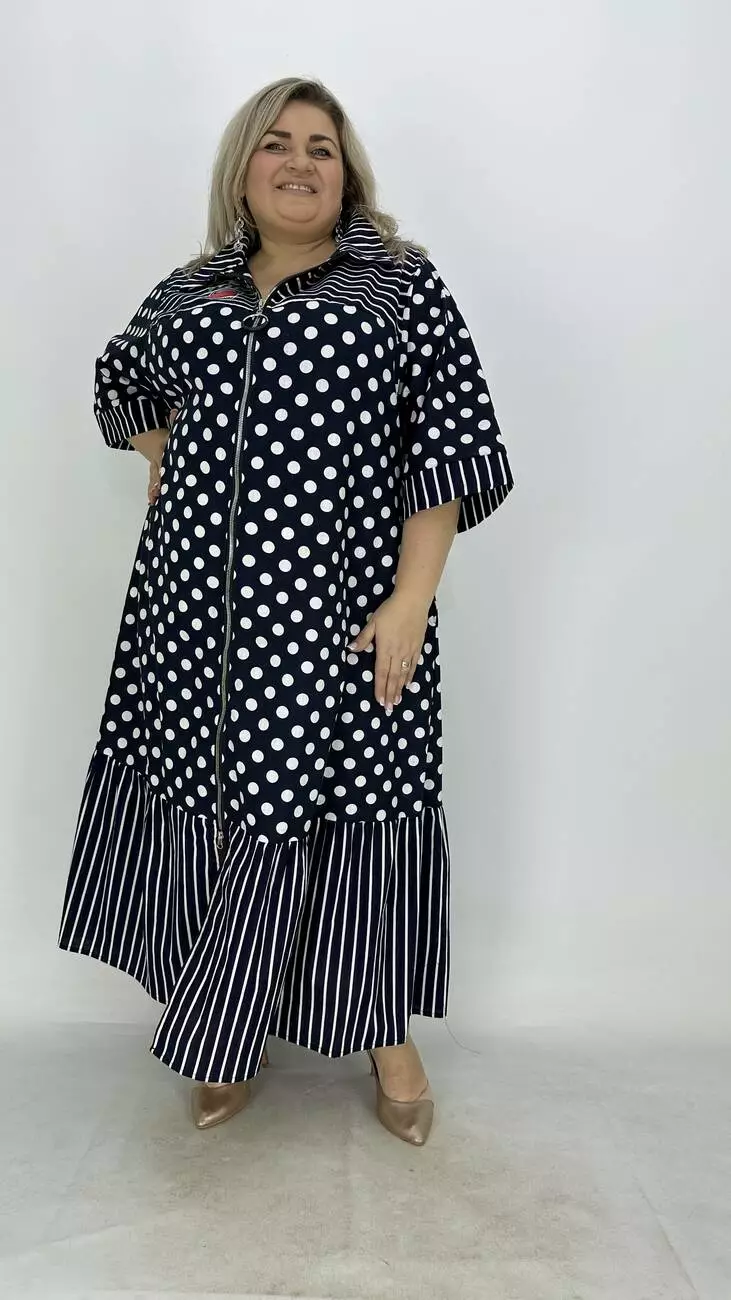 Льняна сукня-сорочка на блискавці великого розміру "Кетті" в горох 66-68 70-72 74-76