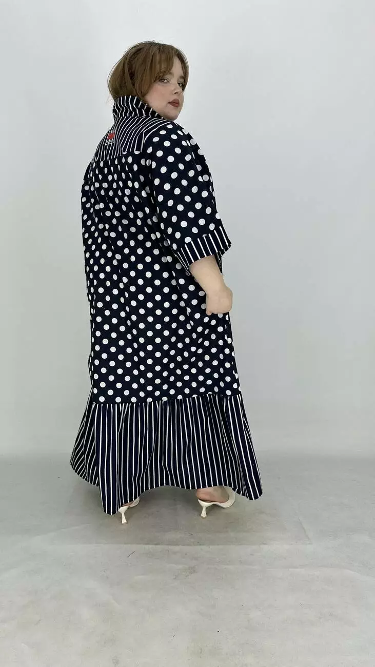 Льняна сукня-сорочка на блискавці великого розміру "Кетті" в горох 66-68 70-72 74-76