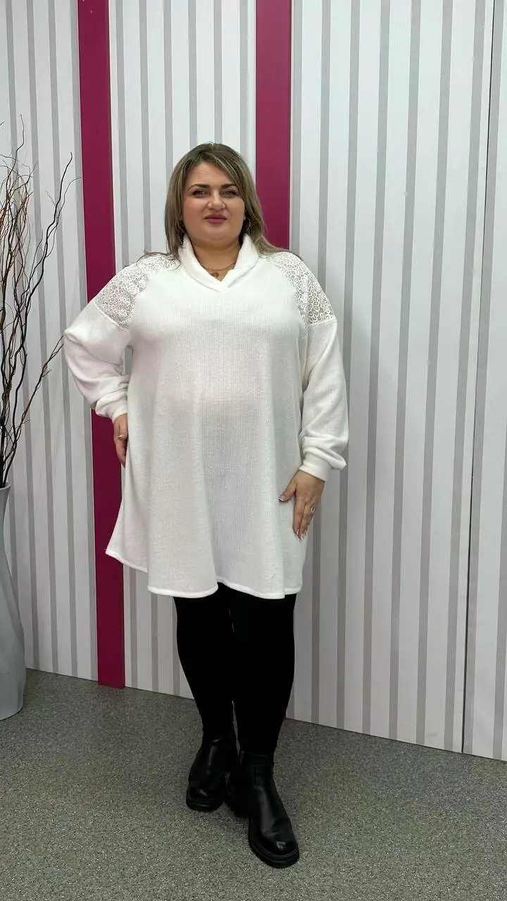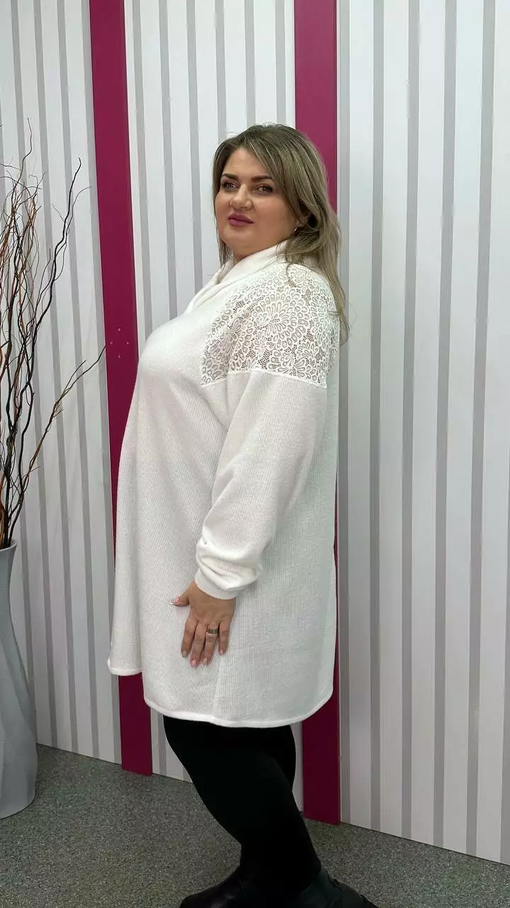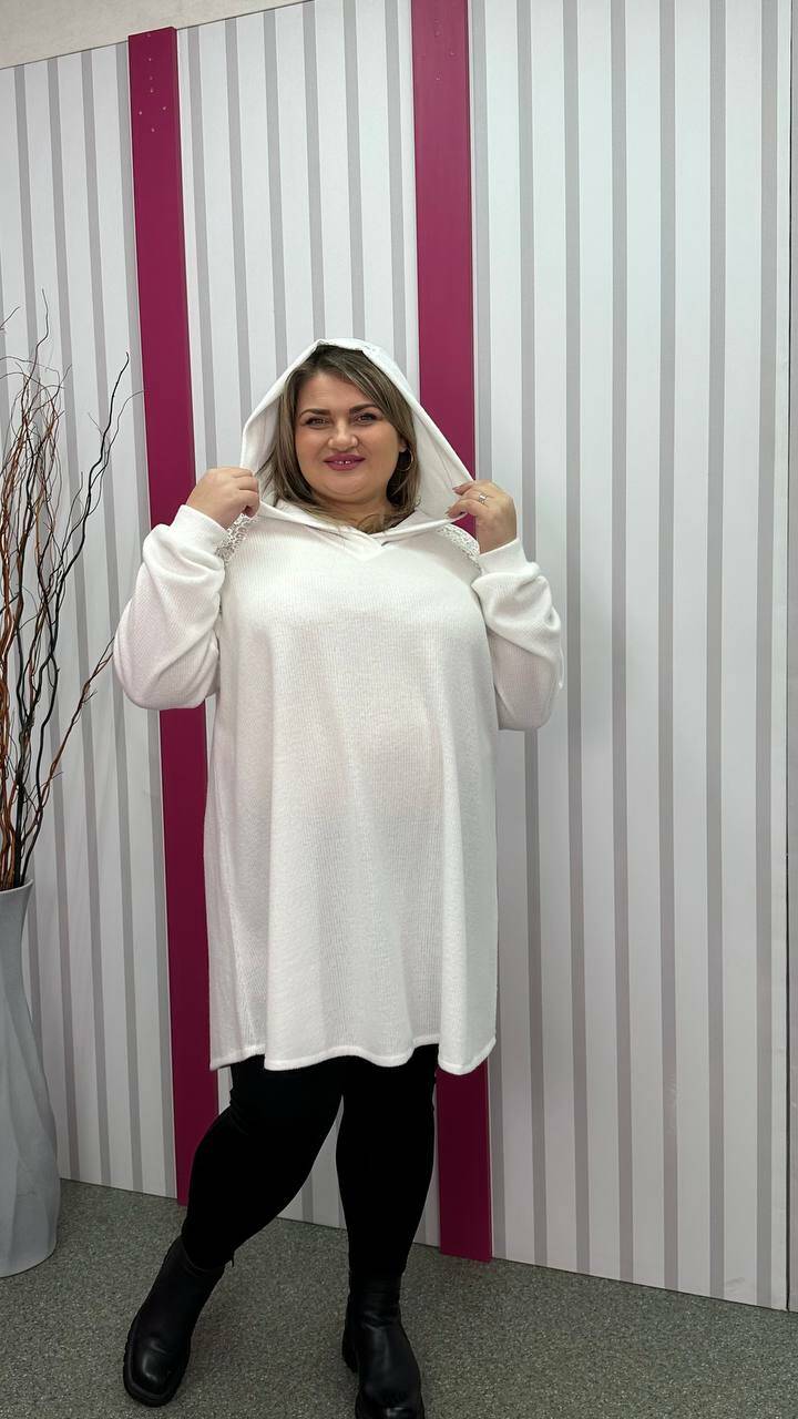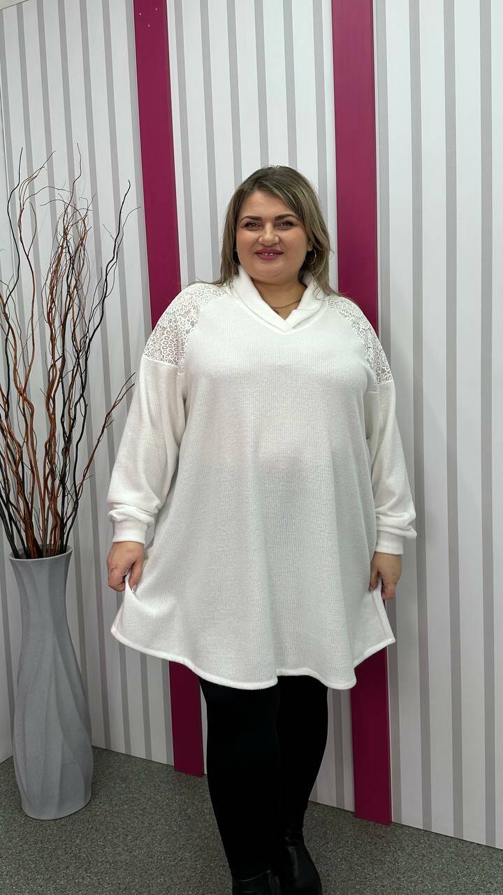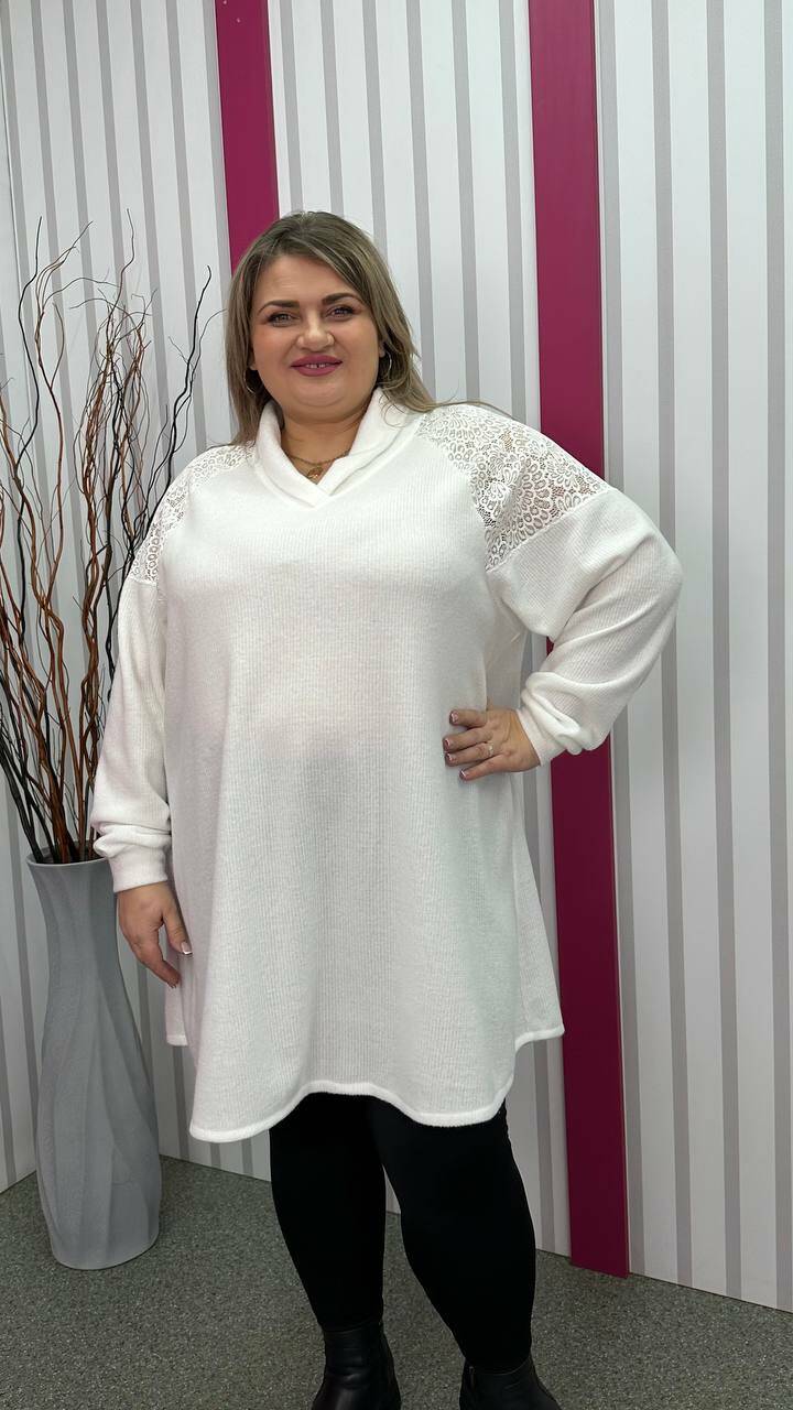 Ошатна та повсякденна трикотажна туніка "Белуччі" біла великого розміру 58-60 62-64 66-68 70-72 74-76