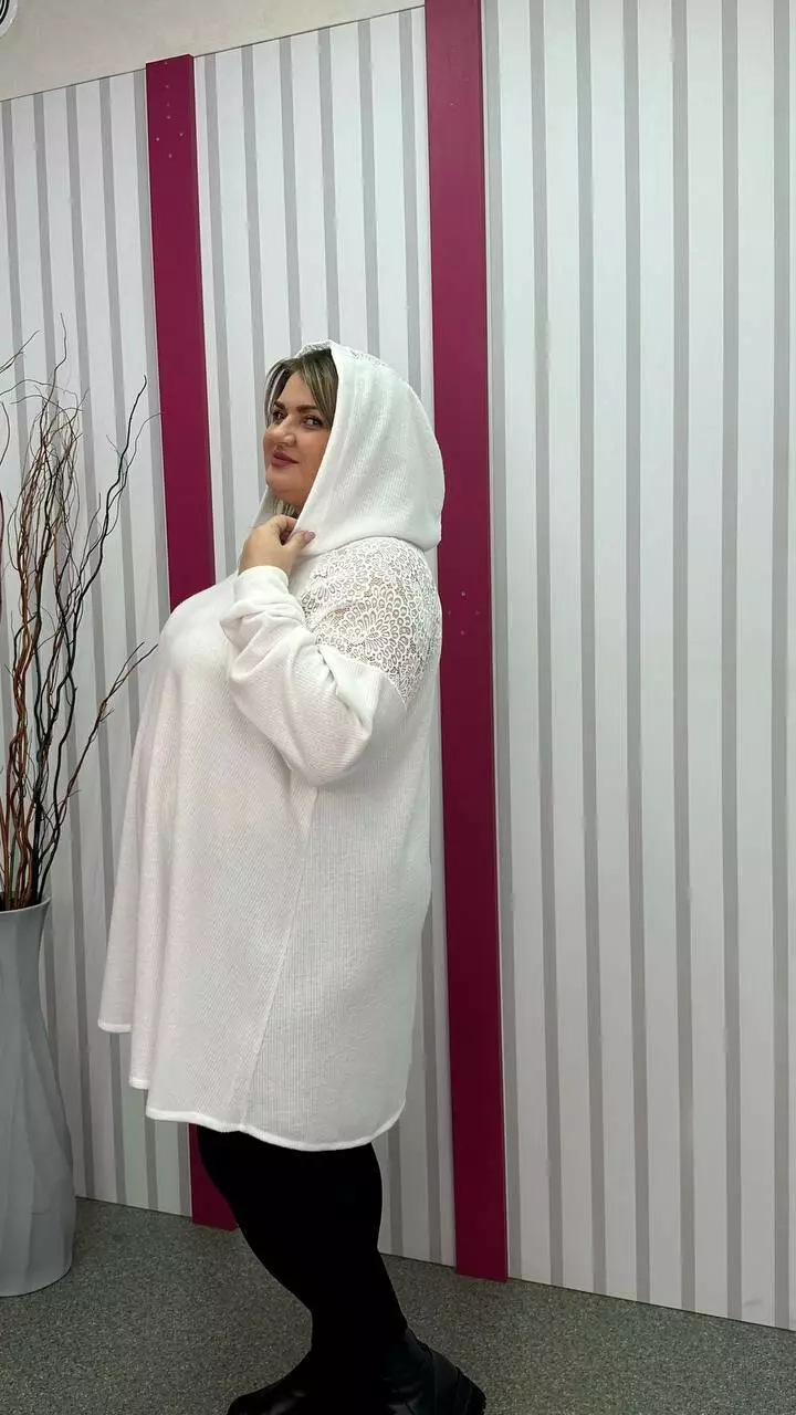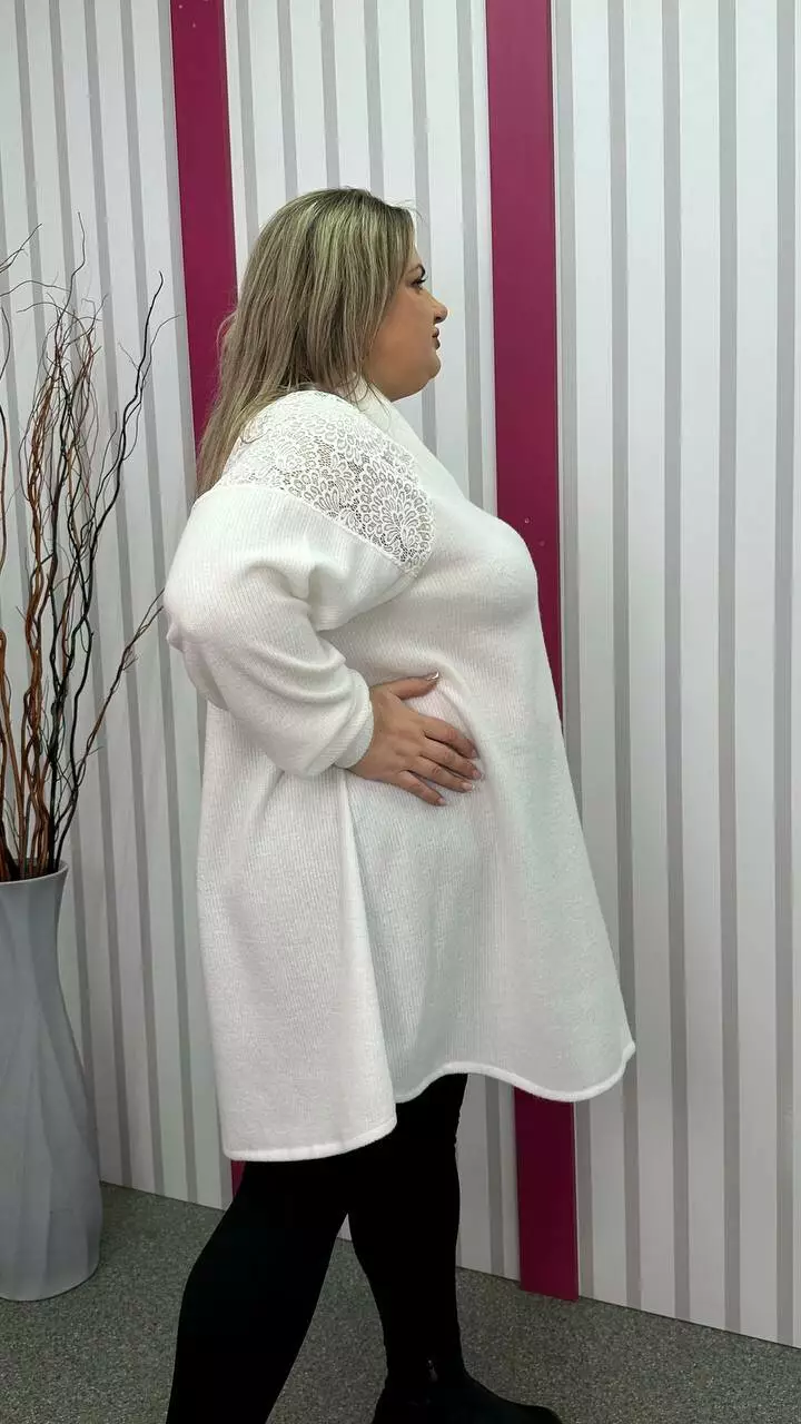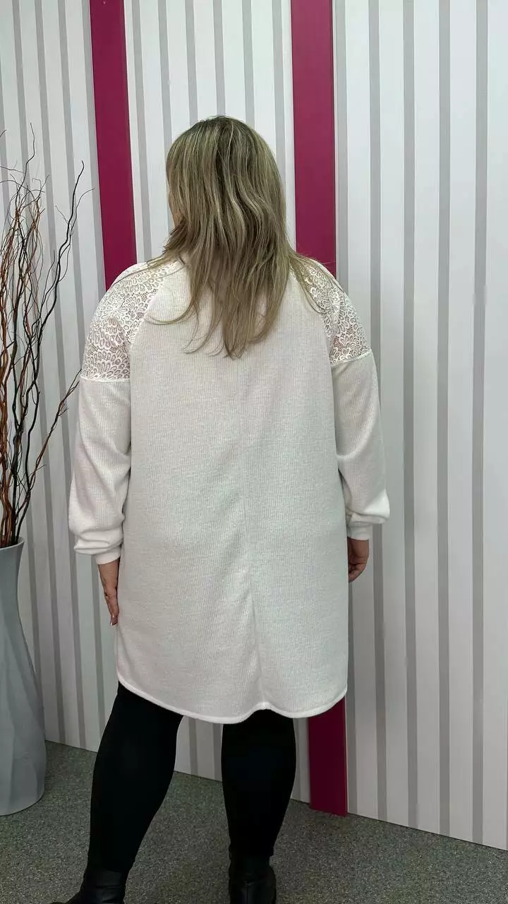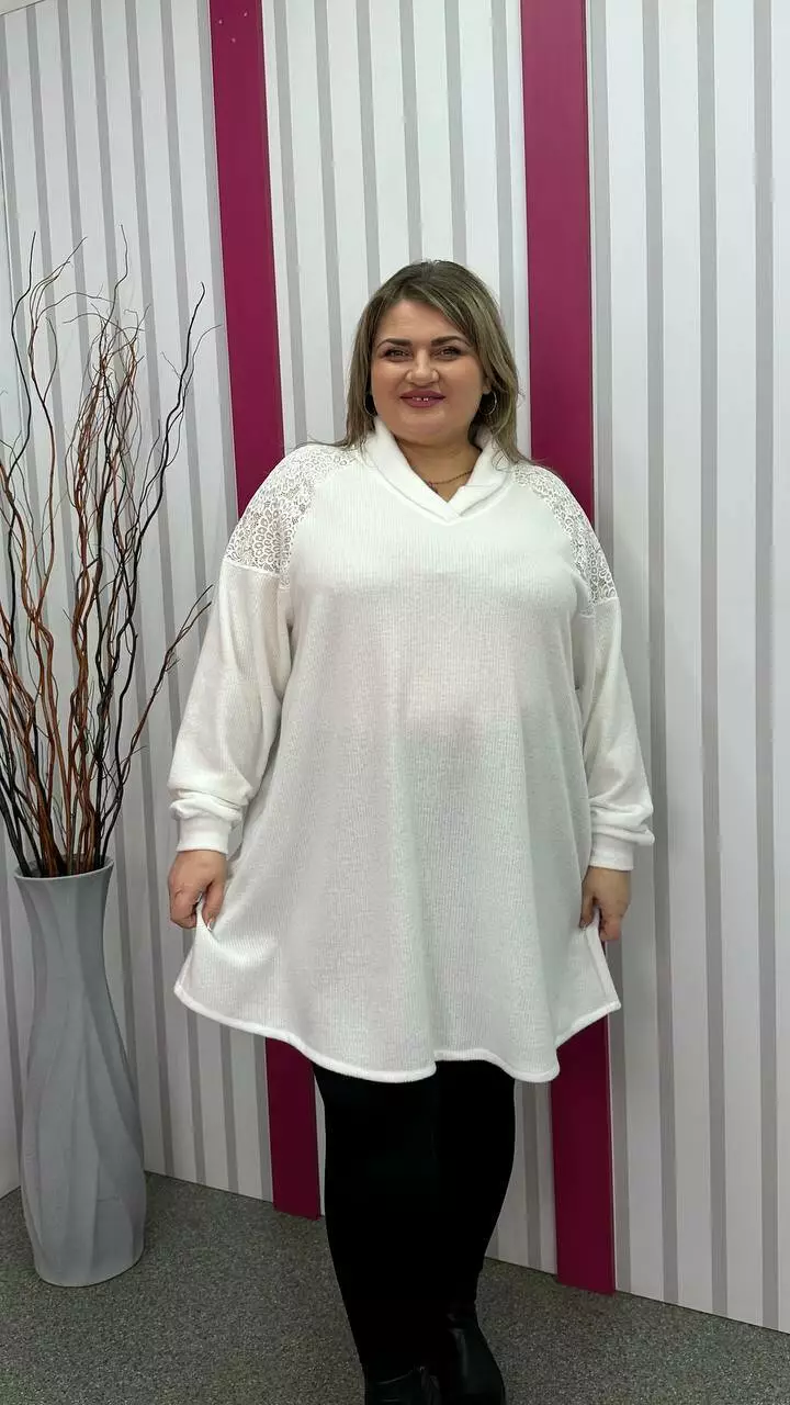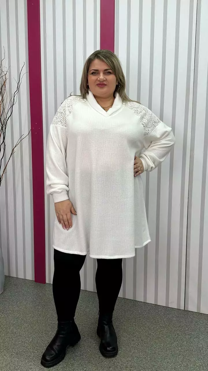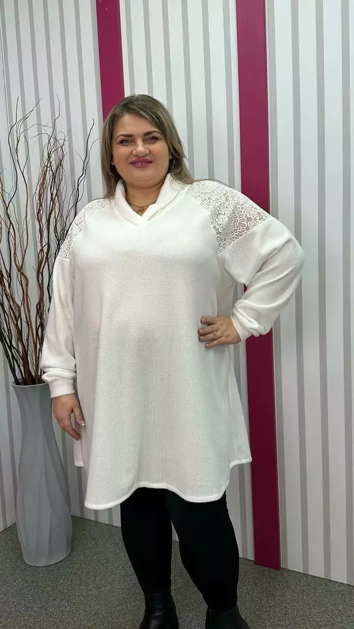 Ошатна та повсякденна трикотажна туніка "Белуччі" біла великого розміру 58-60 62-64 66-68 70-72 74-76