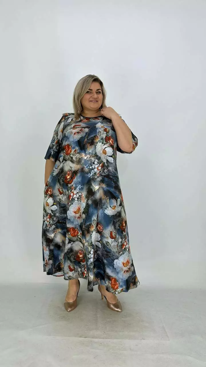 Ошатна легка сукня з трикотажу "Пампадур " з принтом 66-68 70-72 74-76