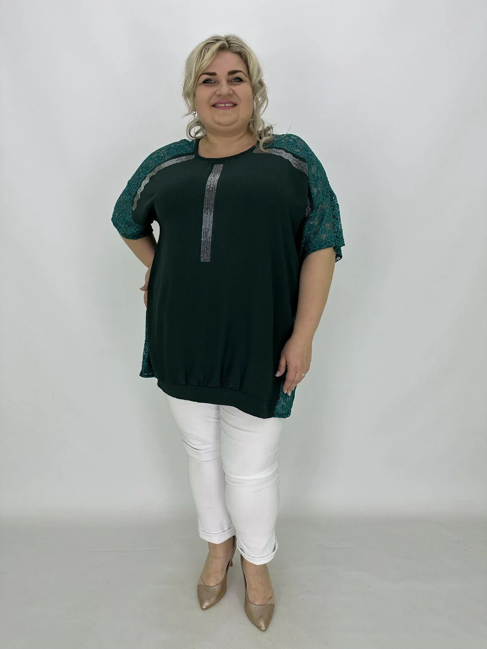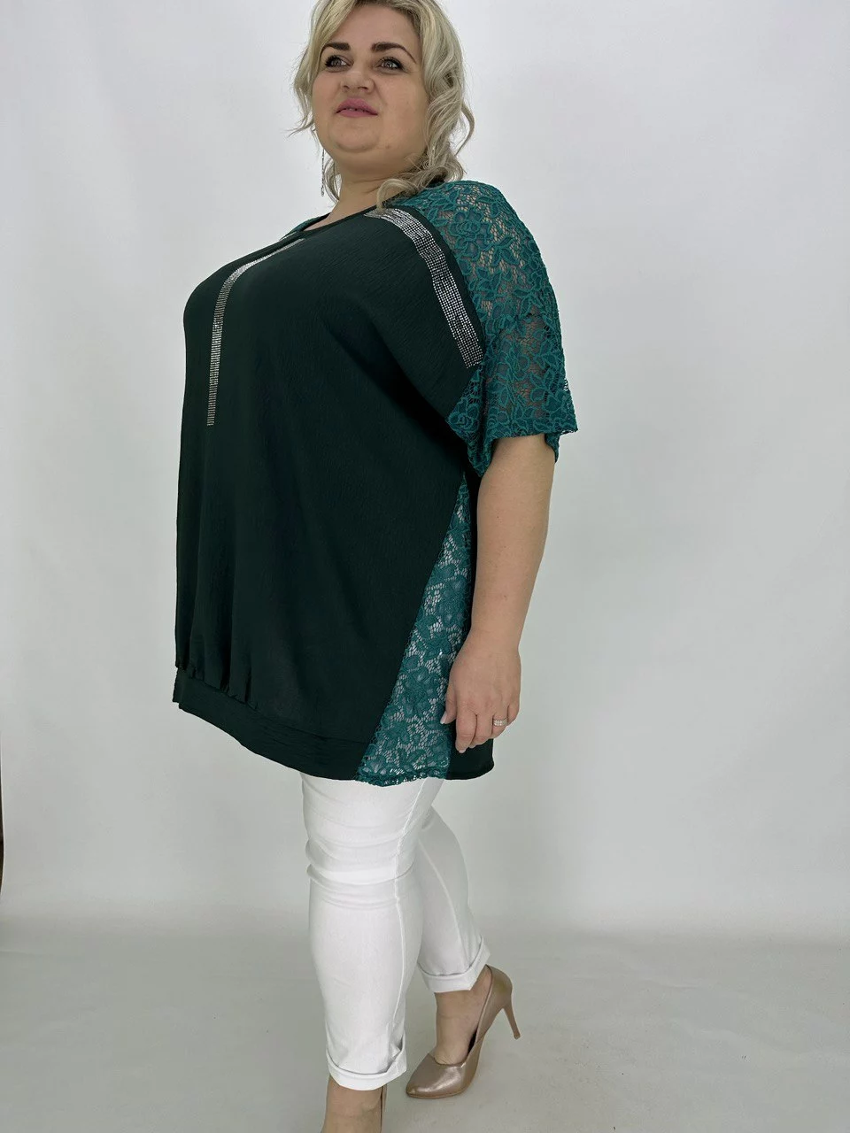 Туніка з легкої ніжної тканини-американський креп з невеликою розтяжністю.