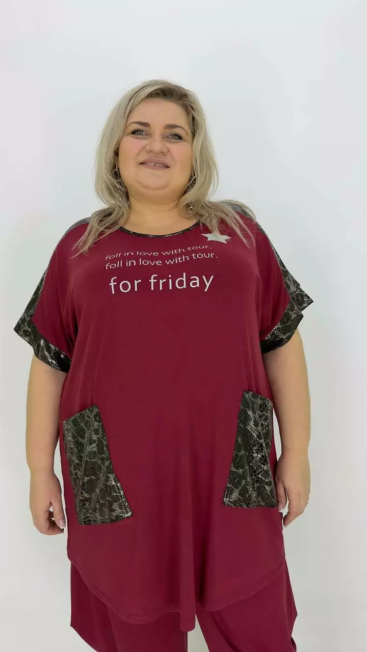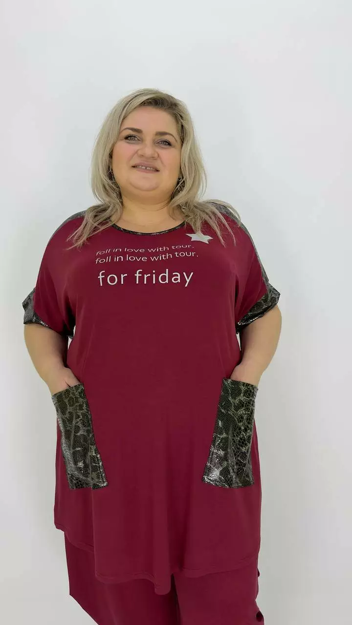 Туніка із трикотажної віскози вільного силуету зі спущеним плечем.