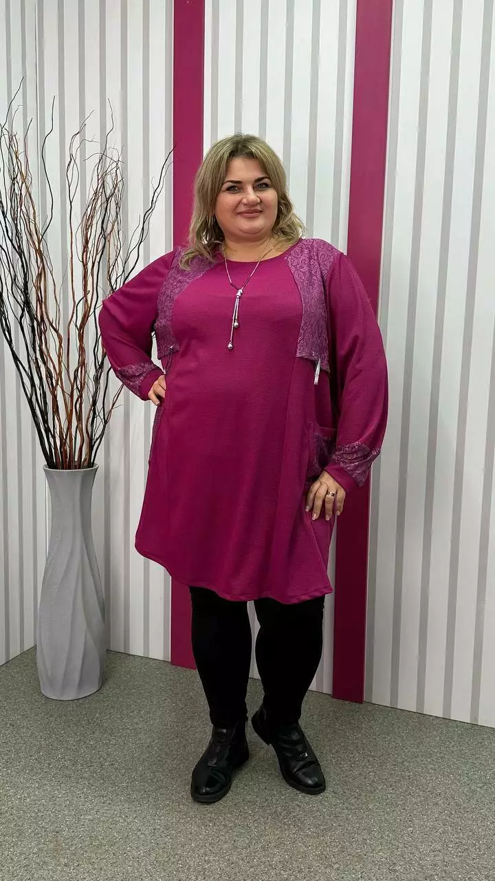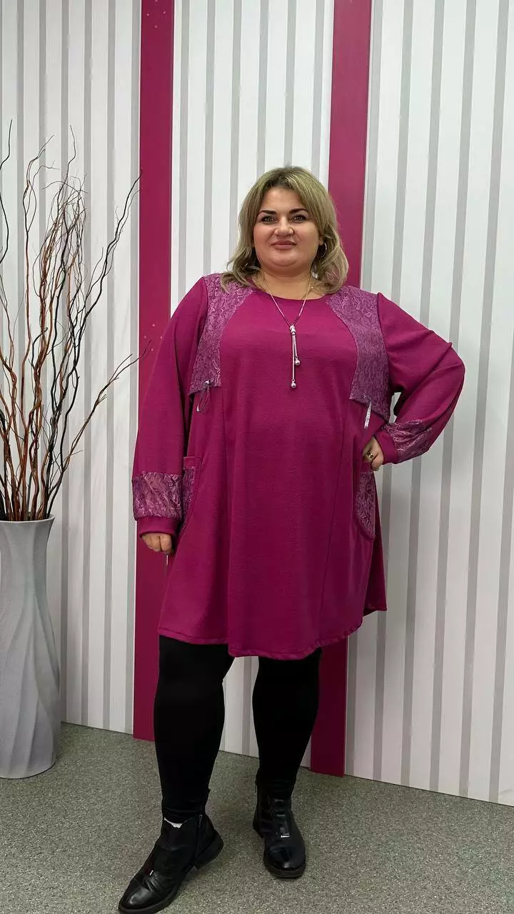Ошатна туника комбінована гіпюром, рукав довгий. горловина кругла. дві кишені