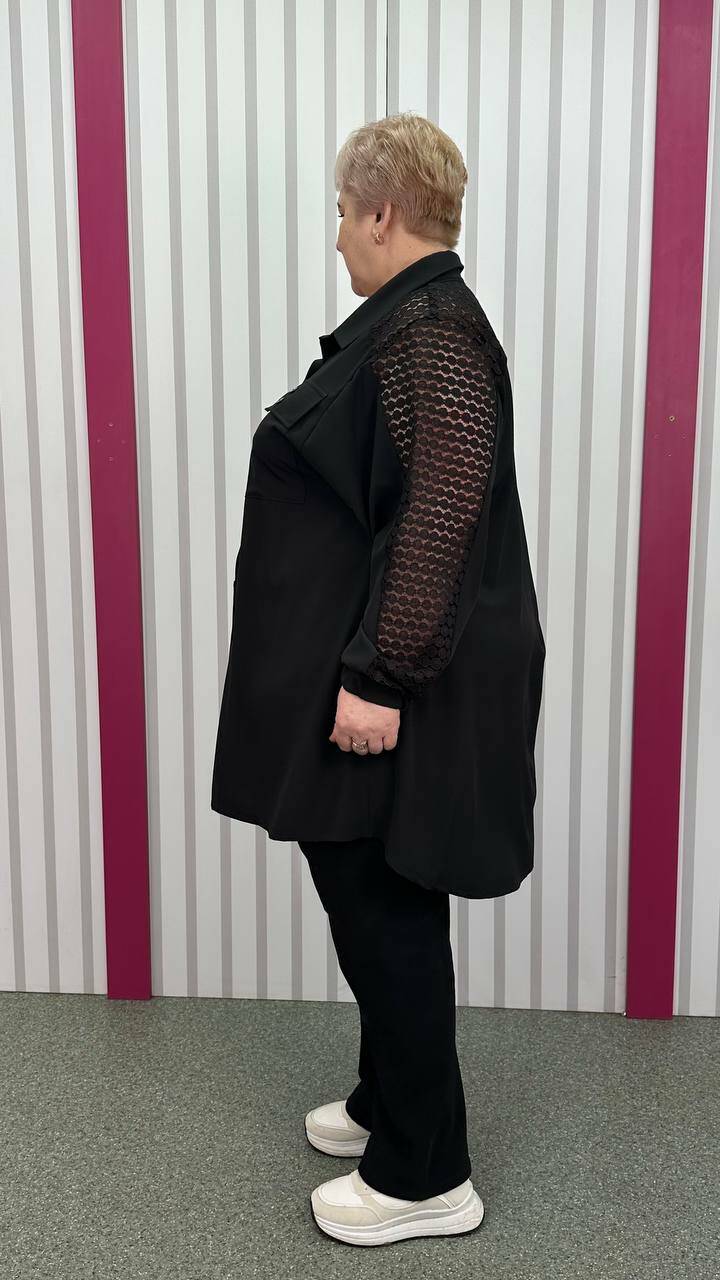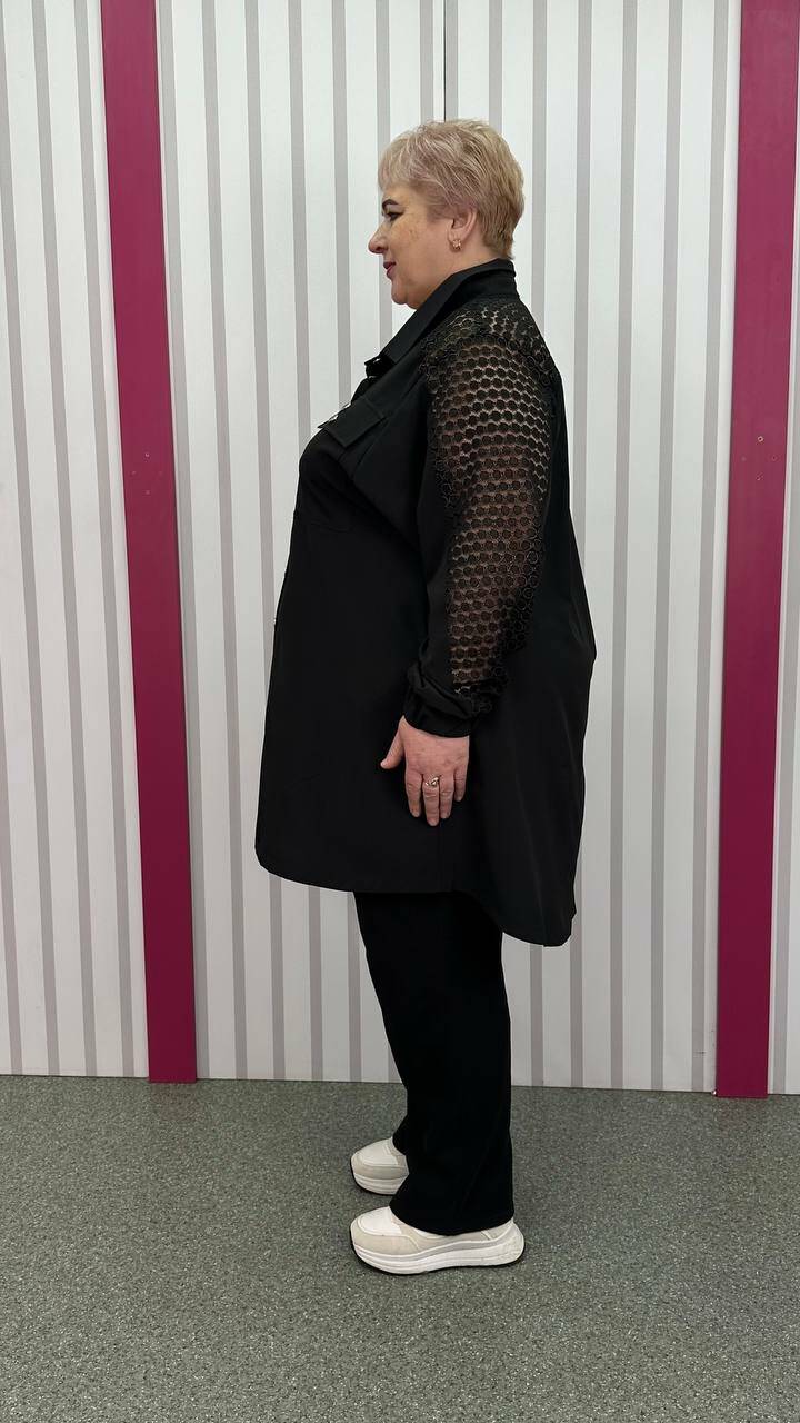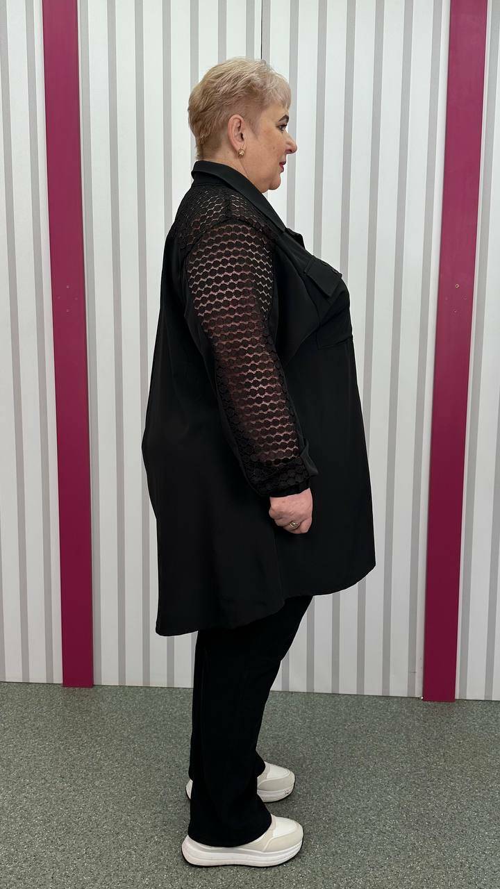 комбінована з м'яким трикотажним гіпюром. По грудях оверсайз,
