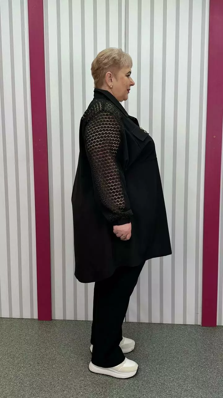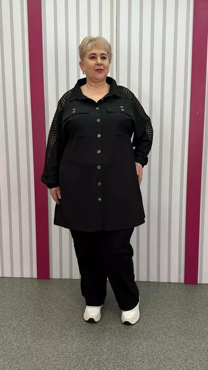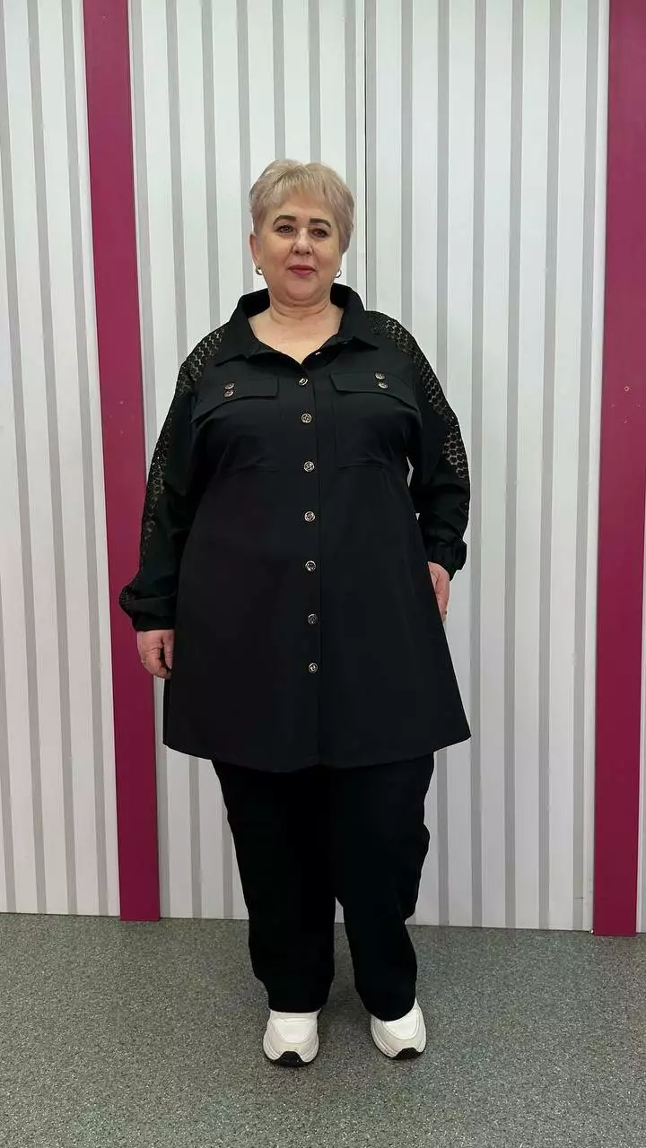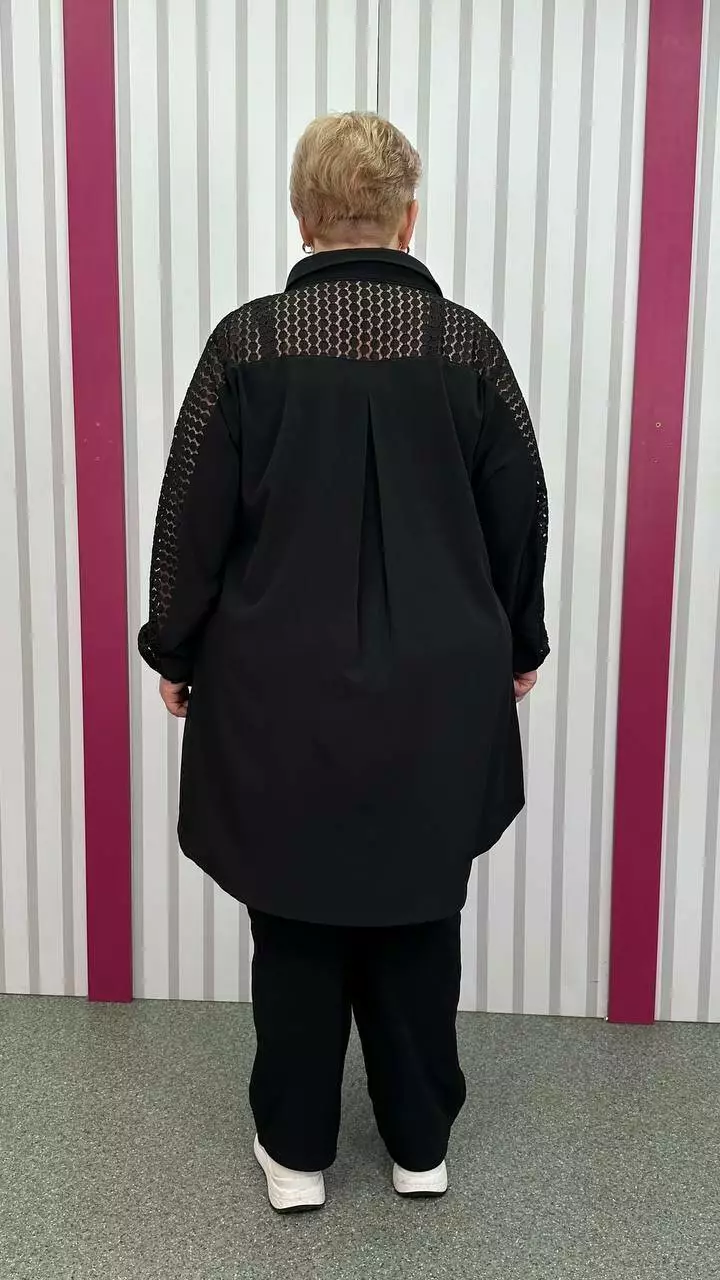 комбінована з м'яким трикотажним гіпюром. По грудях оверсайз,