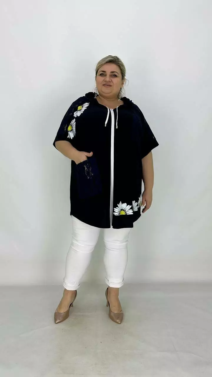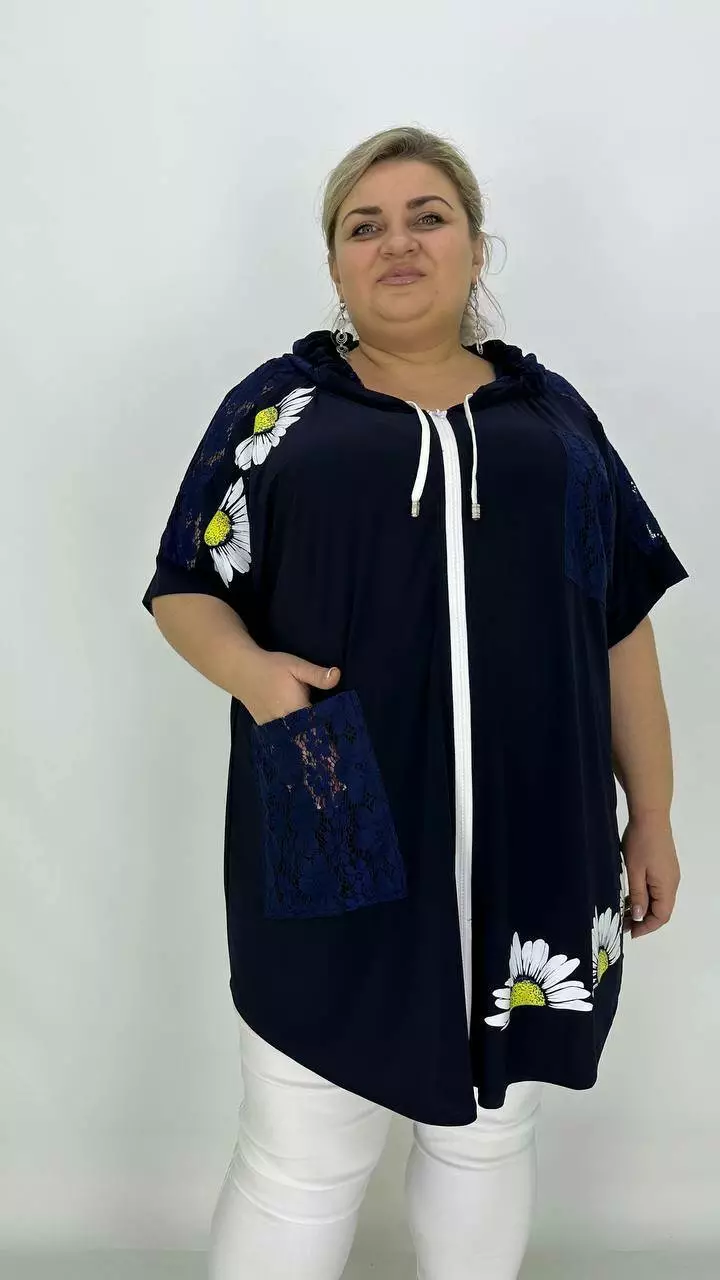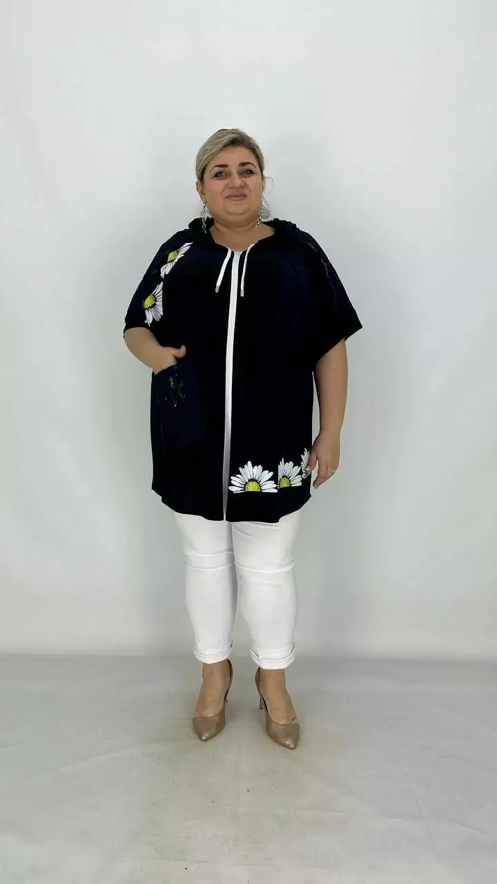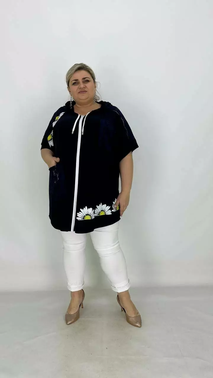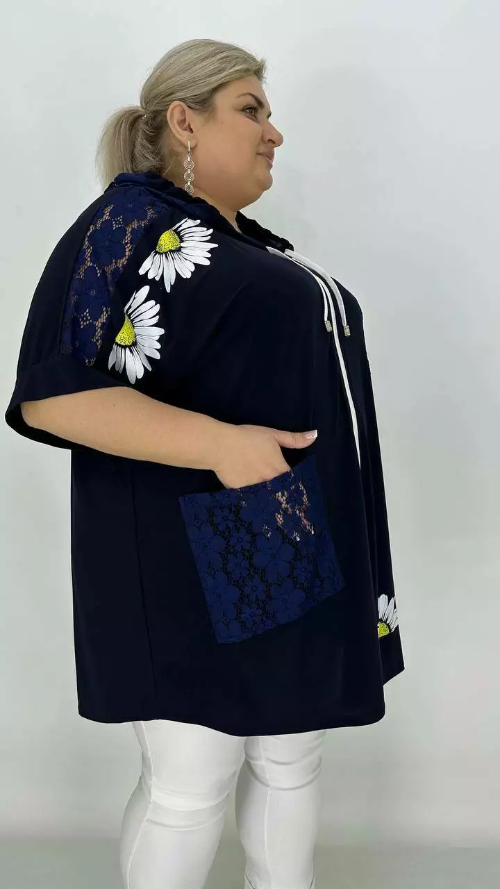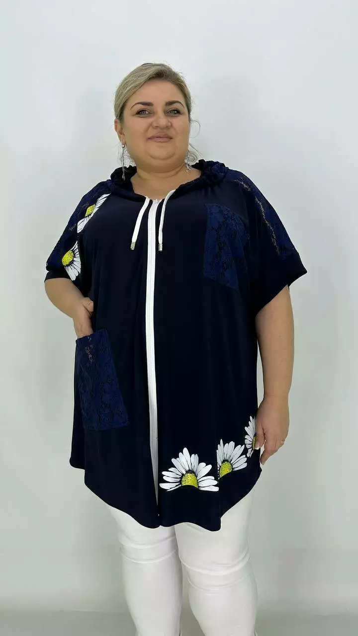 Ошатна вільна туніка з гіпюром "Ромашка" 66-68 70-72 74-76
