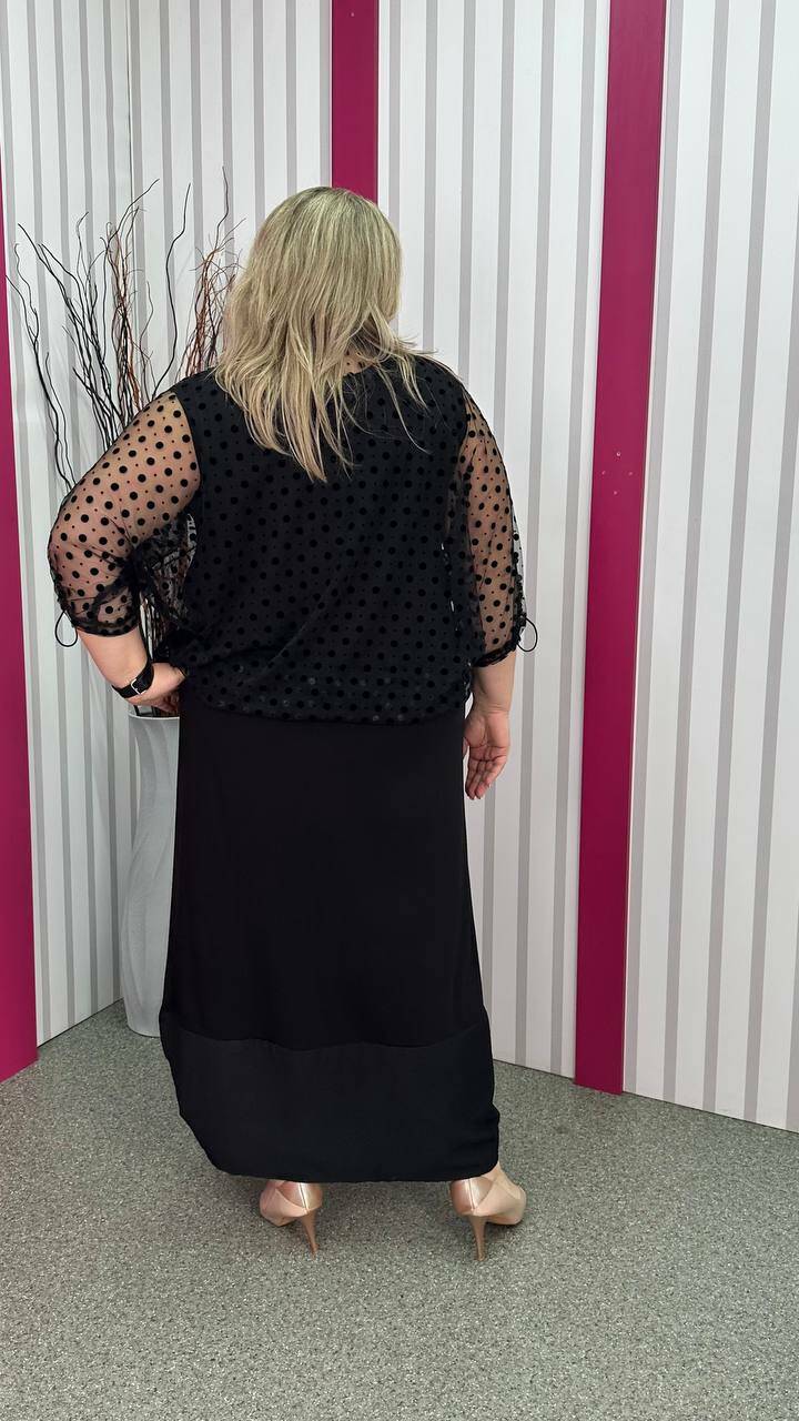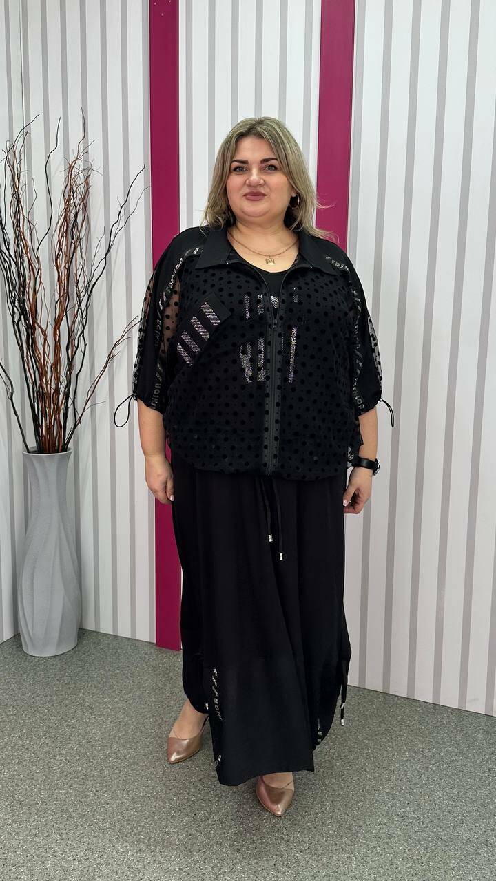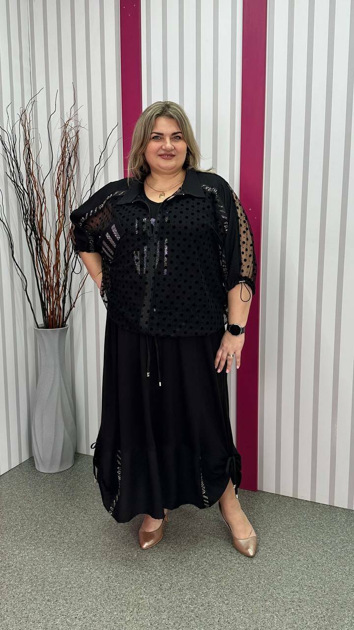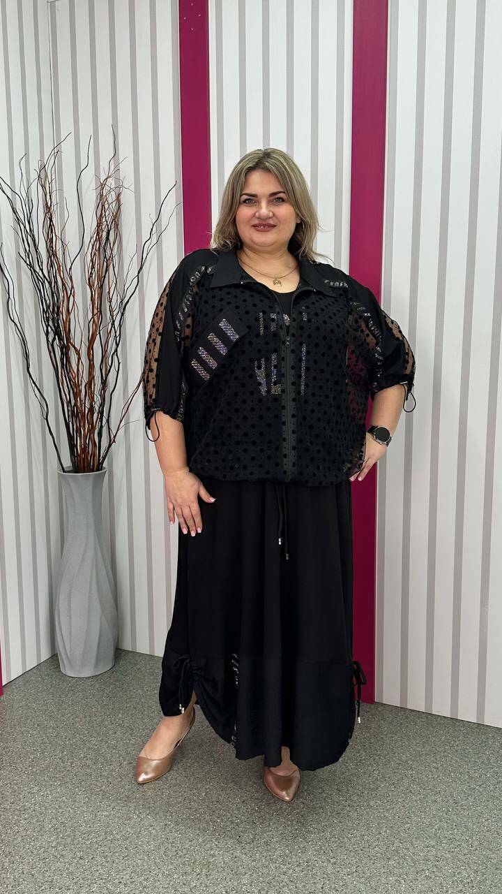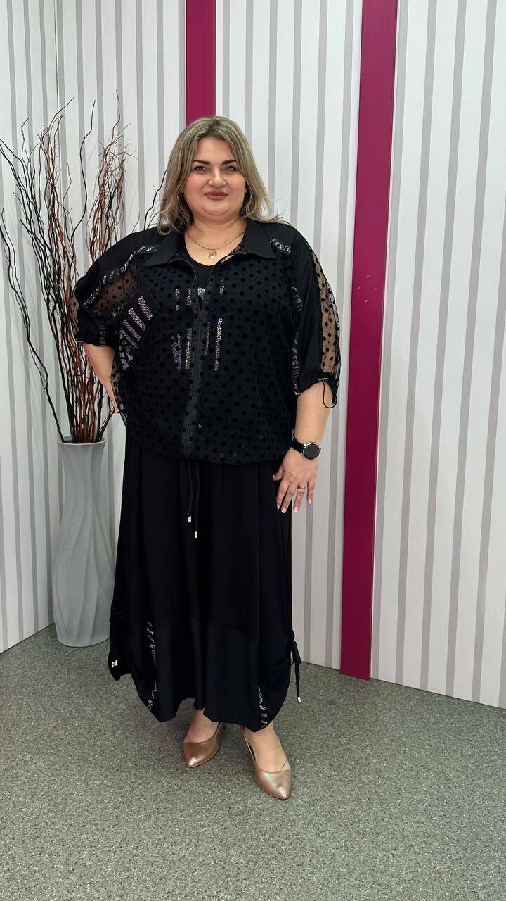 Ошатний костюм двійка (сарафан+блузон) чорний великого розміру 62-64 66-68 70-72 74-76