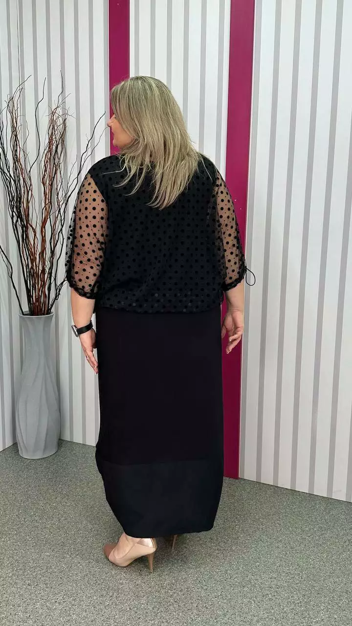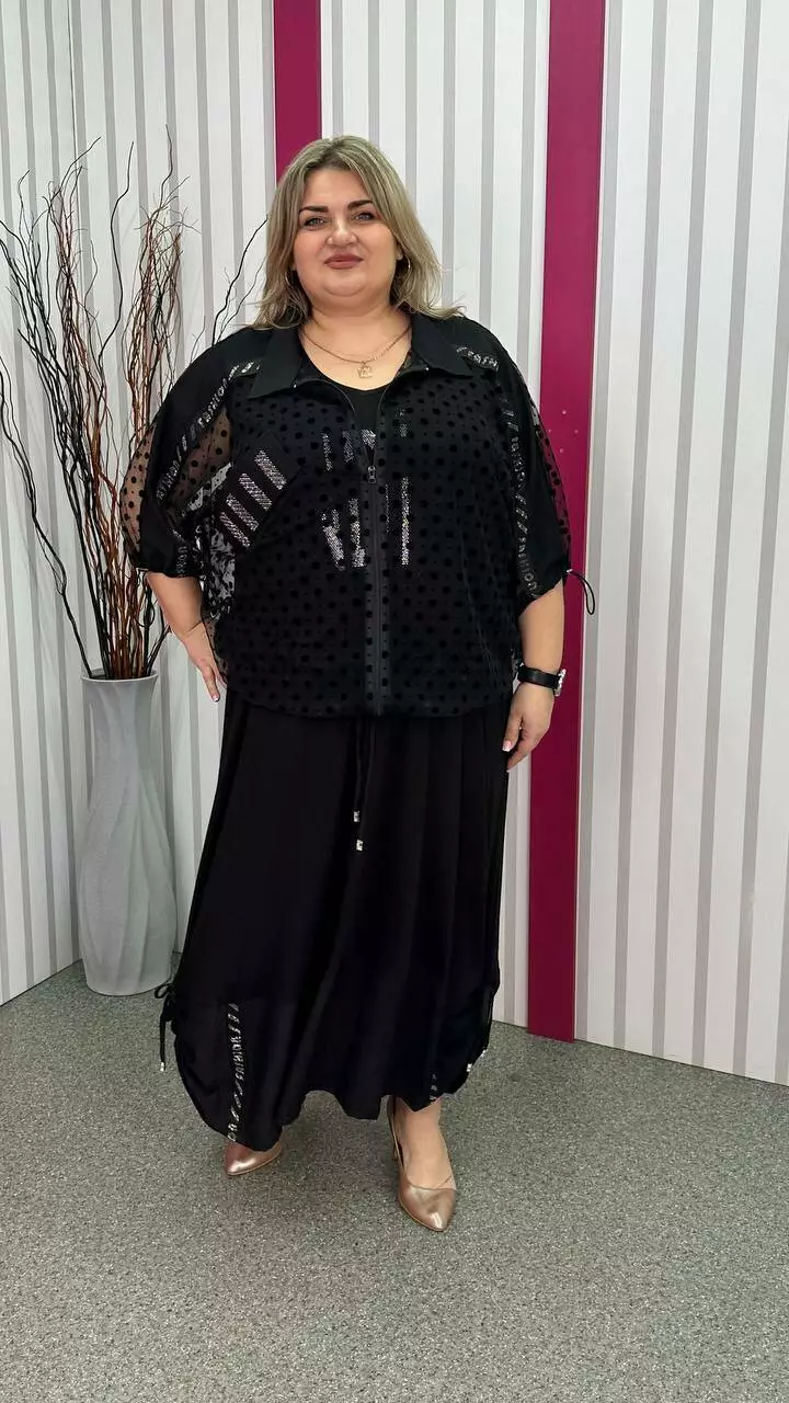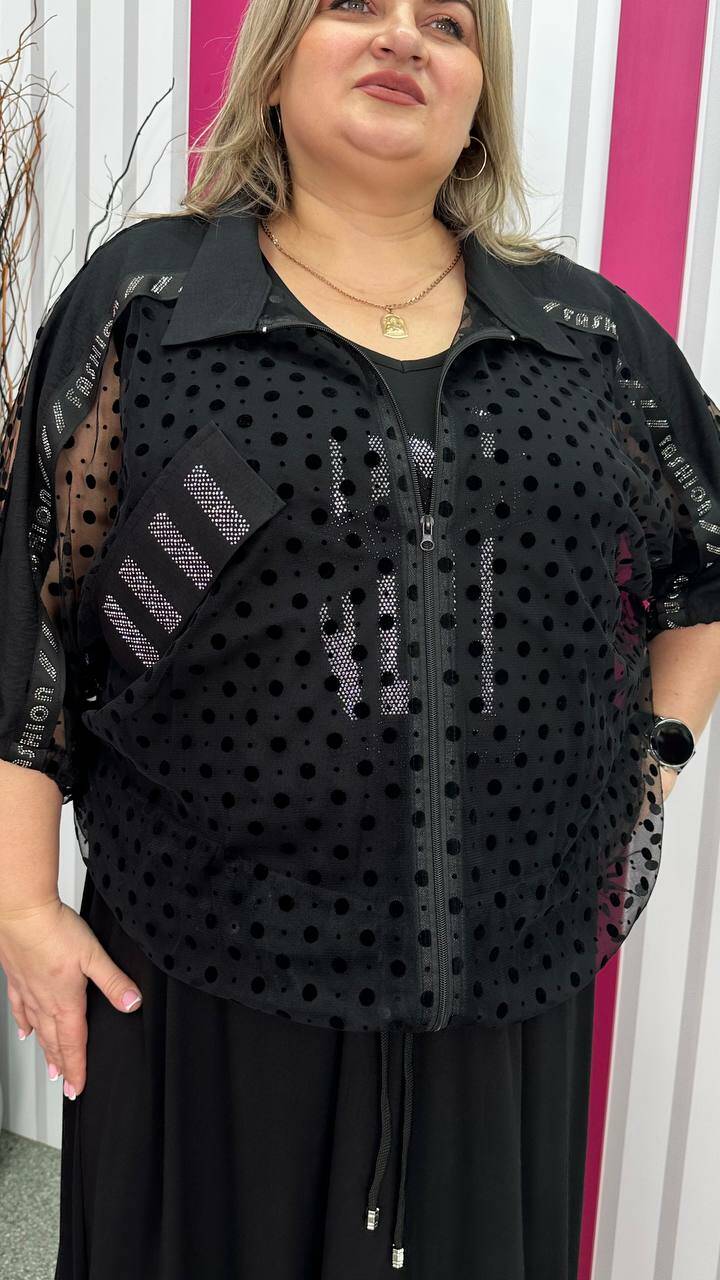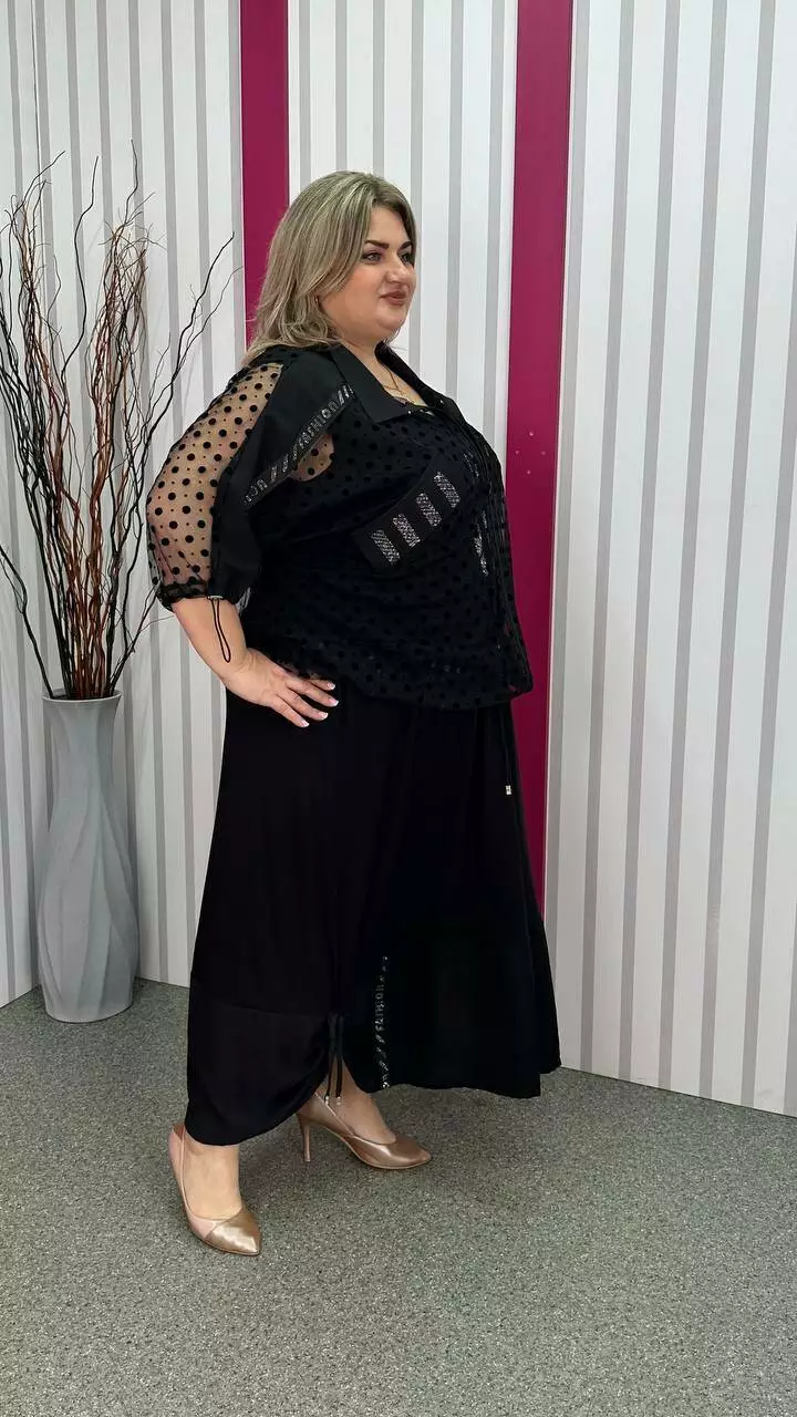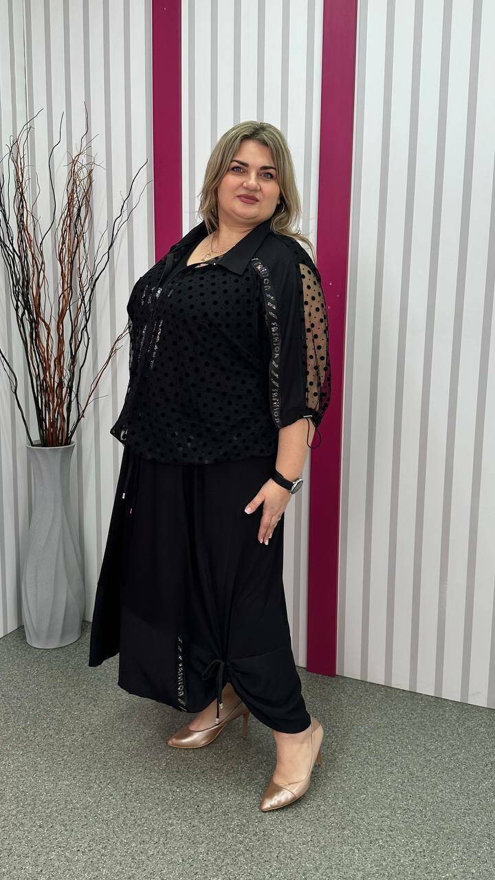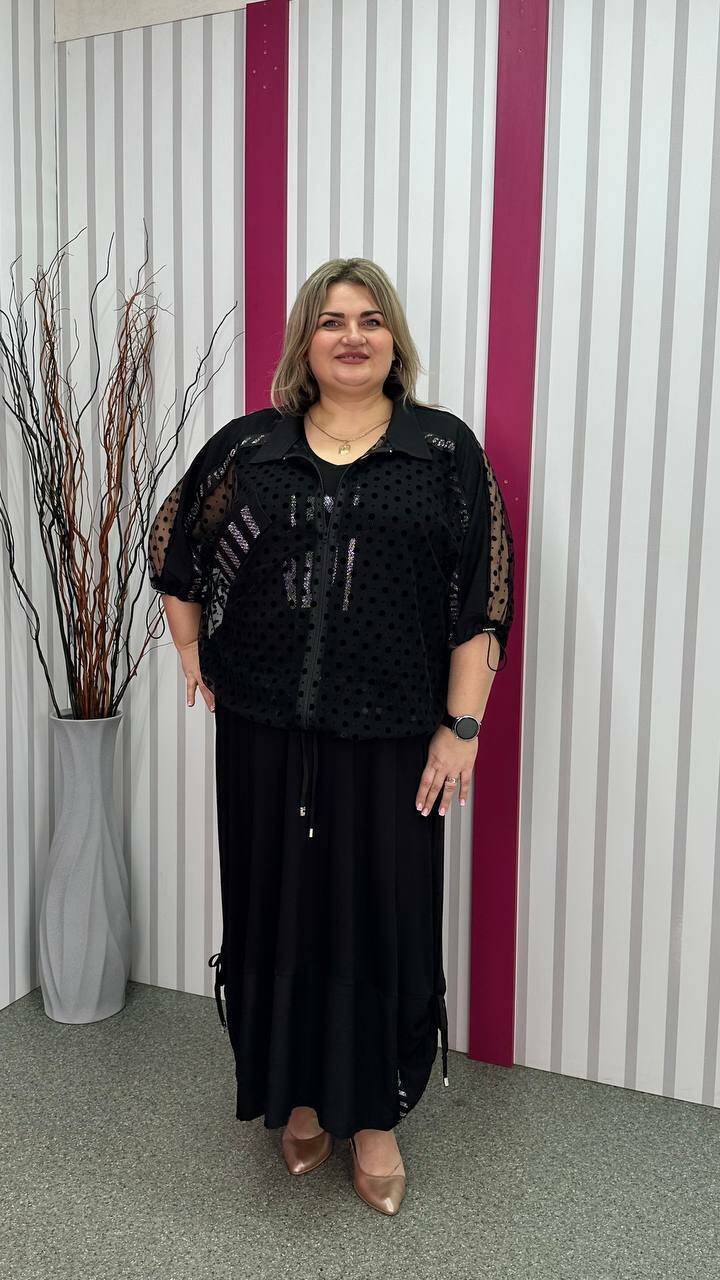 Ошатний костюм двійка (сарафан+блузон) чорний великого розміру 62-64 66-68 70-72 74-76