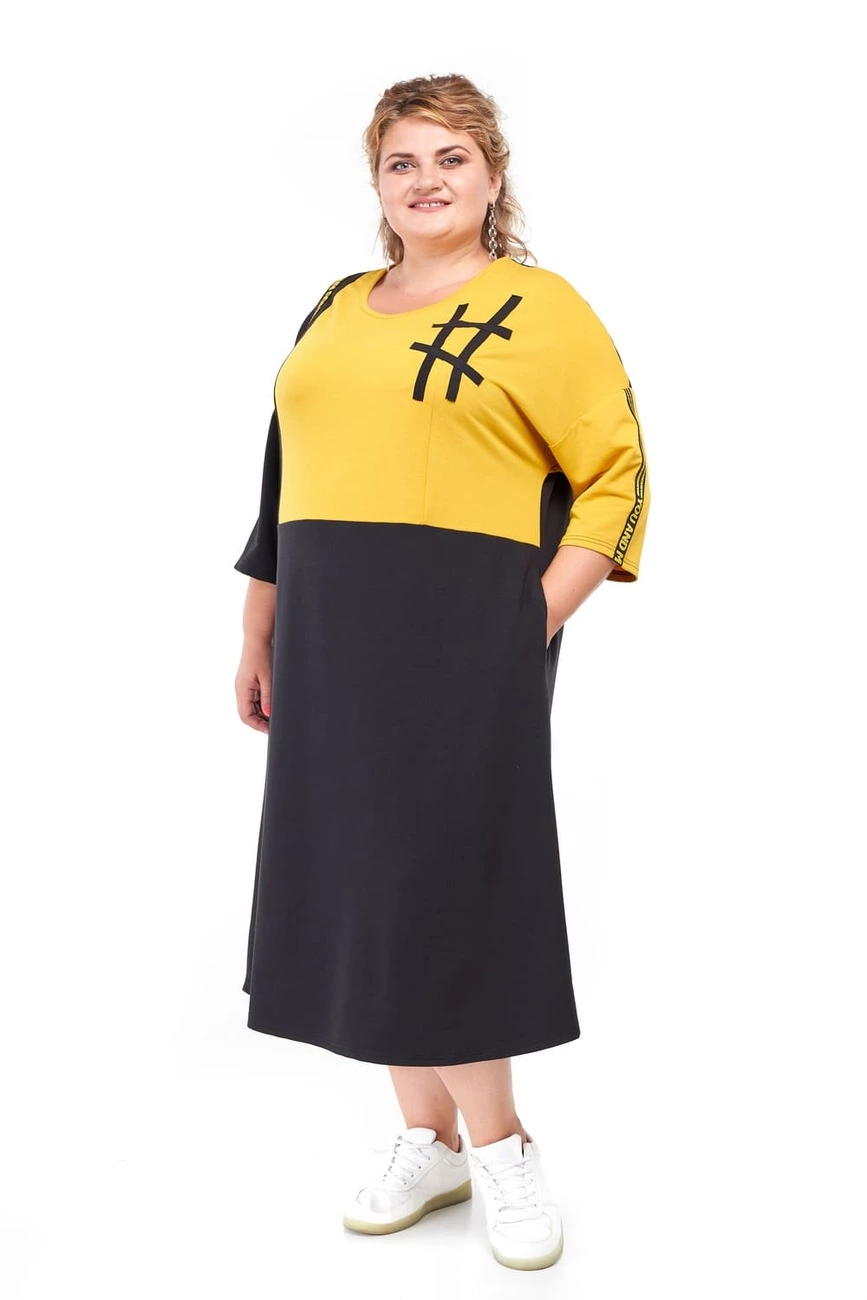 платье свободного силуэта; рукав спушенный , 3/4; горловина