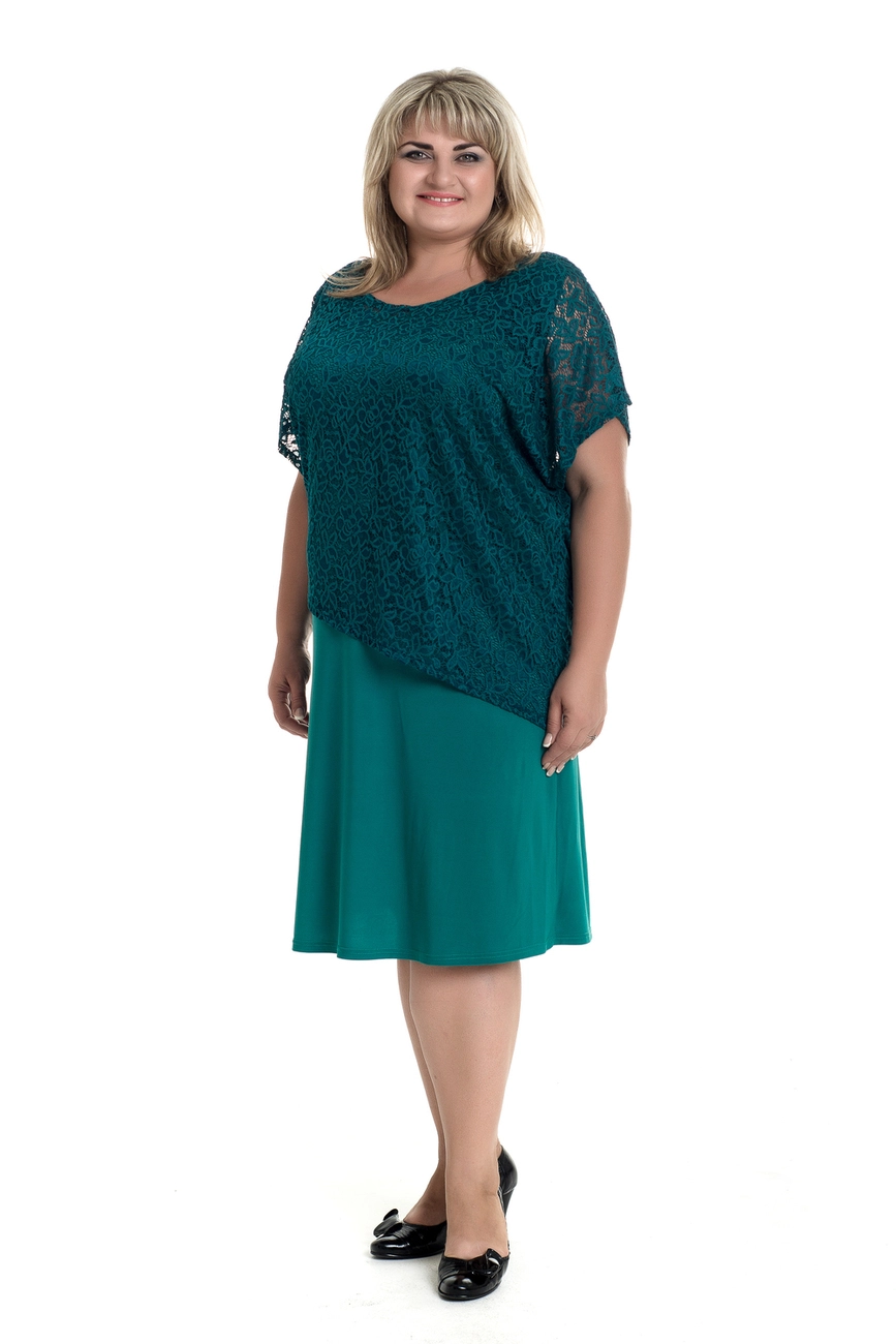 Тканина: олія -70% поліестер, 20% віскоза, 10% еластан; гіпюр-57% поліестер, 40% нейлон, 3% еластан. Модна сукня у діловому стилі напівприлеглого силуету з гіпюровою накидкою. Сукня у вигляді сарафану, накидка з коротким спущеним рукавом. Горловина кругла.