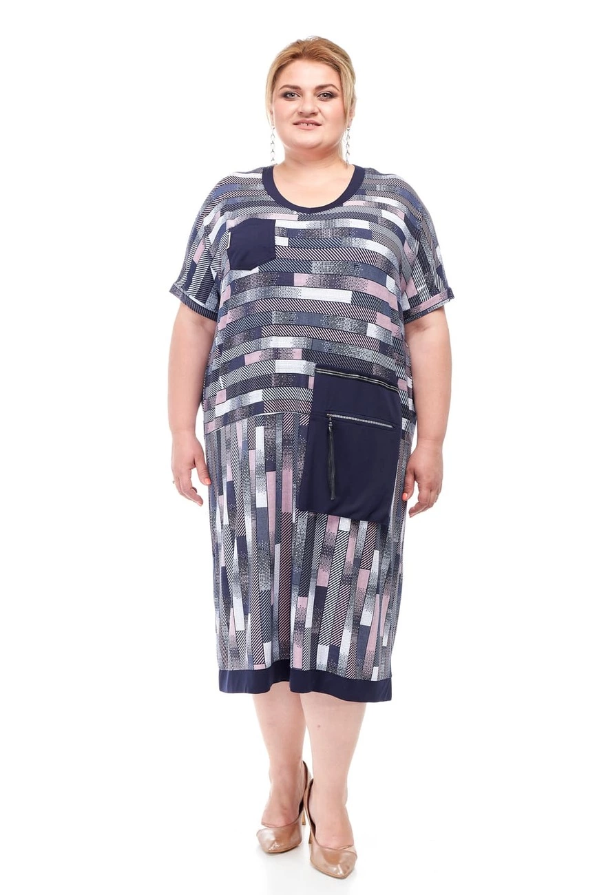 Тканина: олія -70% віскоза; 30% поліестер. Модне, гарне плаття вільного силуету, рукав-короткий, спущений; горловина-кругла. Виріб має дві накладні декоративні кишені і одну велику пришивну, функціональну кишеню на змійці. Тканина олія - хорошої якості, не вимагає особливого догляду.