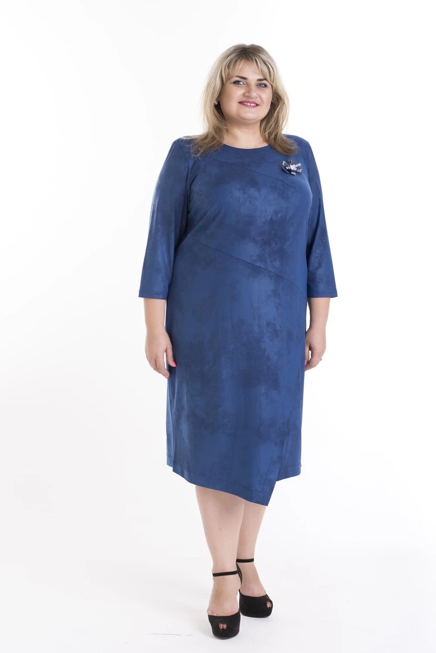 Тканина: неопрен замш - 90% поліестер, 10% еластан. Стильна, легка сукня напівприлеглого силуету. Рукав 3/4, горловина кругла. Низ виробу виконаний запахом. У комплекті тканинна брошка. Легкий, щільний матеріал. Добре тримає форму. Відмінно зберігає свої якості.