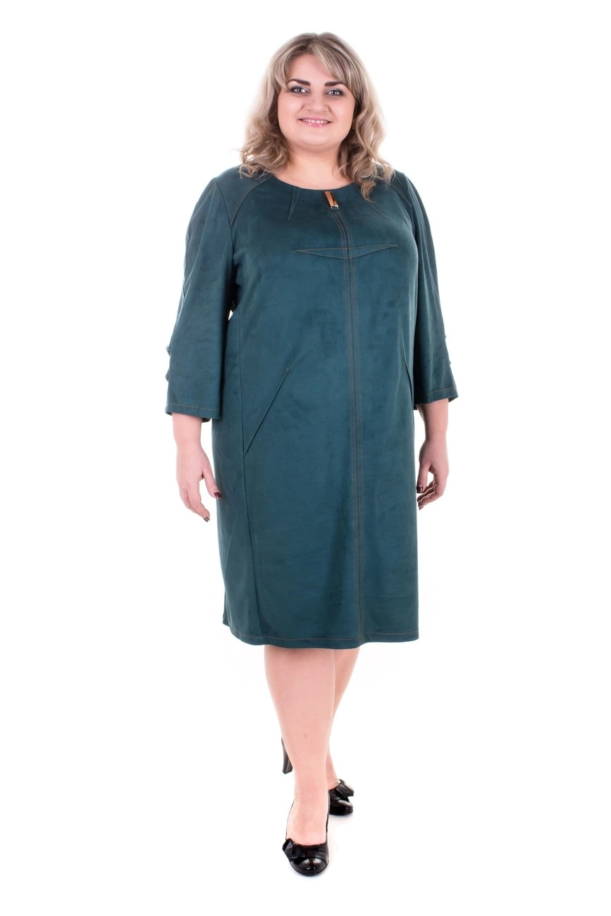 Тканина: замш-90% поліестер; 10% еластан. Класична, коктейльна сукня з тканини замш. Рукав 3/4, горловина кругла з присобраністю, з боків та на грудях виточки, які візуально стрункуть силует. Тканина приємна на дотик, не вимагає особливого догляду.