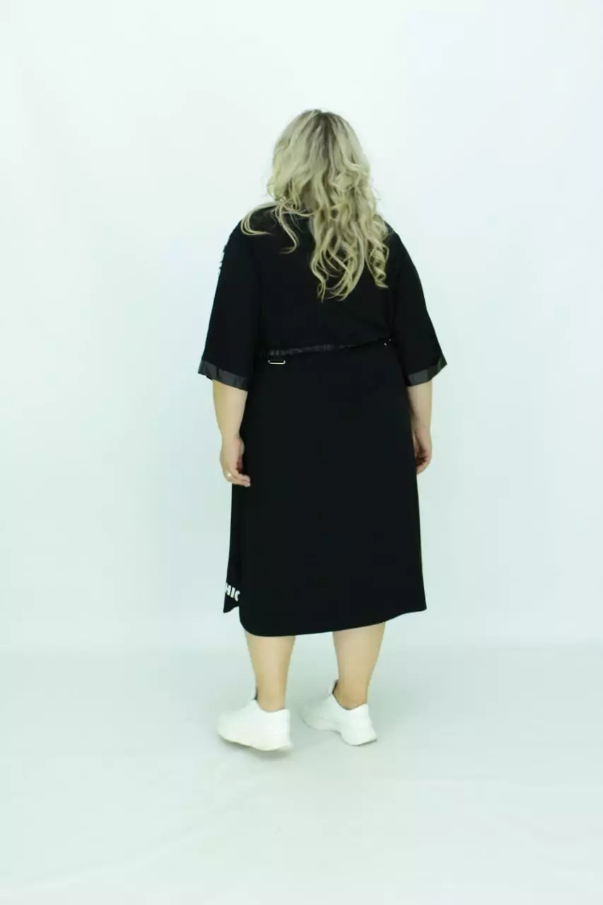 Тканина: стрейч кулір-98% бавовна, 2% еластан. Модна сукня напівприлеглого силуету. Рукав короткий, горловина кругла. Виріб прикрашений еко шкірою та шлейками (підтяжками). Тканина гарної якості, не вимагає особливого догляду.
