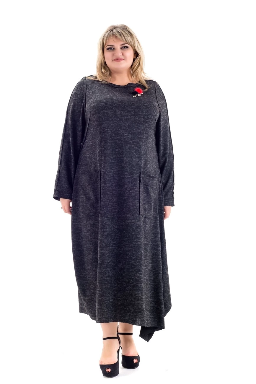 Тканина: ангора софт-80% поліестер; 15% віскоза; 5% еластан. Стильна, модна сукня асиметричного крою з тканини ангора софт. Сукня без застібки, особливість – шви на обличчя. Горловина кругла, дві накладні кишені, рукав довгий. Тканина тепла не потребує особливого догляду.