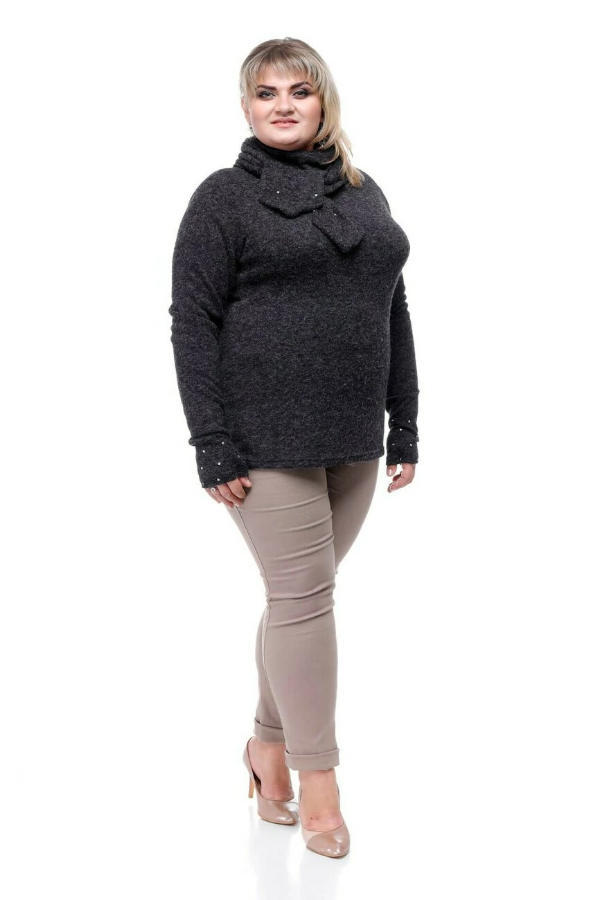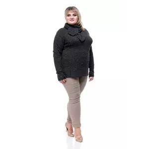 Тканина: в'язка-70% акрил; 15 нейлон; 15% поліестер. Теплий светр з довгим рукавом. Тканина: в'язка (Корея). Основний колір сірий. Комірник цільнокроєний. Светр пошитий із теплого, м'яко трикотажу. Горловина виконана широким хомутом. Розміри :