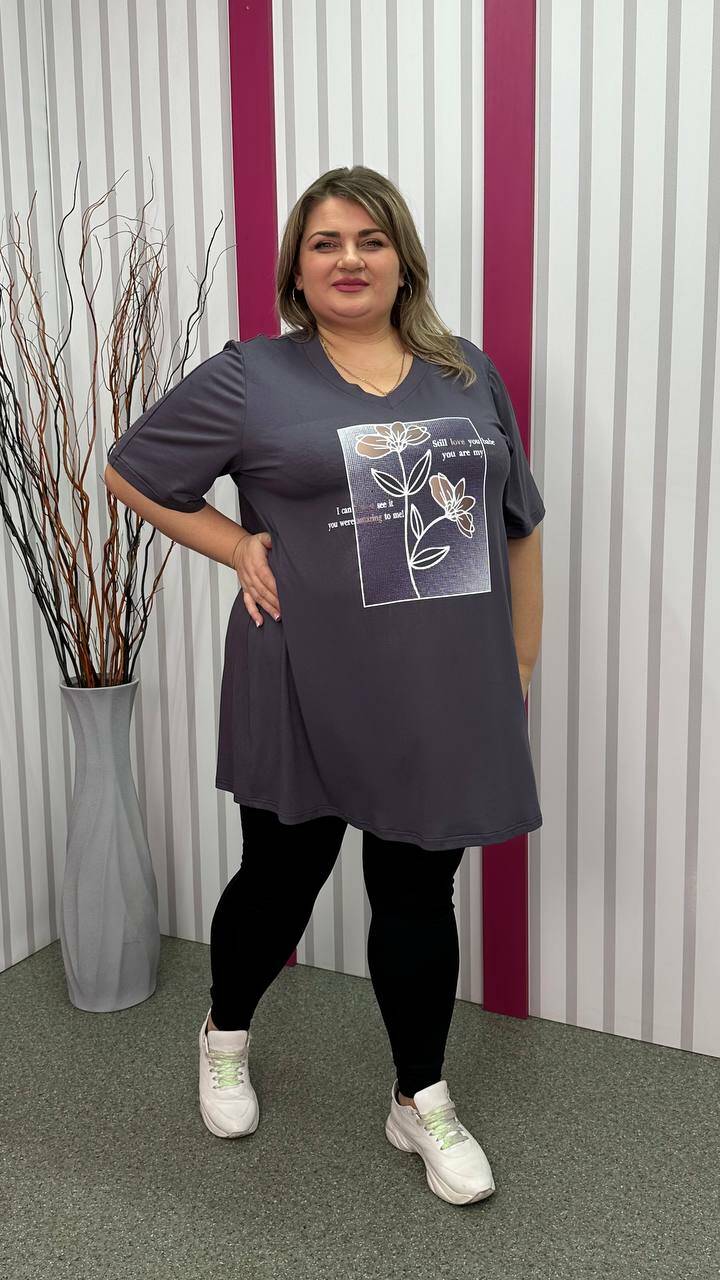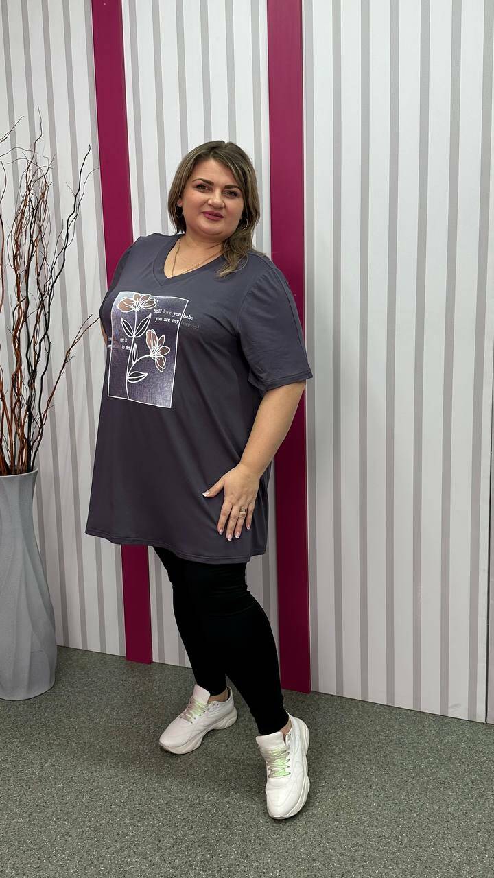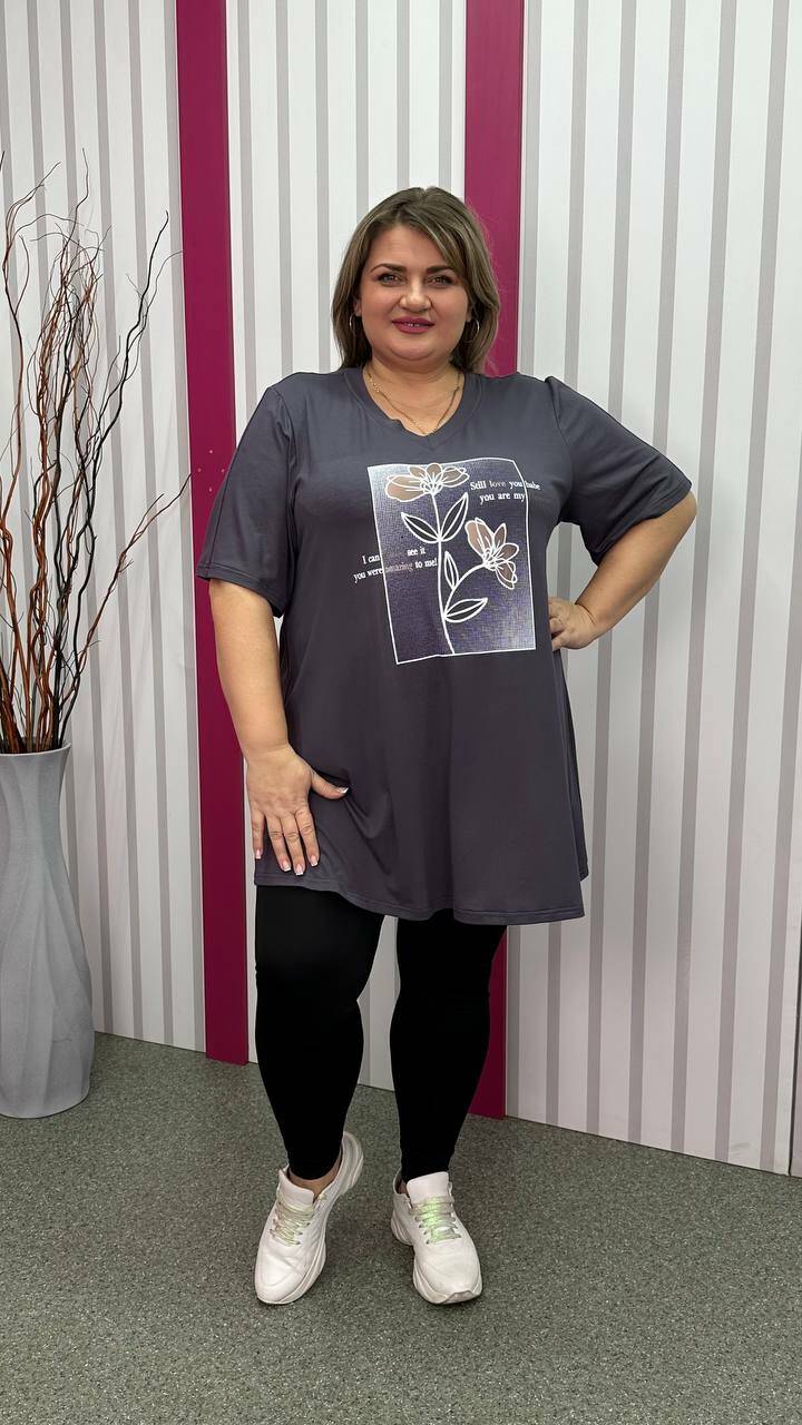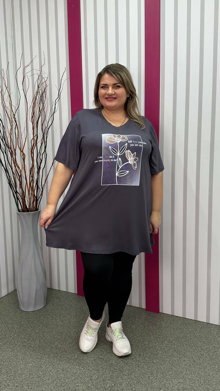 Подовжена Футболка силует трапеція "Мисік" сіра великого розміру 58-60 62-64 66-68 70-72 74-76