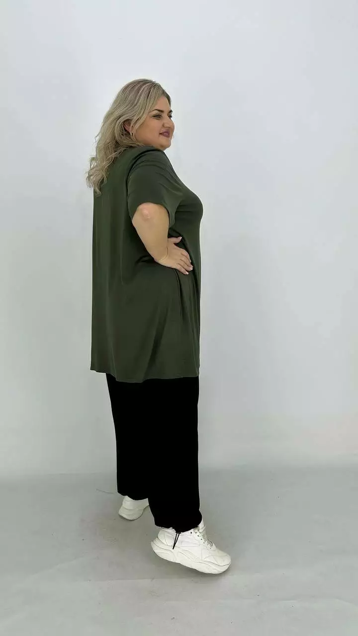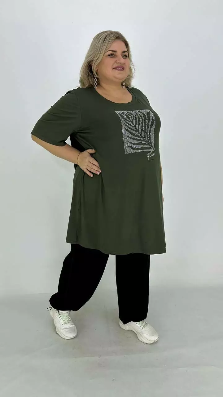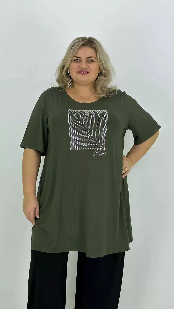 Подовжена, клешена футболка з трикотажу, віскоза п-ва Туреччини з дуже гарною розтяжністю, прикрашена якісним накатом.