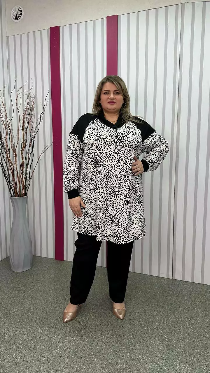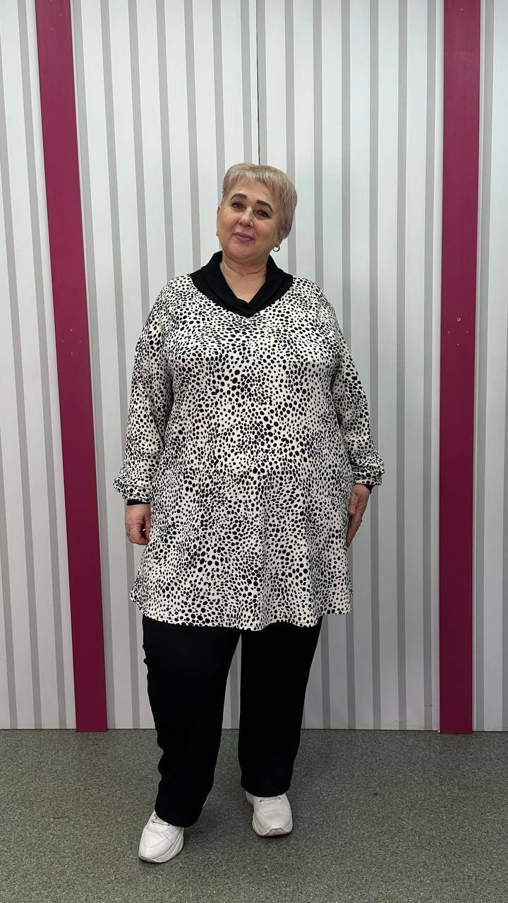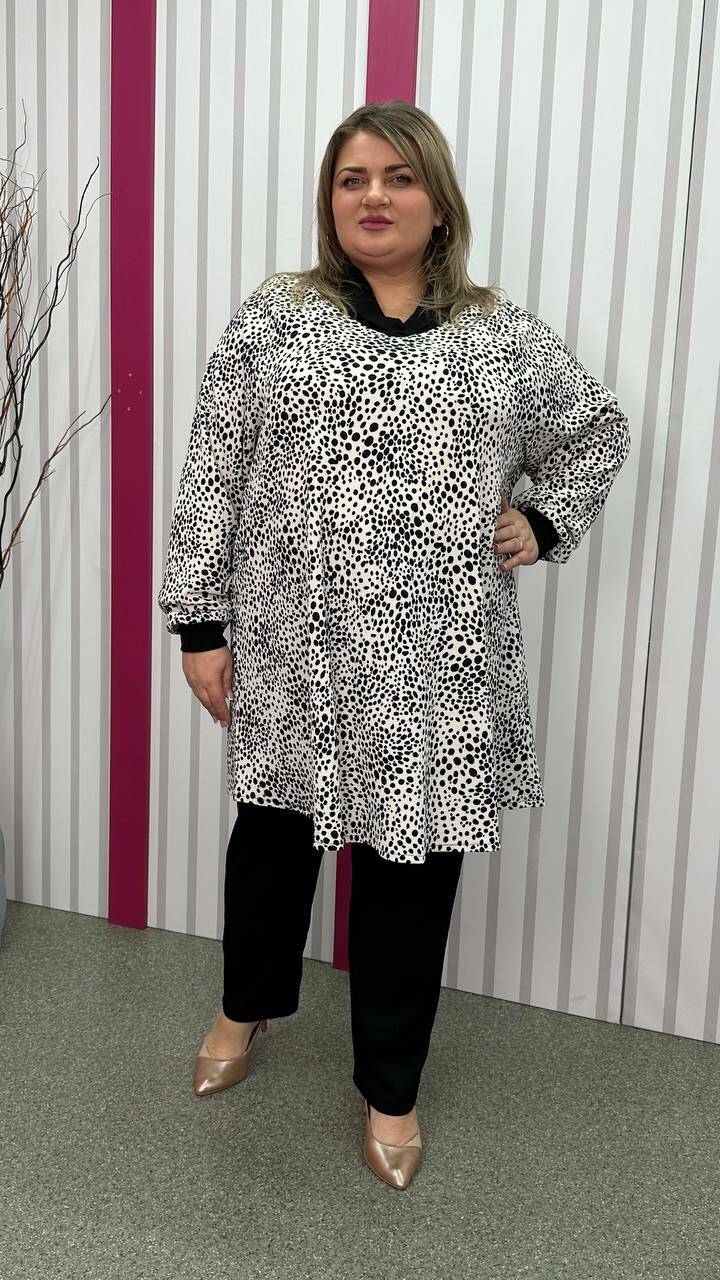 Подовжена трикотажна туніка "Фортуна" біла з чорним 58-60 62-64 66-68 70-72 74-76