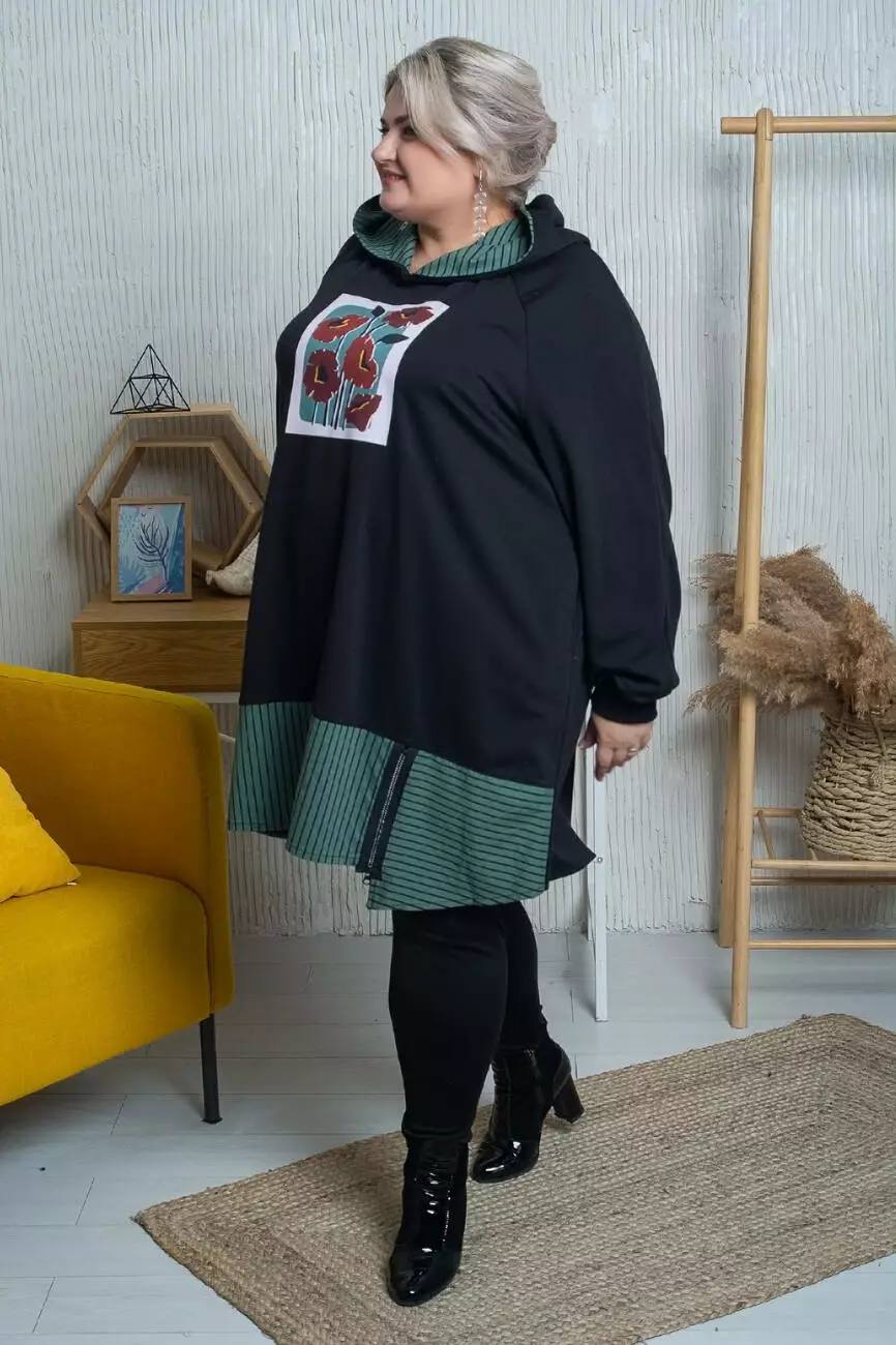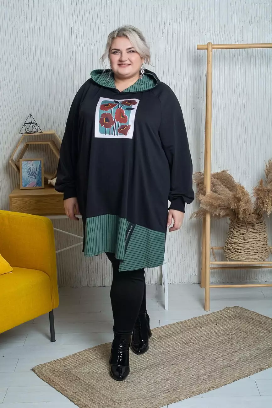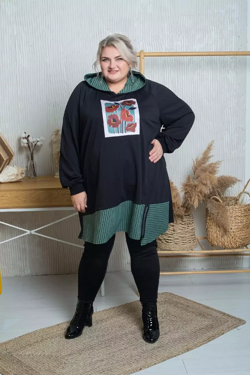 Подовжена трикотажна туніка-трапеція "Янгол" з капюшоном 66-68 70-72
