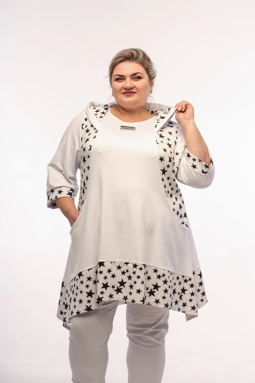 Подовжена туніка "Сузір'я" з асиметричним низом клешена 62-64 66-68 70-72 74-76
