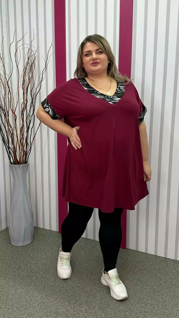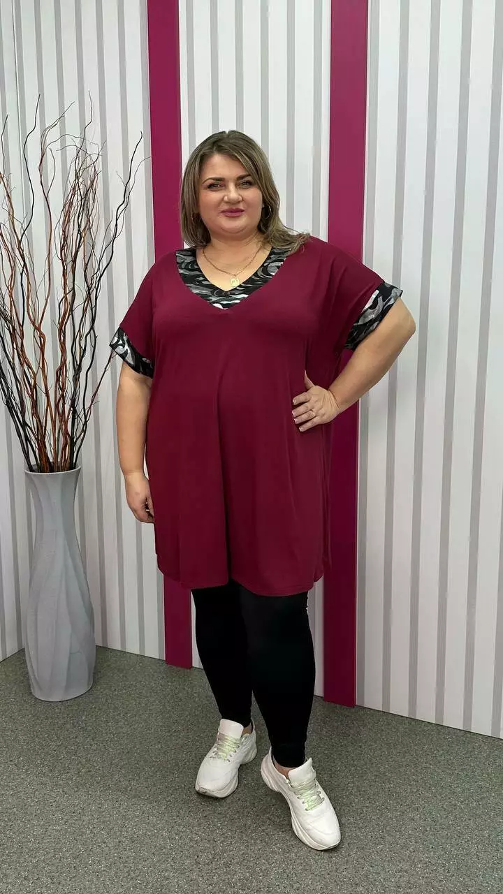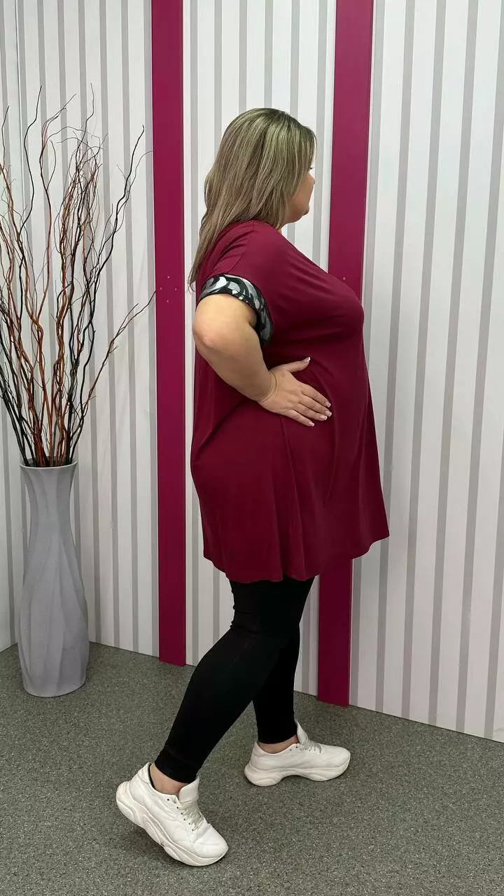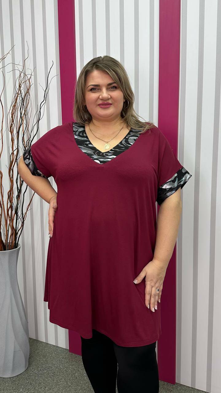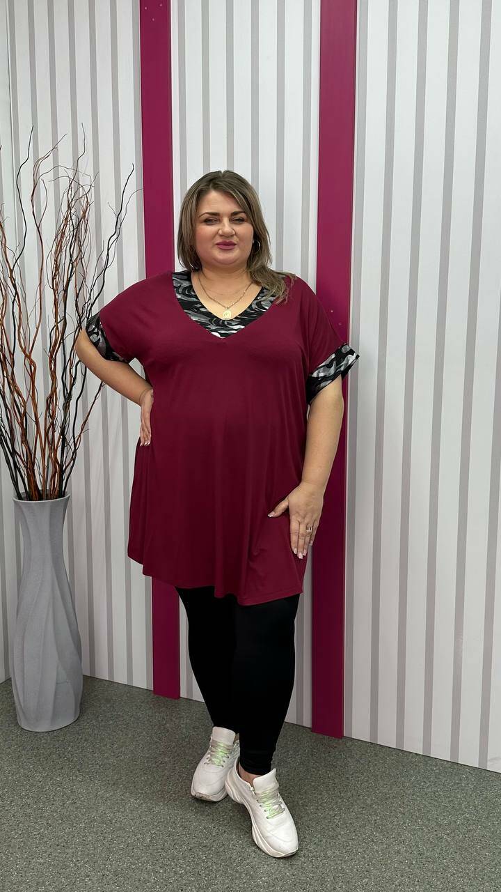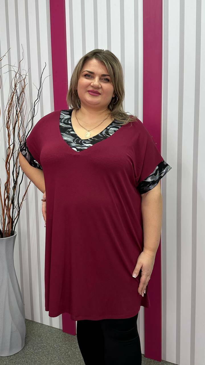 Подовжена вільна футболка "Фенікс" бордова великого розміру 58-60 62-64 66-68 70-72 74-76
