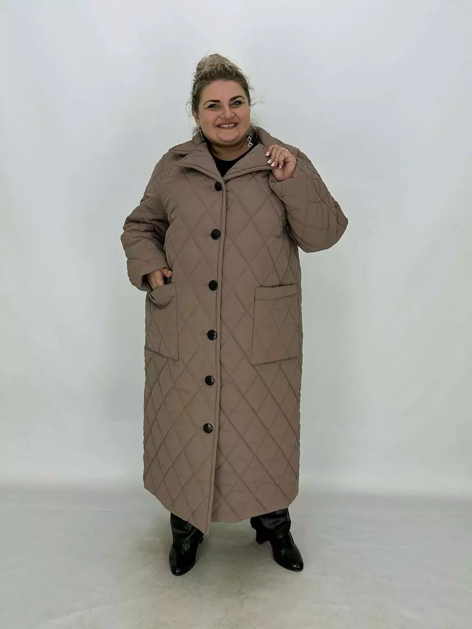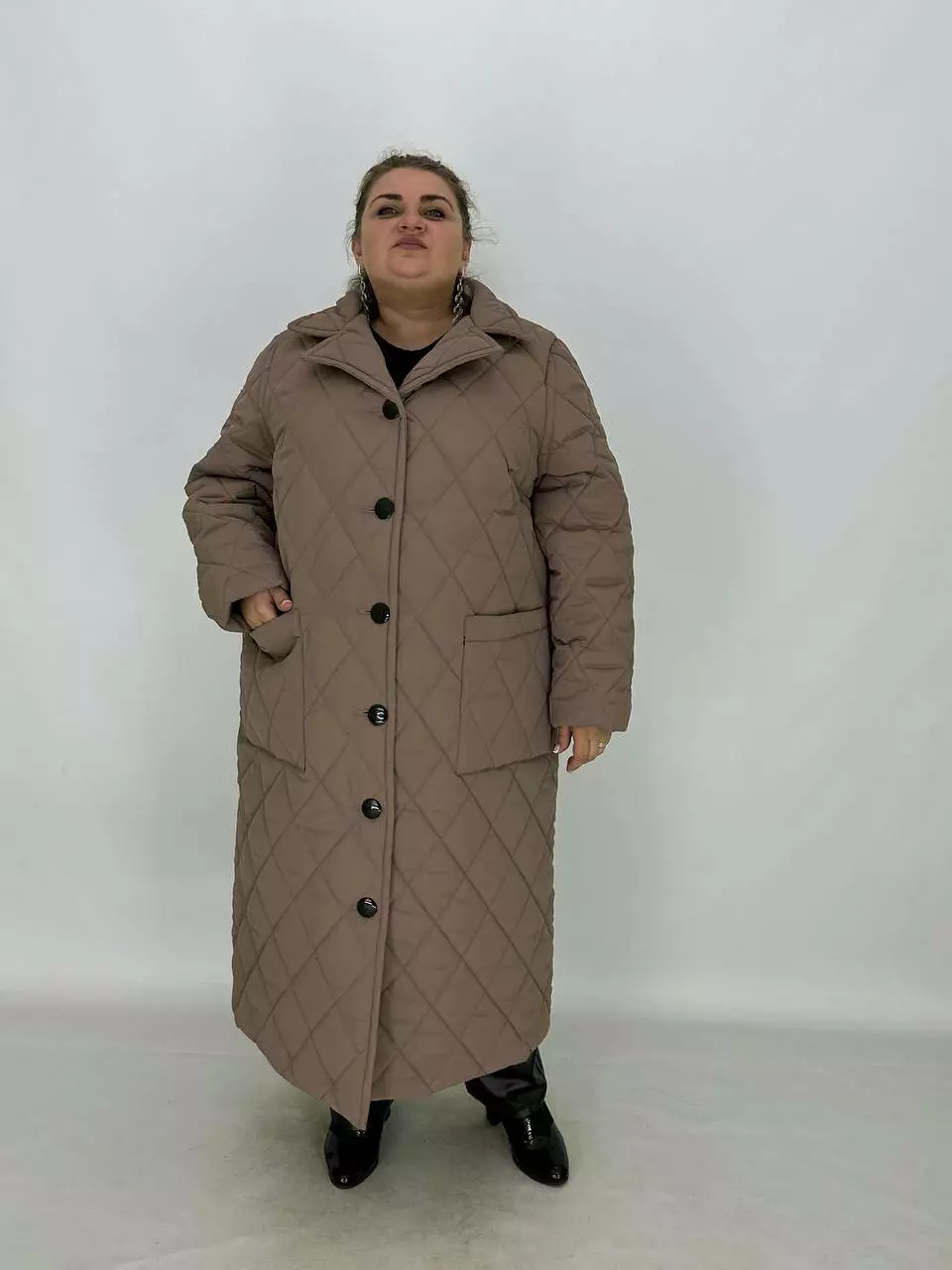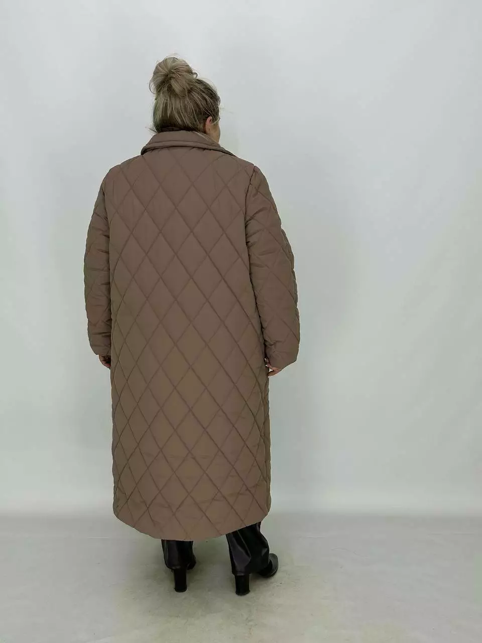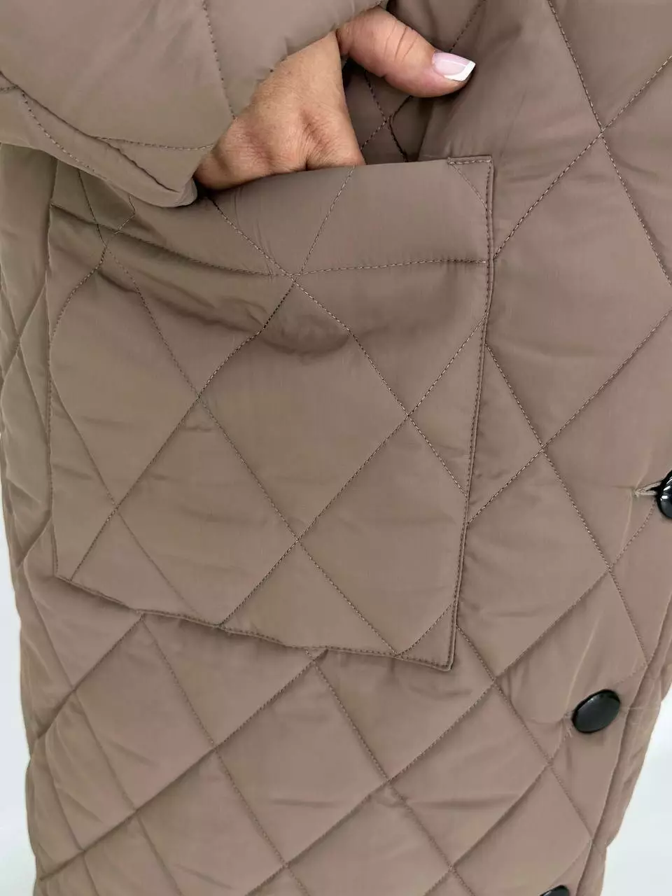 Подовжене стьобане пальто на гудзиках.