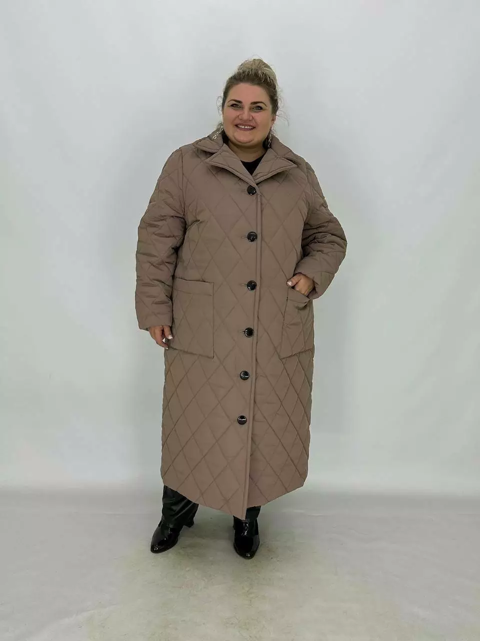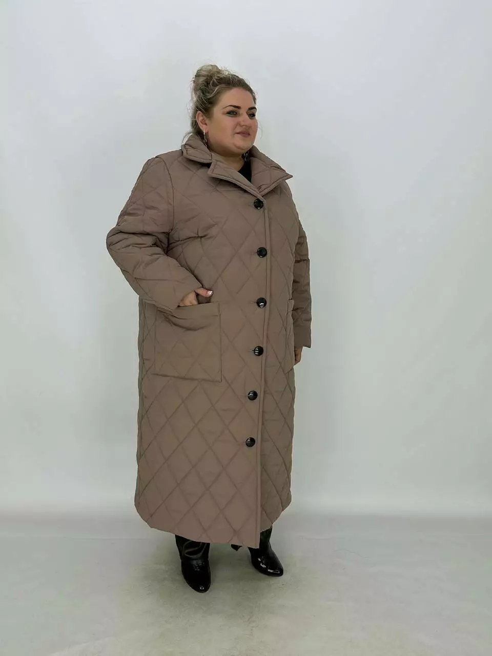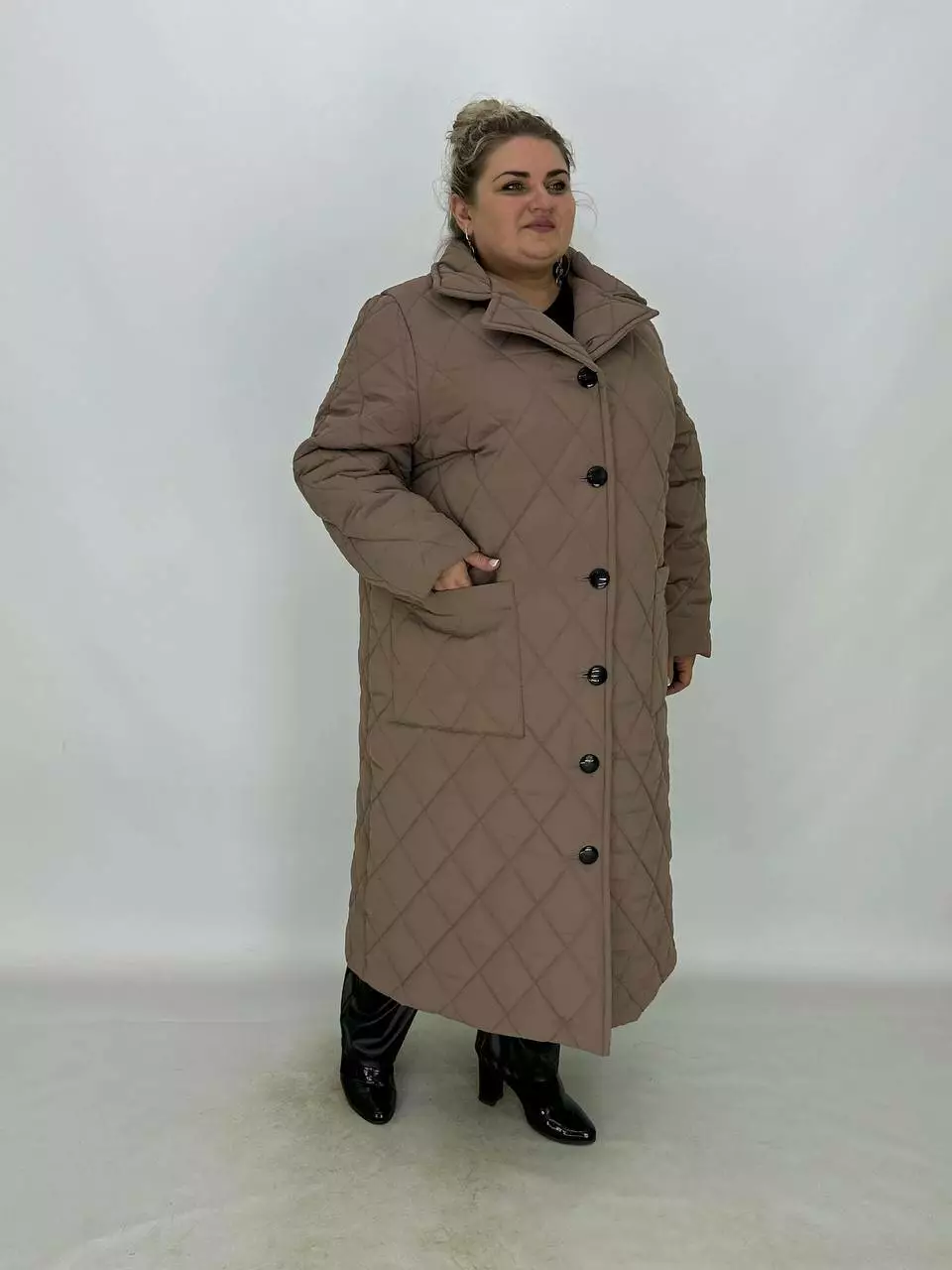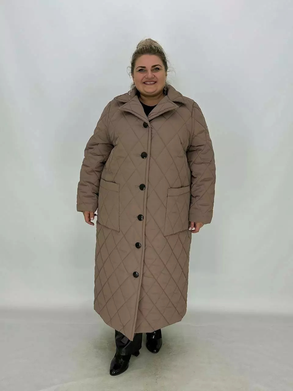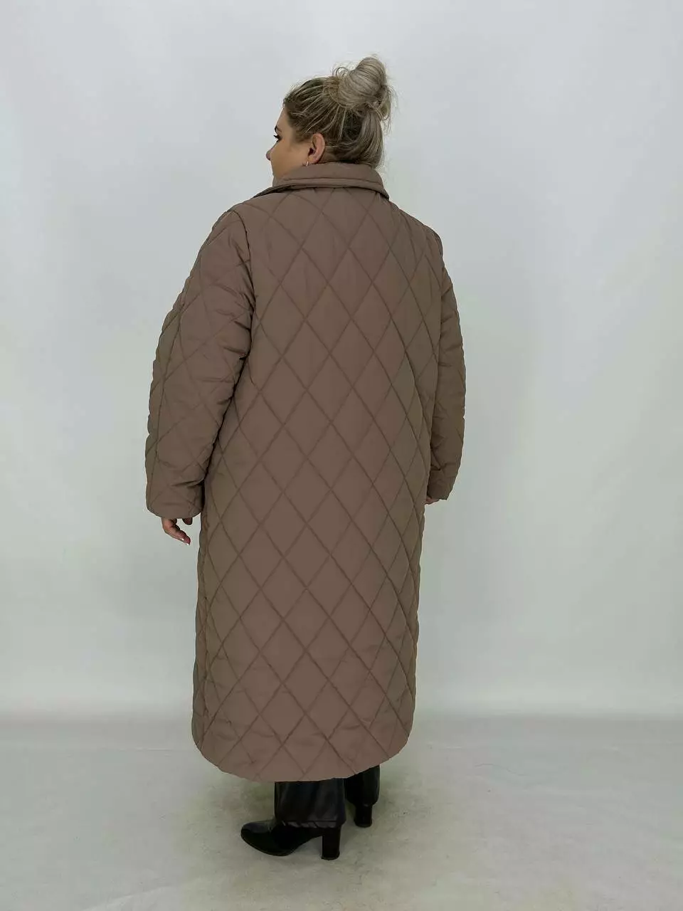 Подовжене стьобане пальто на гудзиках.