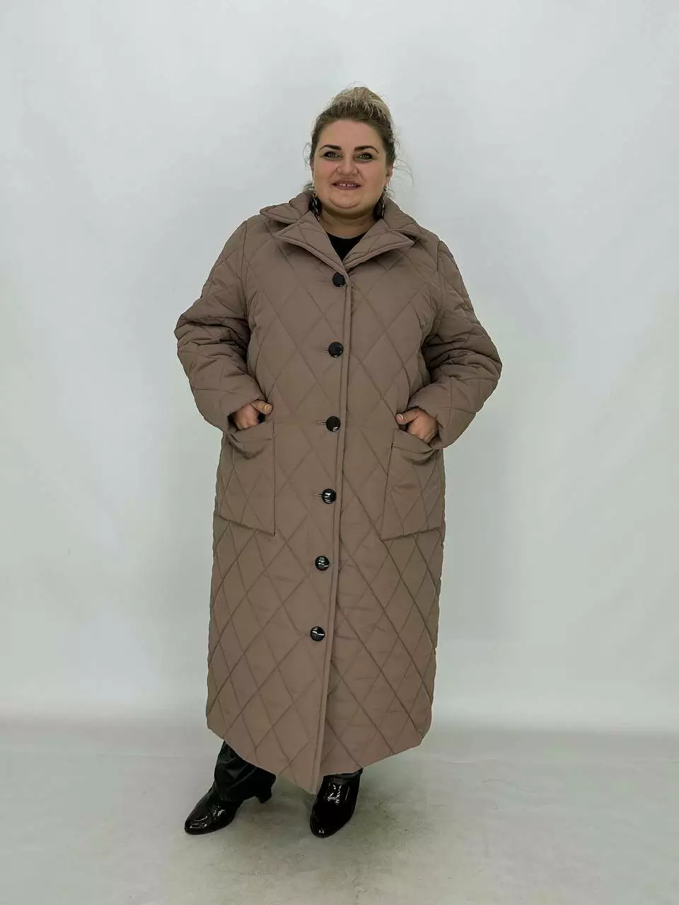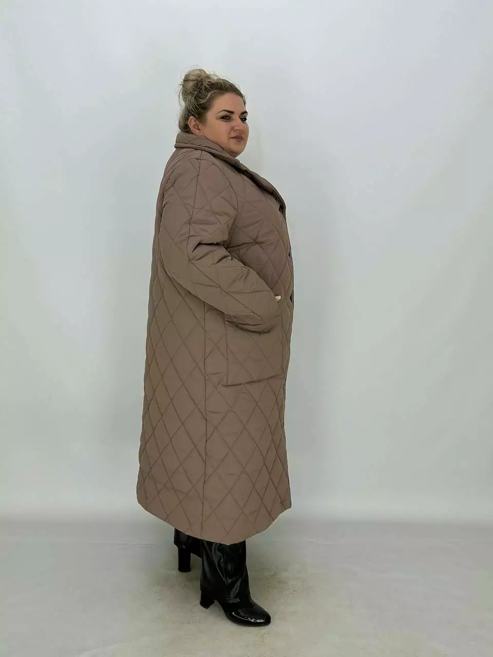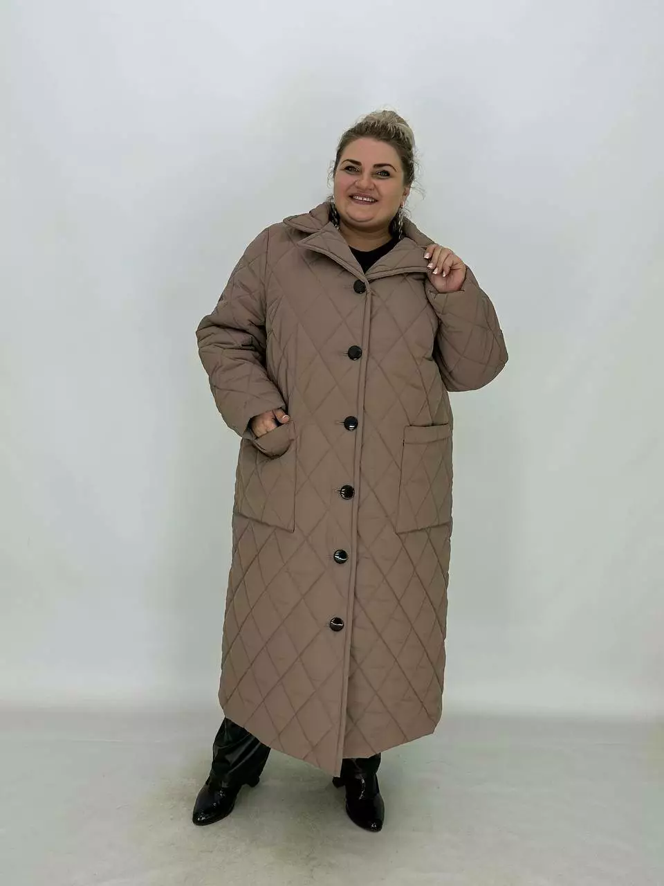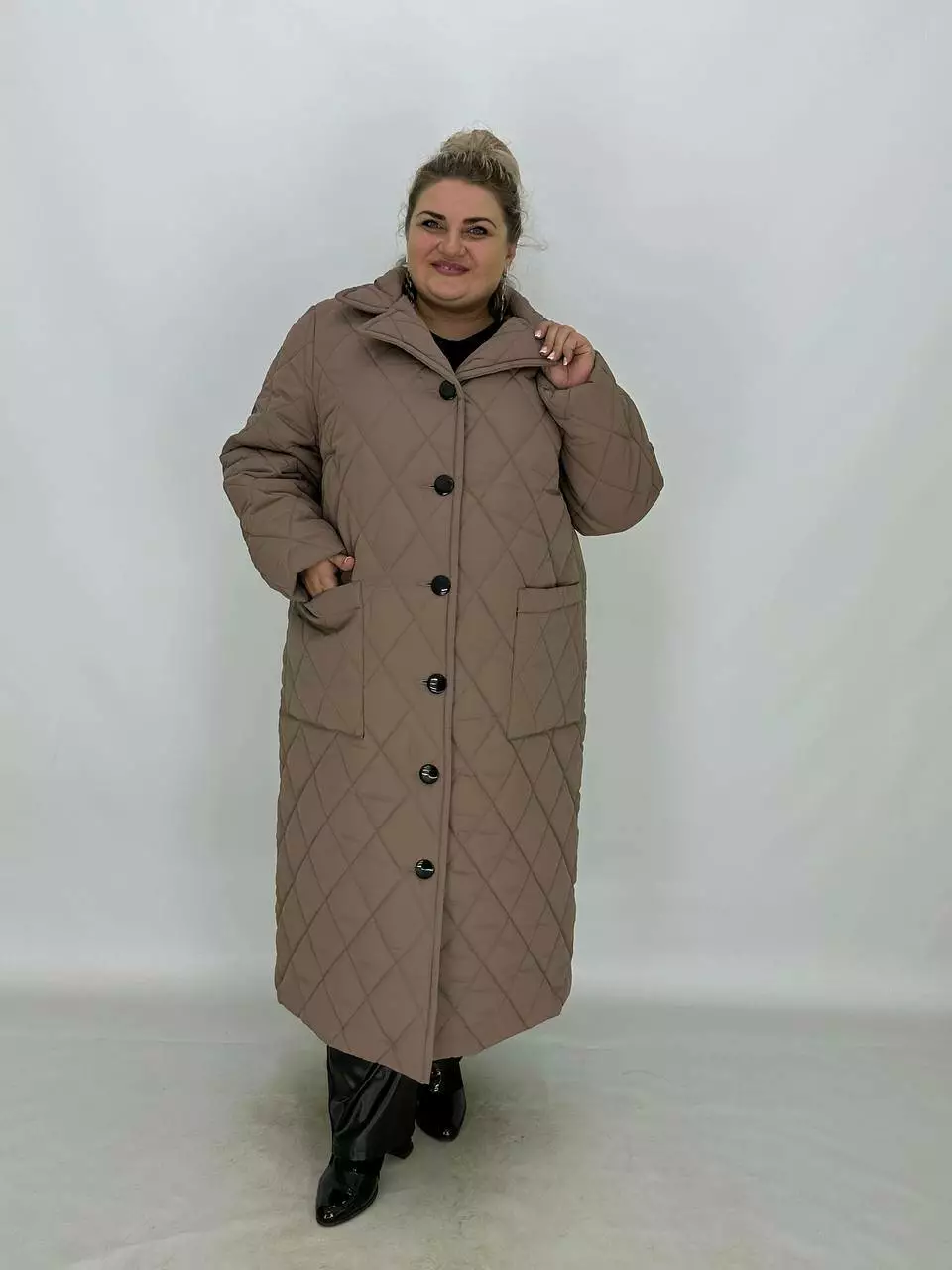 Подовжене стьобане пальто на гудзиках.